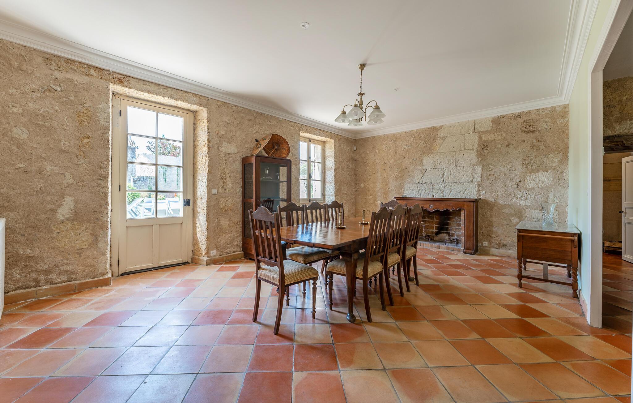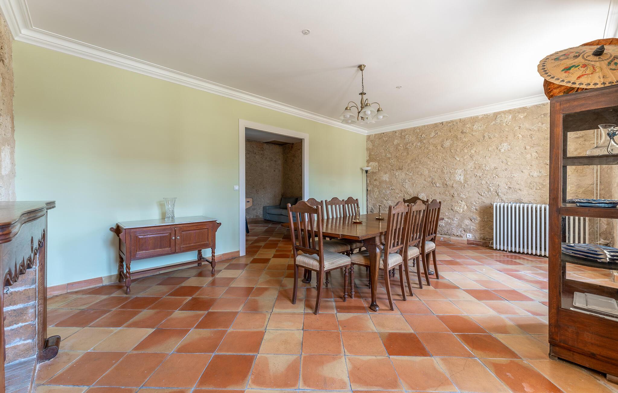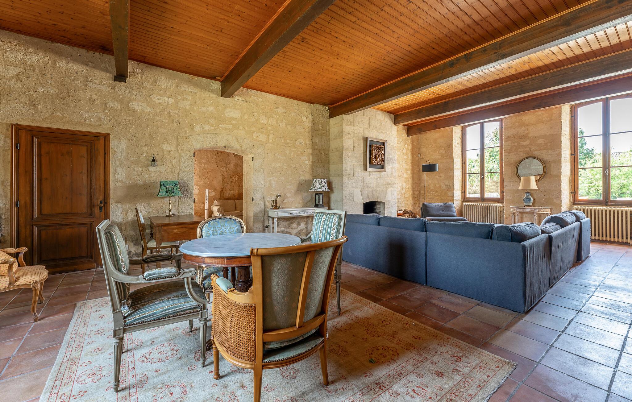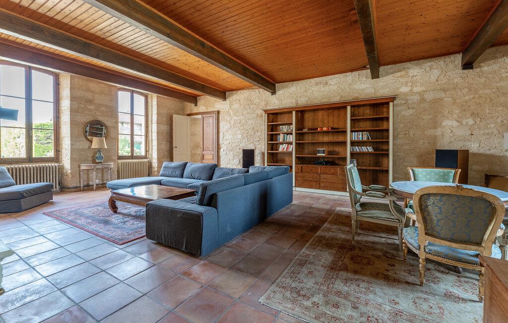 I denne imponerende herregården i stein nær Virsac kan du nyte en avslappende ferie i en sjarmerende og stilfull atmosfære. Det store huset er ideelt for storfamilien, som kan føle seg som hjemme i de smakfulle rommene med stor takhøyde, vakre farger og komfort. Enten dere lager mat sammen på spisekjøkkenet eller oppholder dere i et av fellesrommene, kan dere rett og slett føle dere som hjemme her.