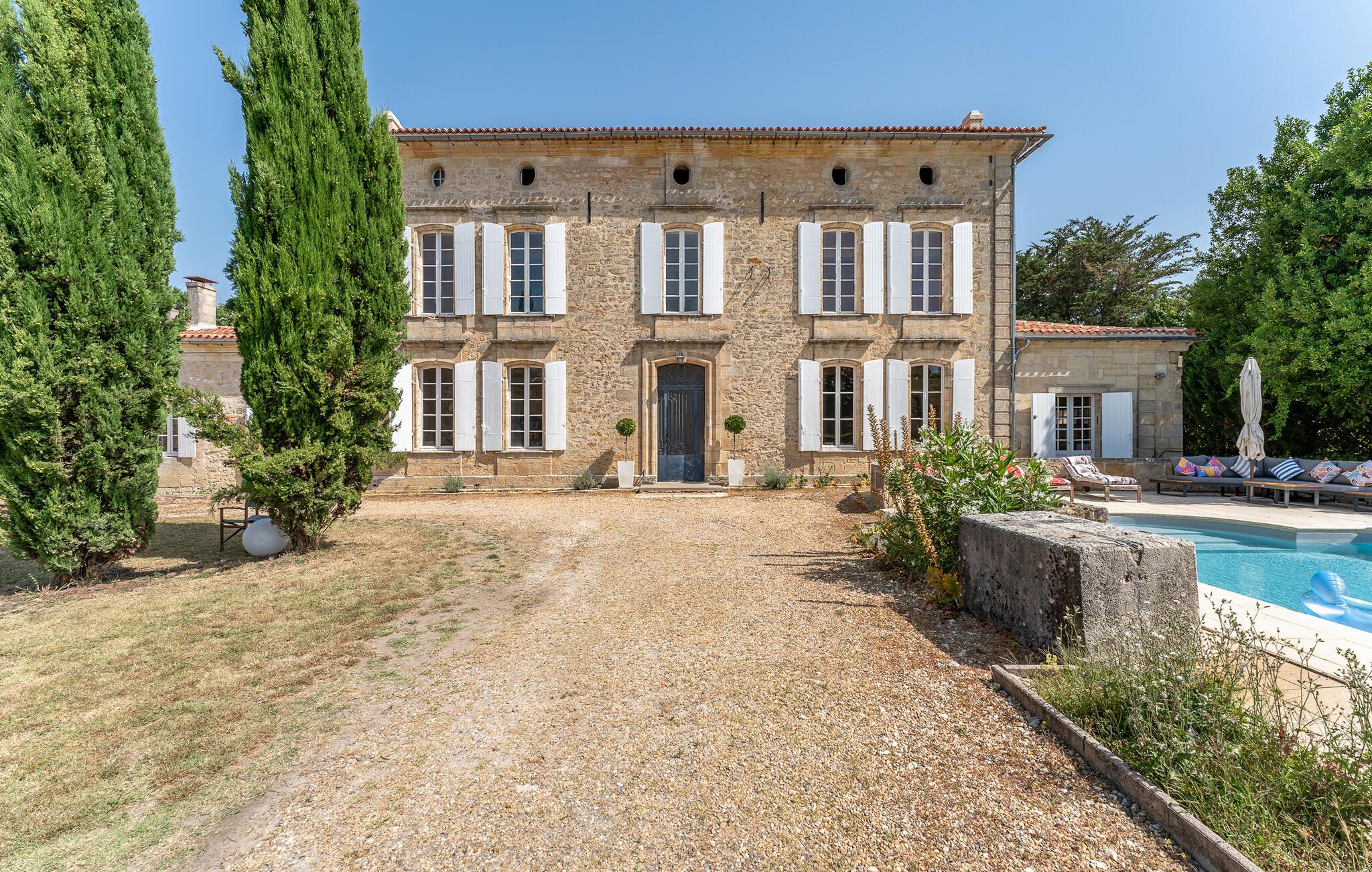 Nyt ferien i nærheten av Bordeaux i denne elegante herregården med basseng og stor park.