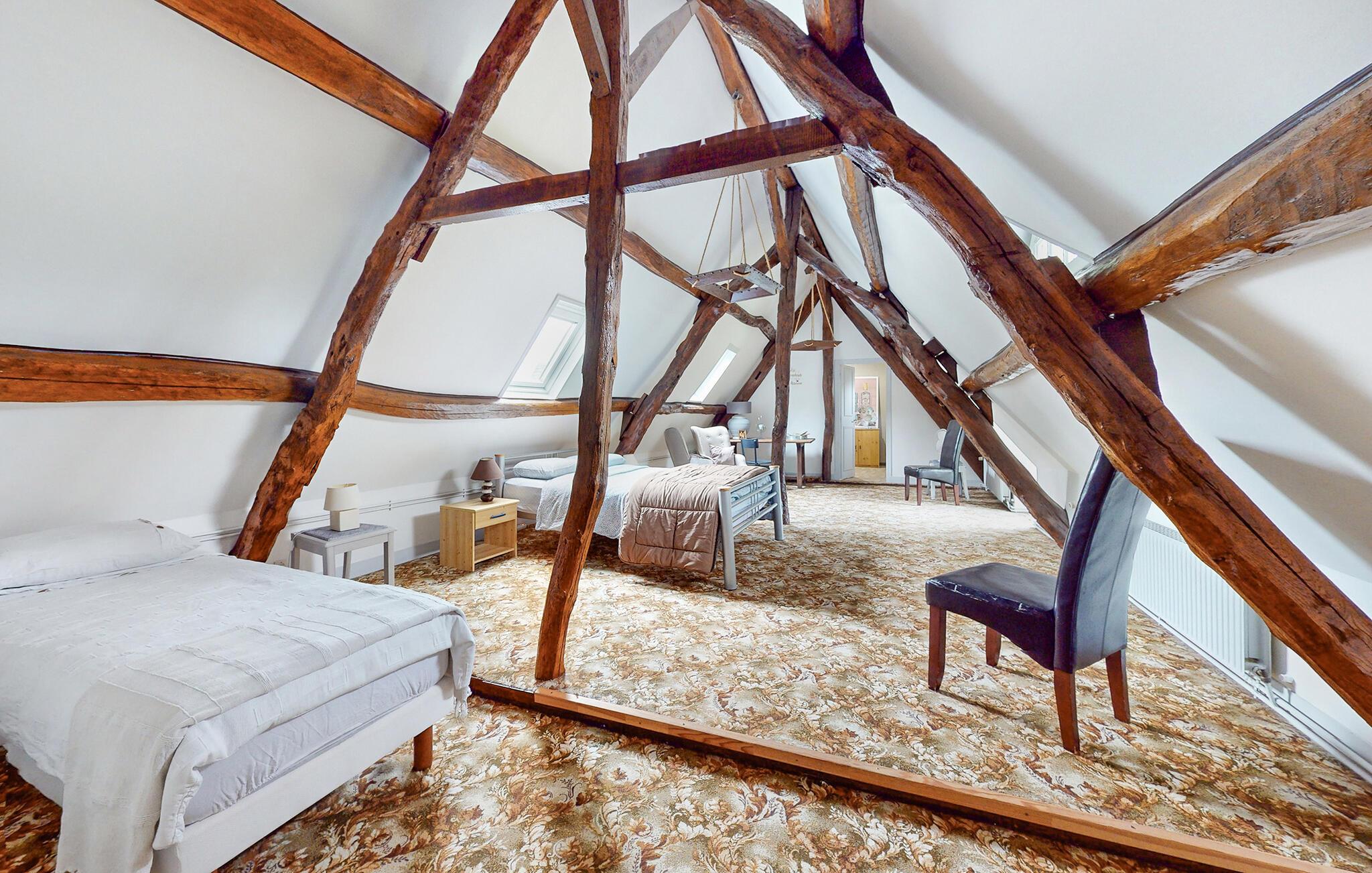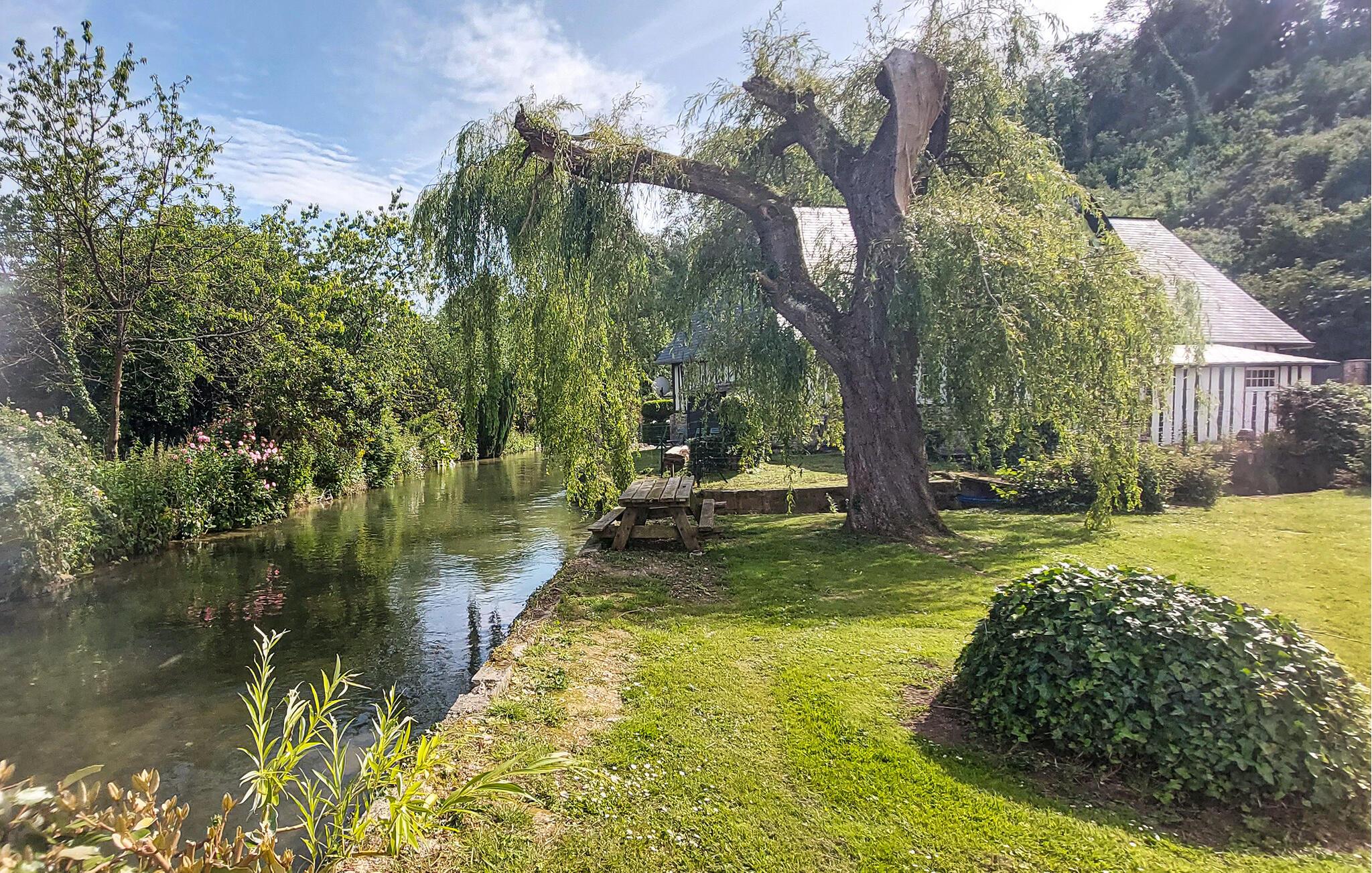 Oppdag sjarmen i Normandie i dette vakre bindingsverkshuset, en tidligere prestegård som ligger ved bredden av elven Durdent. Eneboligen imponerer med en koselig atmosfære og smakfullt innredet interiør som kombinerer historiske elementer og moderne komfort. Underhold deg ved biljardbordet eller nyt koselige kvelder foran peisen.