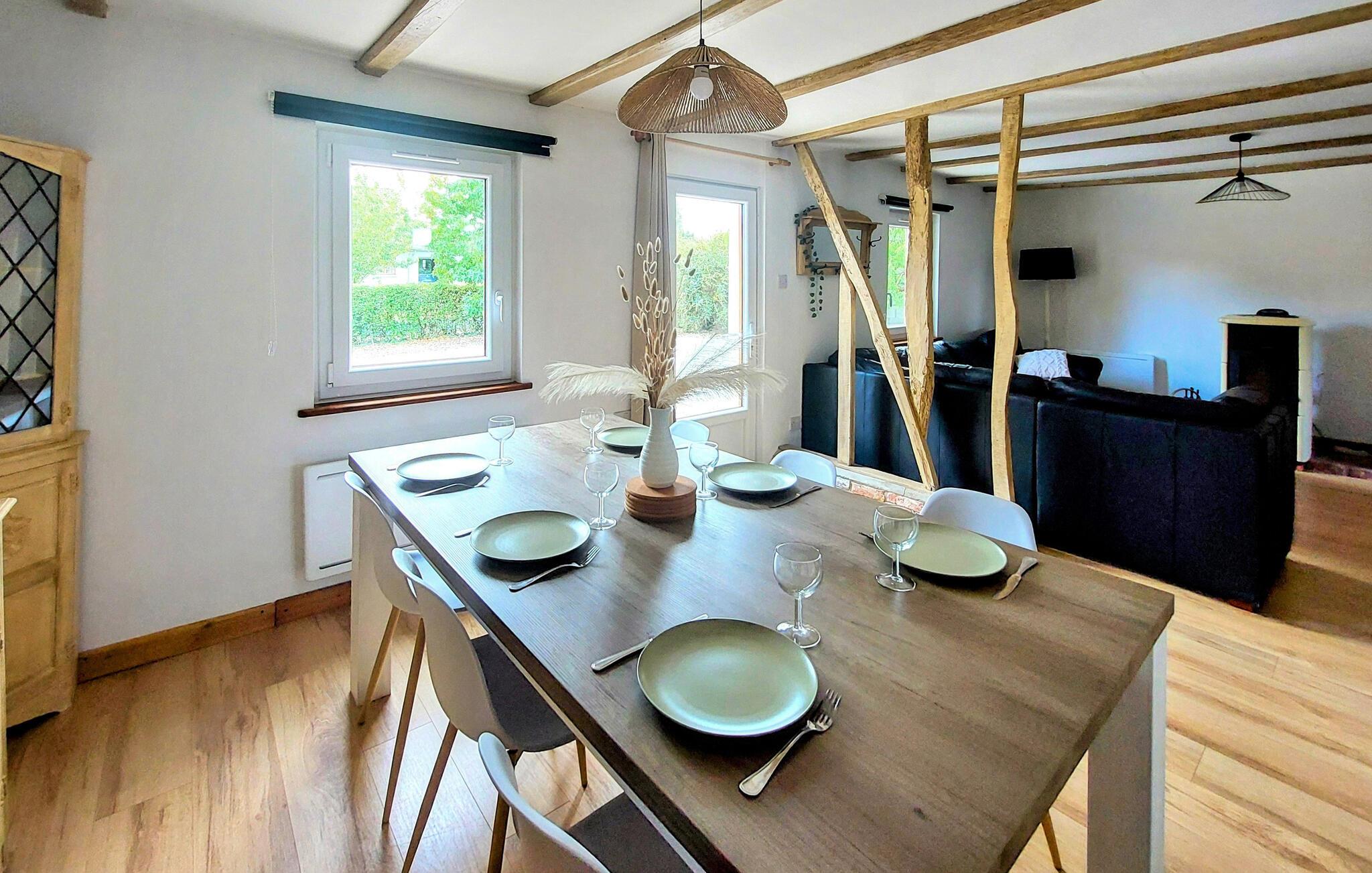 Dette nennsomt restaurerte landstedet fra 1700-tallet ønsker deg velkommen med et lyst og kjærlig innredet interiør, der en sjarmerende blanding av originale trebjelker, moderne møbler og rustikke detaljer skaper en vennlig og koselig atmosfære. Server deg deilige måltider ved det innbydende spisebordet, planlegg aktiviteter sammen og sett deg godt til rette med et brettspill etter en begivenhetsrik dag.