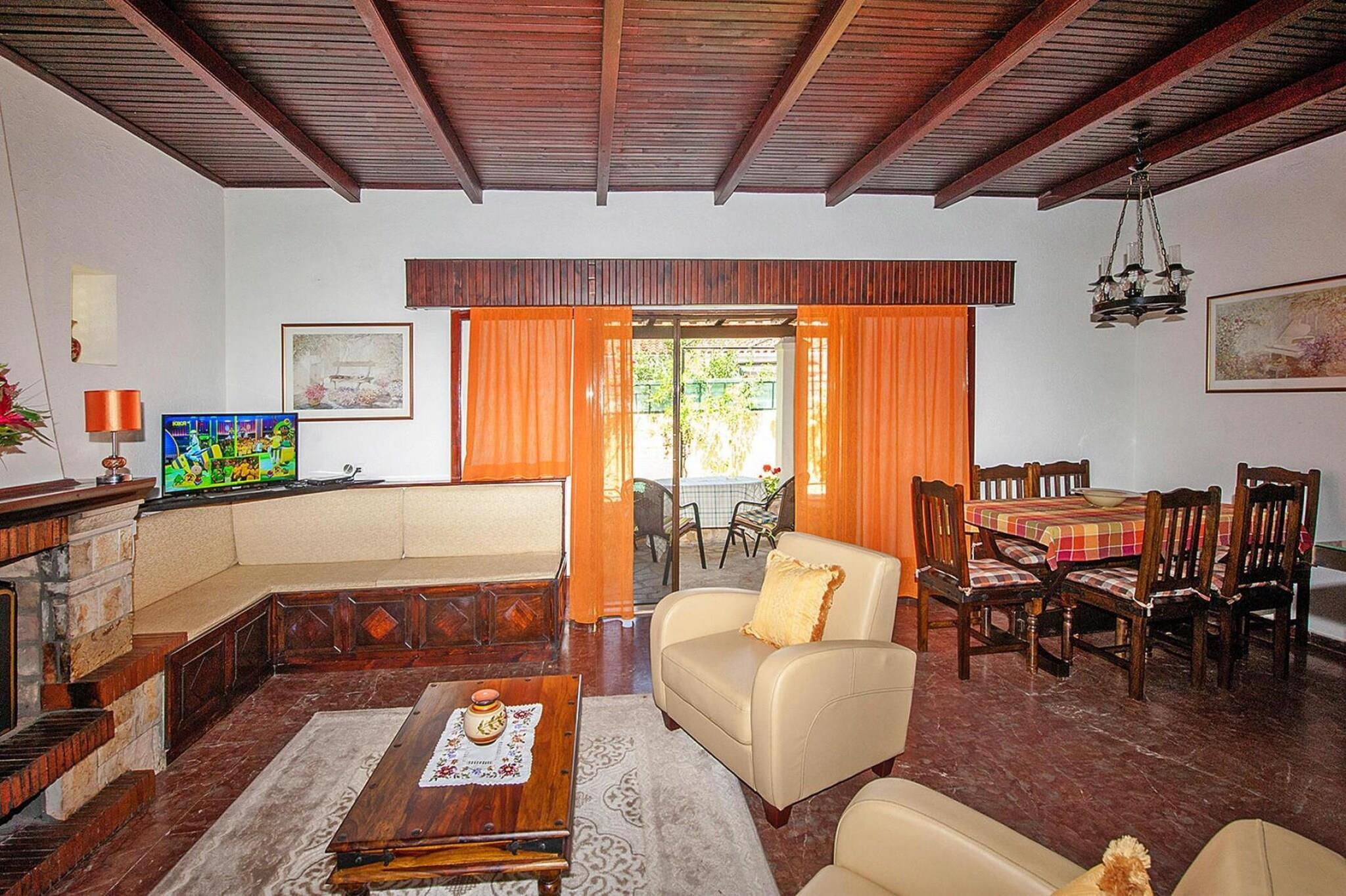Første etasje: (Stue(TV(satellitt, Tyske TV-kanaler)), åpent kjøkken(spisebord, komfyr med kokeplater(komfyr med 2 kokeplater, elektrisk), vannkoker, brødrister, kaffetrakter, stekovn, mikrobølgeovn, kjøleskap med fryser), soveværelse(2x enkeltseng, 1 persons sammenleggbar seng), soveværelse(dobbeltseng), bad(badekar, toalett, Hårtørker), vaskemaskin, terrasse, terrasse, hage, hagemøbler, air conditioning(paid), baby crib(free)) parkering