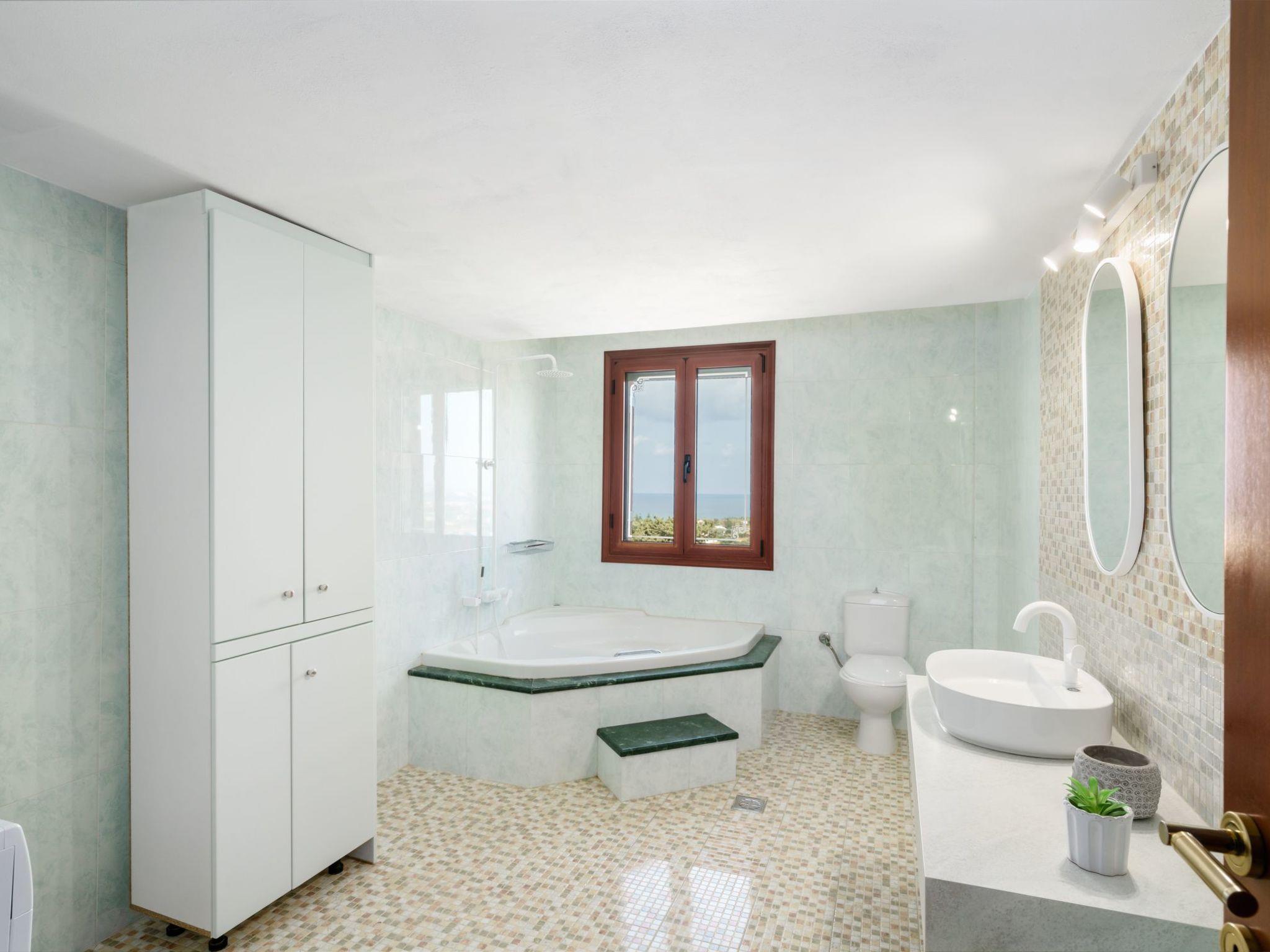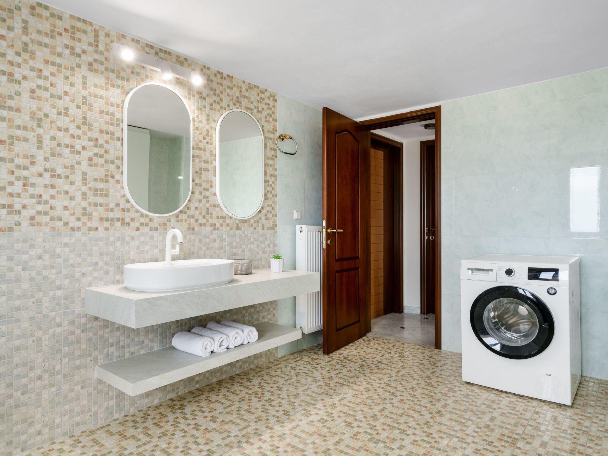 Inside, The Infinite is thoughtfully designed for comfort and convenience. The villa features two spacious living rooms: each includes cozy seating, a built-in fireplace, and a 43-inch HDTV with SAT TV. Two fully equipped kitchens on each floor that include modern appliances like a stove, oven, dishwasher, fridge, freezer, toaster, and coffee machines, espresso and filter, ensuring all your culinary needs are met. Of course all rooms have air conditioning. A welcome pack awaits you, and regular cleaning and linen services every 3-4 days allow you to relax completely.