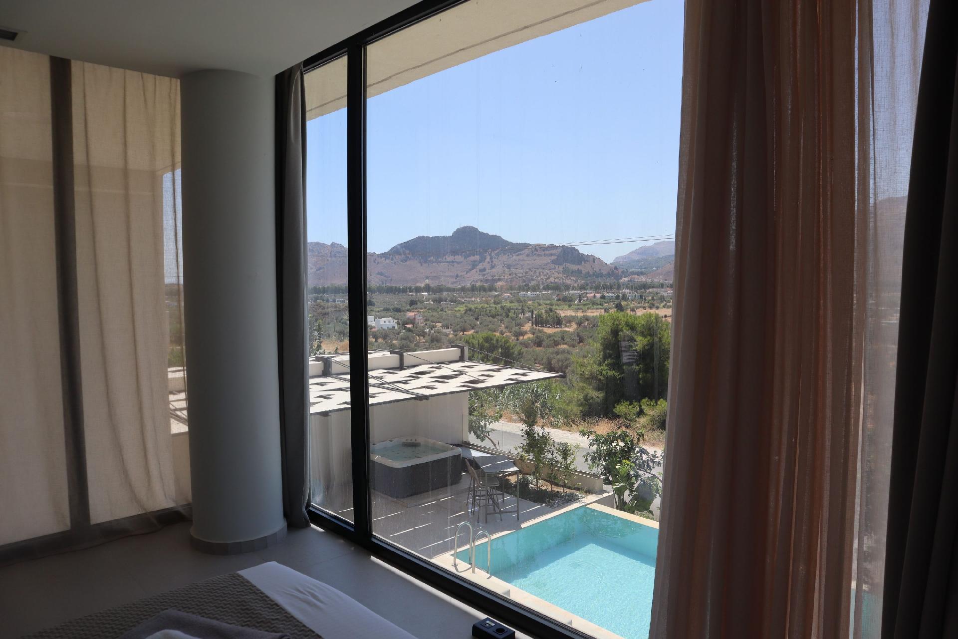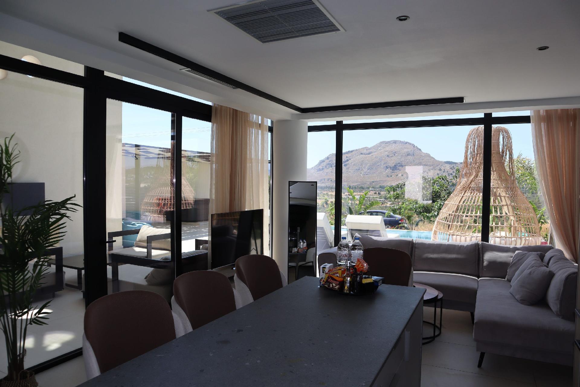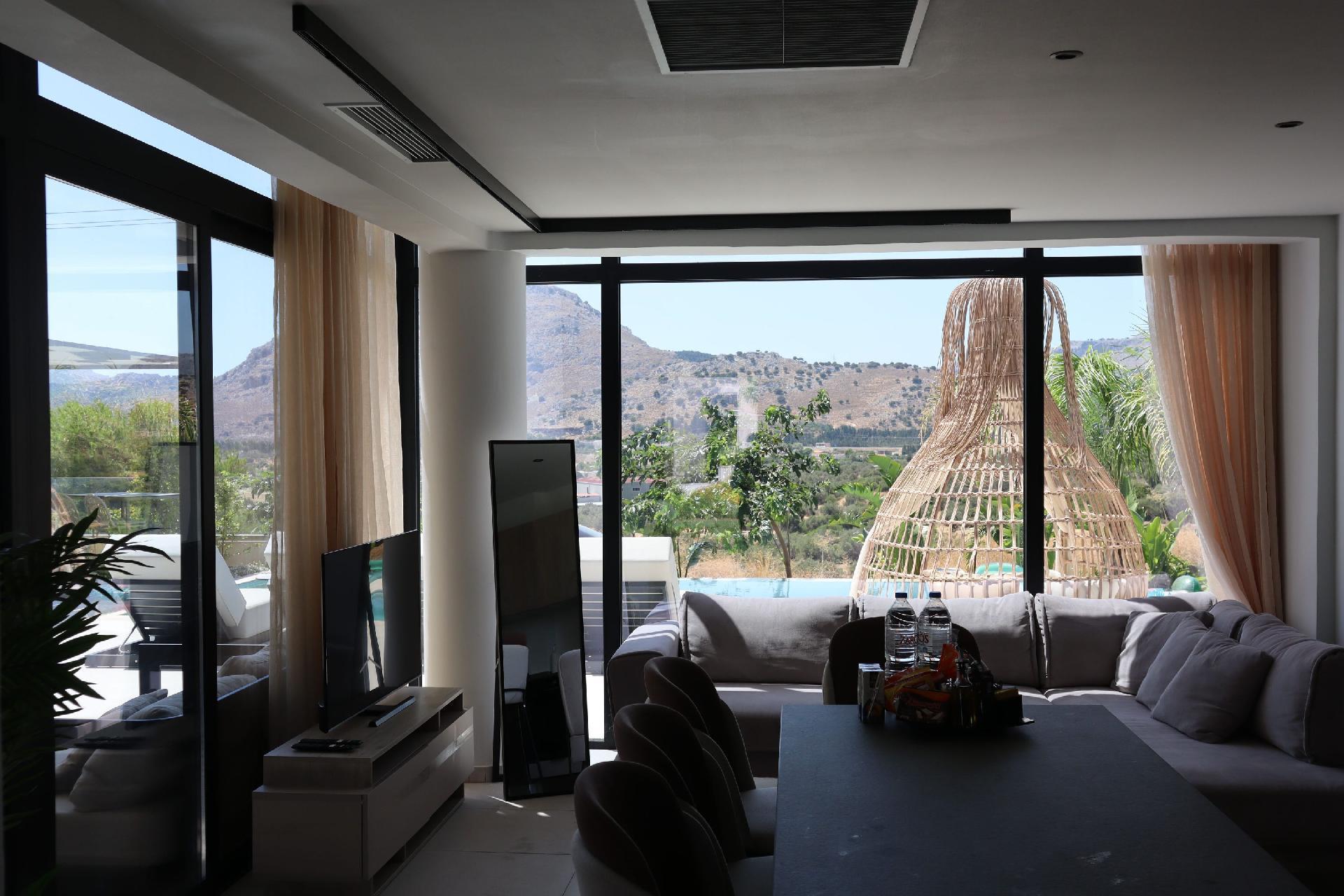 Welcome to the magic luxury living of Trapezia Villas. Trapezia Luxury Living boasts a stunning design that combines modern aesthetics with timeless elegance. Every detail is meticulously crafted to create a sophisticated and luxurious atmosphere. They offers expansive living spaces, including large living rooms, dining areas, and three fully equipped bedrooms with en-suite. The high ceilings and open floor plan enhance the sense of grandeur and provide ample room for relaxation and entertainment. All Trapezia villas are equipped with top-of-the-line amenities to ensure an unparalleled experience of luxury. From a fully-equipped outdoor gourmet kitchen to a private swimming pool and spa, every aspect of comfort and indulgence is taken care of. Trapezia Luxury Living is the epitome of opulence and sophistication, offering a truly exceptional living experience for those seeking the finest in accommodation.Type A villas are two floor luxury detached villas that hosts up to 6 guests.There are 3 fully air-conditioned bedrooms with unique decorations. All of the bedrooms offer ensuite bathrooms with a shower. There’s a fully equipped kitchen in warm colors, suitable for any meal preparation accompanied by the seating area and the living room. There’s a smart TV and free WIFI access throughout the property. Outdoors, there’s a private swimming pool and jacuzzi with sunbeds and a seating area where you can relax under the rays of the Aegean sun. The amazing outdoor kitchen with the dinning are promises memorable dinner’s under the Greek sky. You can spend your time by your private swimming pool or enjoy a fresh meal prepared in the BBQ installation. This amazing property and the beautiful location make the perfect match for a memorable stay and unforgettable holidays in Rhodes!