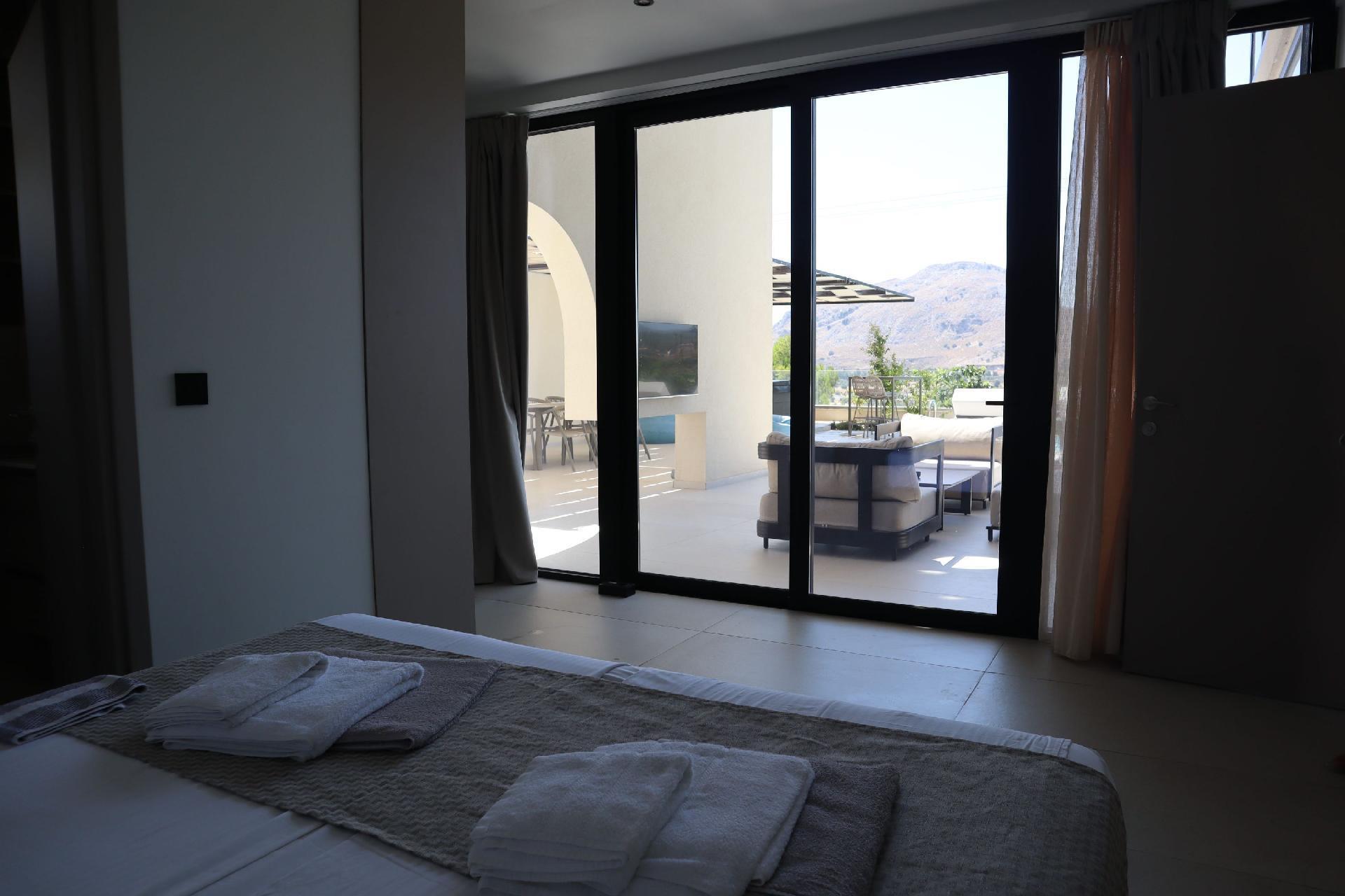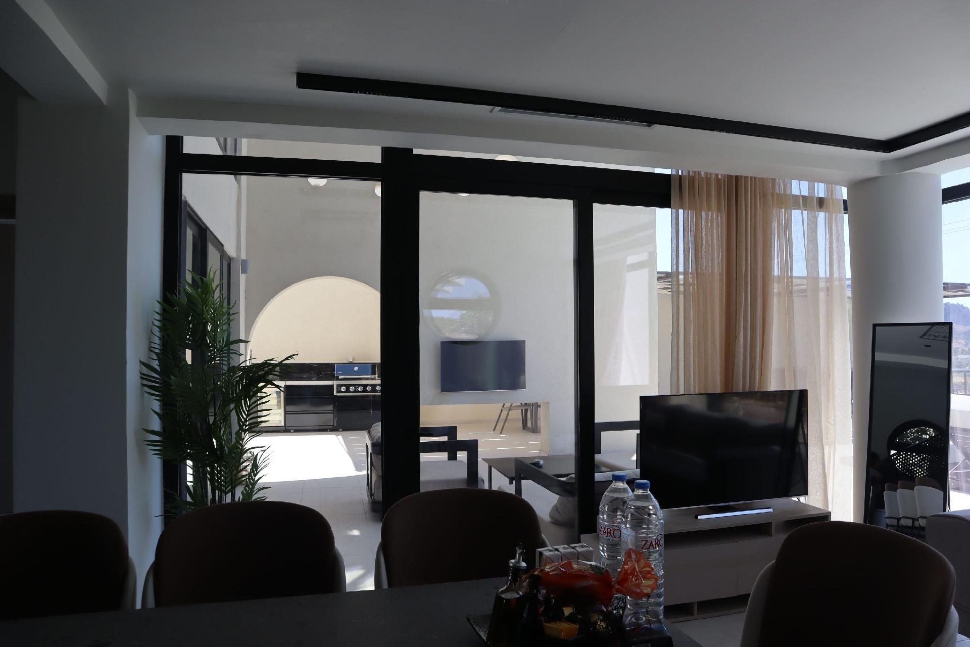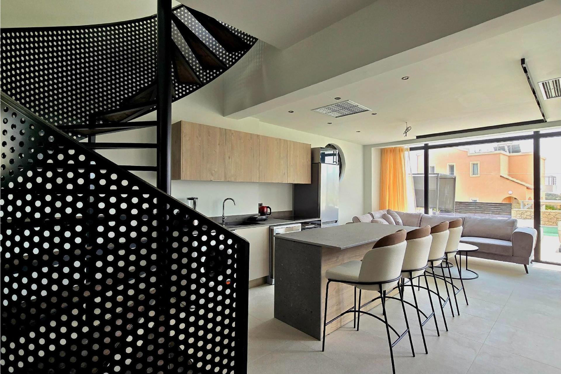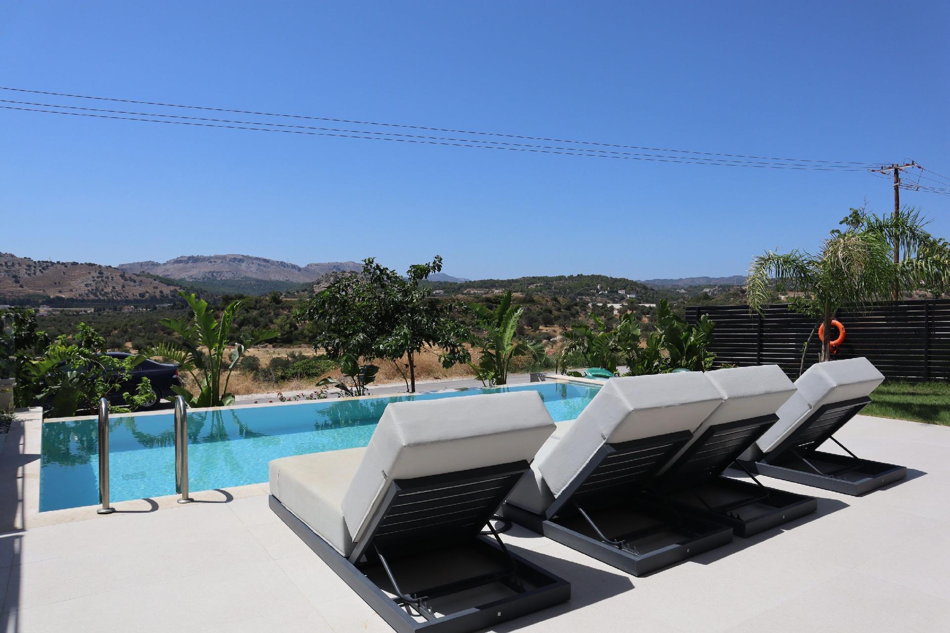 Welcome to the magic luxury living of Trapezia Villas. Trapezia Luxury Living boasts a stunning design that combines modern aesthetics with timeless elegance. Every detail is meticulously crafted to create a sophisticated and luxurious atmosphere. They offers expansive living spaces, including large living rooms, dining areas, and three fully equipped bedrooms with en-suite. The high ceilings and open floor plan enhance the sense of grandeur and provide ample room for relaxation and entertainment. All Trapezia villas are equipped with top-of-the-line amenities to ensure an unparalleled experience of luxury. From a fully-equipped outdoor gourmet kitchen to a private swimming pool and spa, every aspect of comfort and indulgence is taken care of. Trapezia Luxury Living is the epitome of opulence and sophistication, offering a truly exceptional living experience for those seeking the finest in accommodation.Type A villas are two floor luxury detached villas that hosts up to 6 guests.There are 3 fully air-conditioned bedrooms with unique decorations. All of the bedrooms offer ensuite bathrooms with a shower. There’s a fully equipped kitchen in warm colors, suitable for any meal preparation accompanied by the seating area and the living room. There’s a smart TV and free WIFI access throughout the property. Outdoors, there’s a private swimming pool and jacuzzi with sunbeds and a seating area where you can relax under the rays of the Aegean sun. The amazing outdoor kitchen with the dinning are promises memorable dinner’s under the Greek sky. You can spend your time by your private swimming pool or enjoy a fresh meal prepared in the BBQ installation. This amazing property and the beautiful location make the perfect match for a memorable stay and unforgettable holidays in Rhodes!