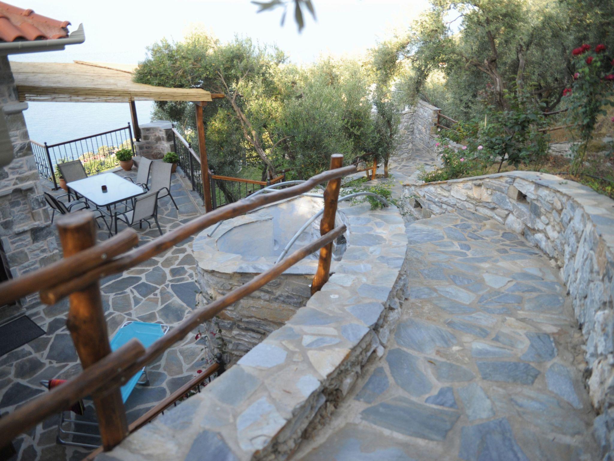 The villa is built of stone in 2021 in the foothills of Pelion, Greece. It is surrounded by green mountains and at the same time 2 km from the transparent Aegean Sea. The climate is very pleasant even when it is very hot. The view is of the sea and the mountain. From the villa there are hiking trails in the mountain where the fauna is very varied and very beautiful. In the surrounding area there are several small villages characteristic of Pelion with small restaurants ( Greek taverns ) where you can try tasty, traditional local dishes. The beaches are clean and equipped to satisfy even the most demanding travellers. You can visit small coves and swim in the transparent waters away from many people.