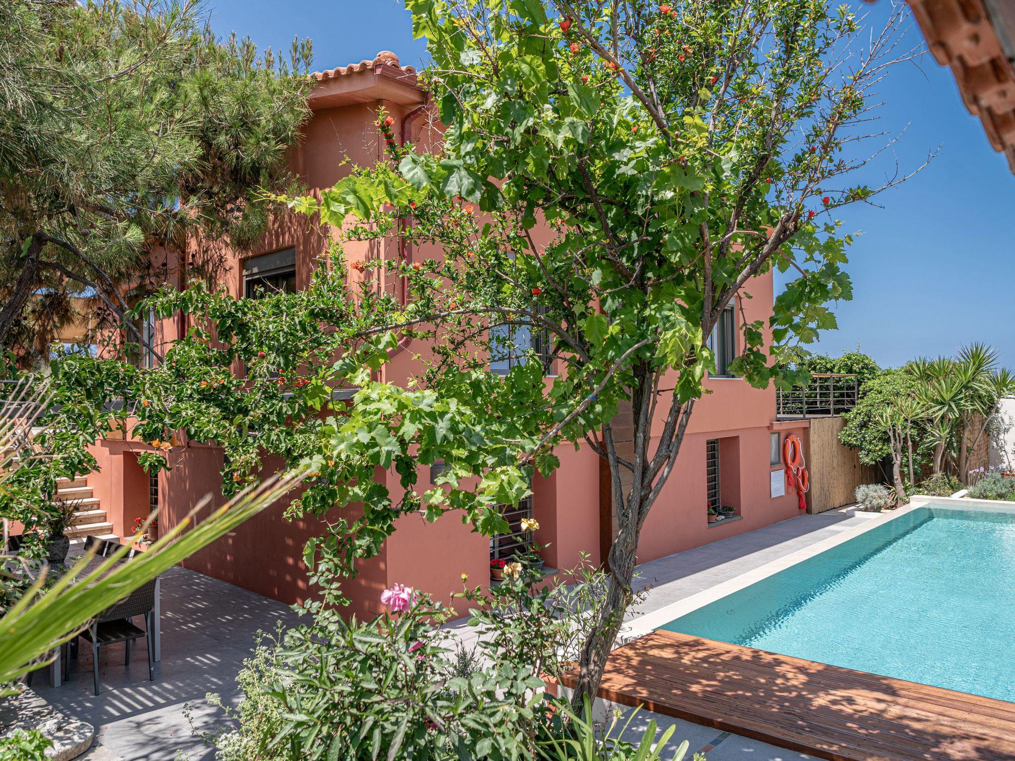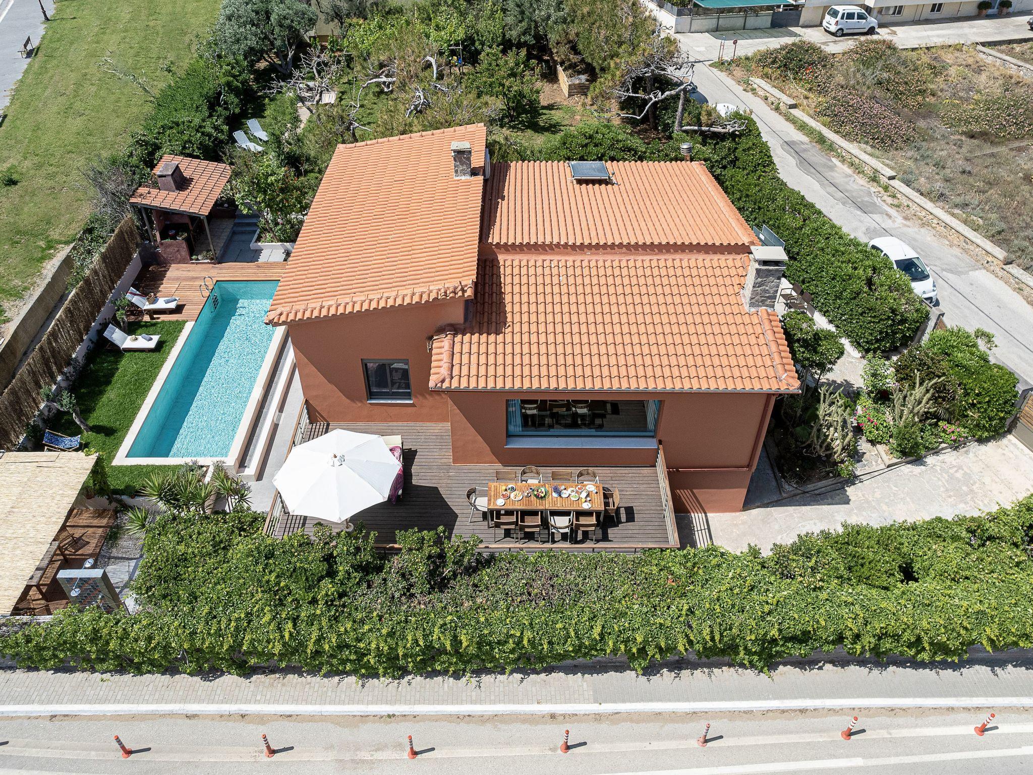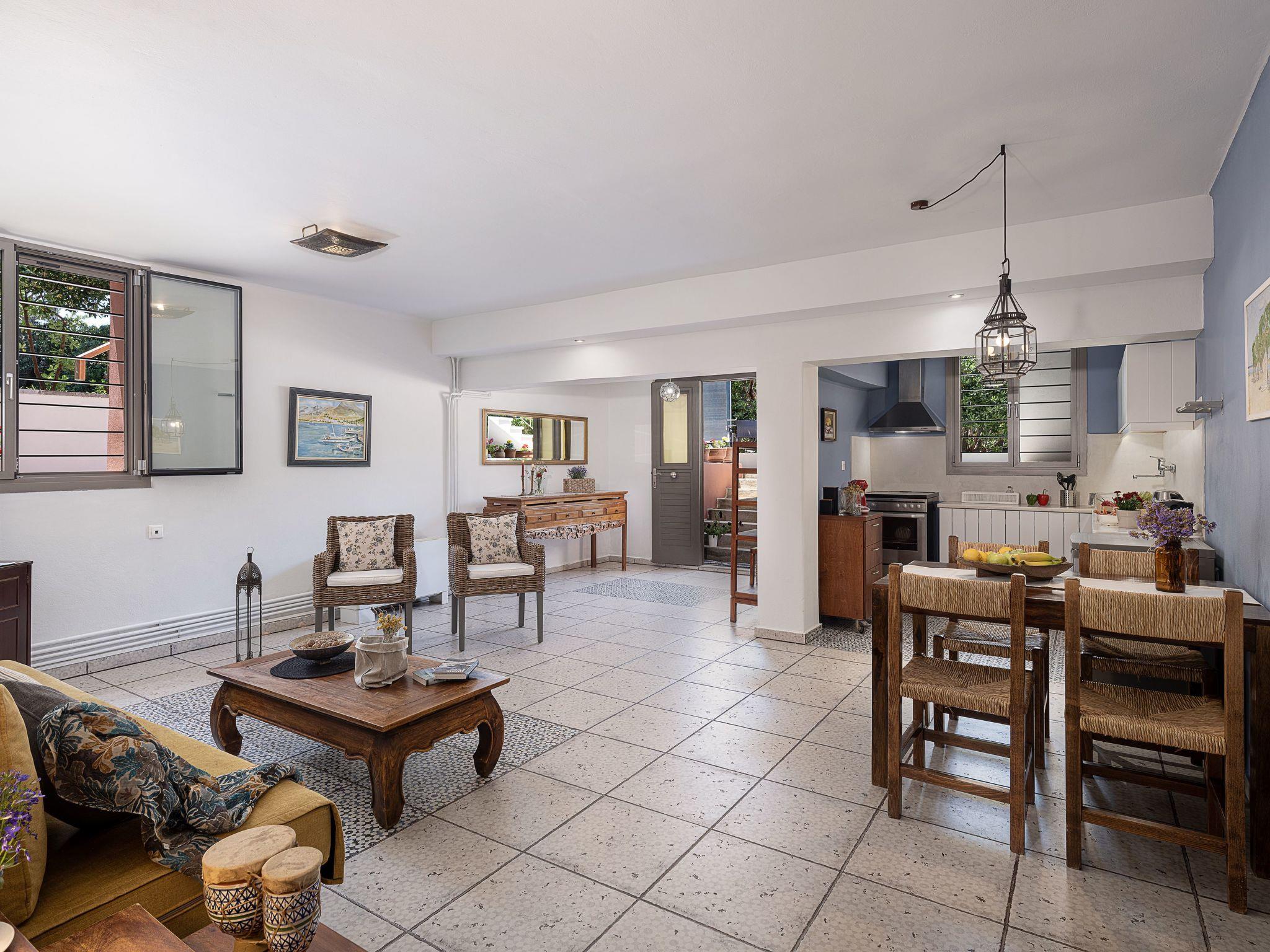 The whole villa can be booked only by one guest, one family, or two friend-families or relatives, but only by one booking. In other words, if you were more than 6, you would take the whole house. Since you were 4 people, you did not need the downstairs space, but we are not aloud to host strangers at the same time as you. This is one villa and depending on the number of the guests, we give one or both spaces.The property is as beautiful as in the pictures, with beautiful & modern decoration and full of charm, the apartment clean and well equipped, the terraces dotted with flowering plants. The owners are absolutely charming while remaining very discreet. Fantastic place, very quiet setting, recommend it to anyone who wants to spend a few days in a quiet and relaxing atmosphere! A accommodation much better than a hotel room!You will not find villas like this, so close to Chania, seafront for 10 people with such a large garden, shade,so many corners to relax, with shops to buy food, restaurants and clean, shallow sea with white sand! The house is splendid and has all sorts of details.