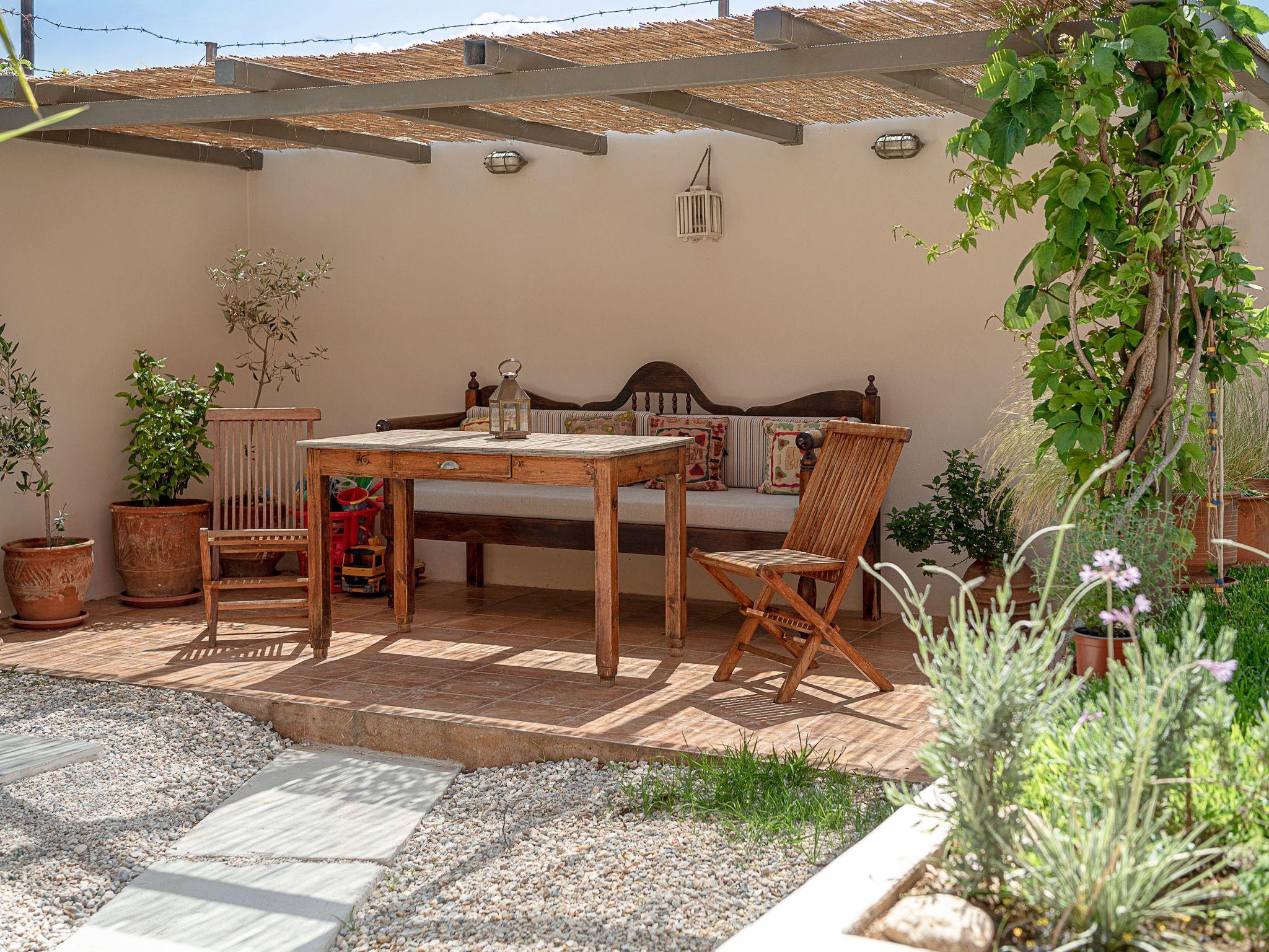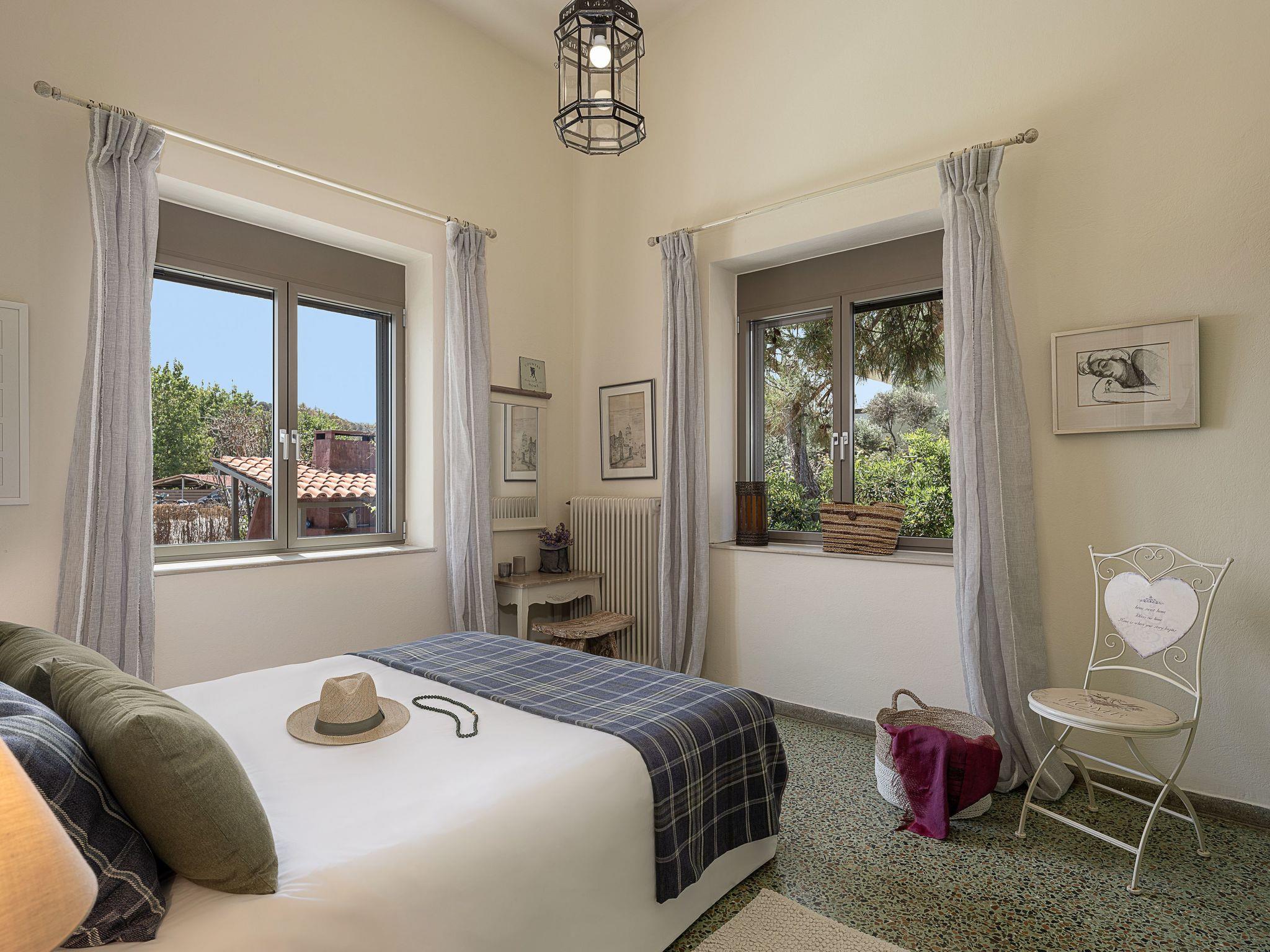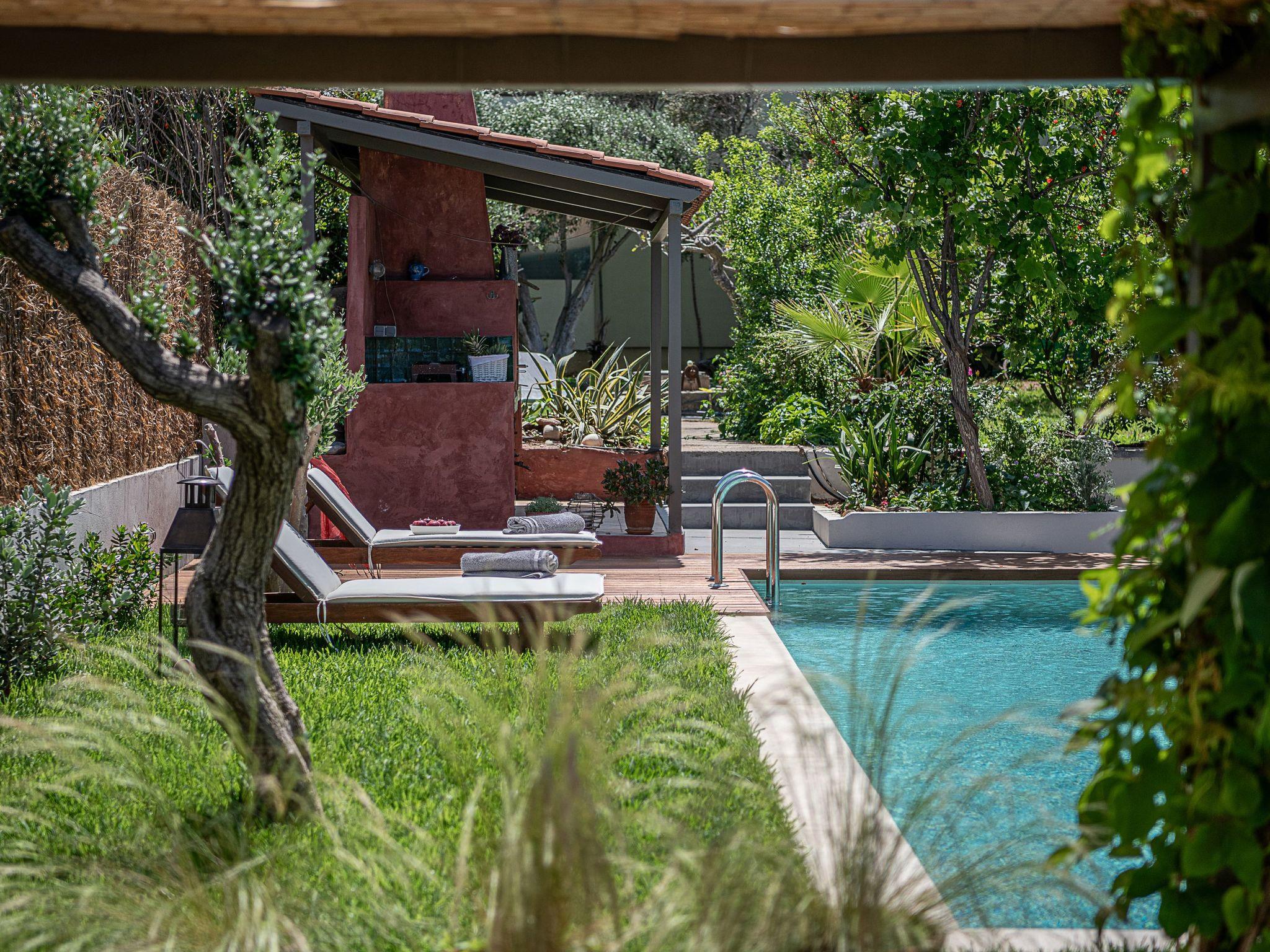 “The House by the Sea” is available from 2pm on the day of arrival. Guests are requested to vacate the house at 10 am on the day of departure. We will try to be as flexible as possible. This will depend on each individual case and other bookings. If we are notified in advance we will try to accommodate guests with difficult flight times. Luggage storage is no problem. The garden with the pool is an oasis in its own right with olive and bougainvillea trees encircling the house. This space provides ample opportunities for both relaxing and entertaining at the generous and shady garden table. From the garden, at sunset, the terrace lounge area provides an ideal setting.A swimming pool of 30m2 is builted in 2023. Inside the property is an information book giving useful tips and advice to help you make the most of your holiday and the surrounding area. Other activities (water sports, sailing courses and other water sports) are available 2 km from the property. 500 m away there is also horse riding. Special note: The houses are not suitable for guests with mobility problems. The houses can be rented together, 9 people in 2 friendly families or couples. Otherwise, they are rented separately. Smoking is allowed outside. Animals is not allowed.It is not suitable for parties and large caterings
