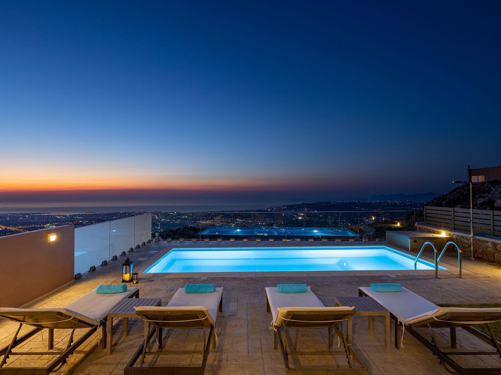 What makes villa Nektar unique is the location. It is located only a few minutes from Chania, on the side of a mountain, so we have a spectacular view of Souda bay, the city of Chania, the Cretan sea and a fantastic sunset from the west (Kissamos area).