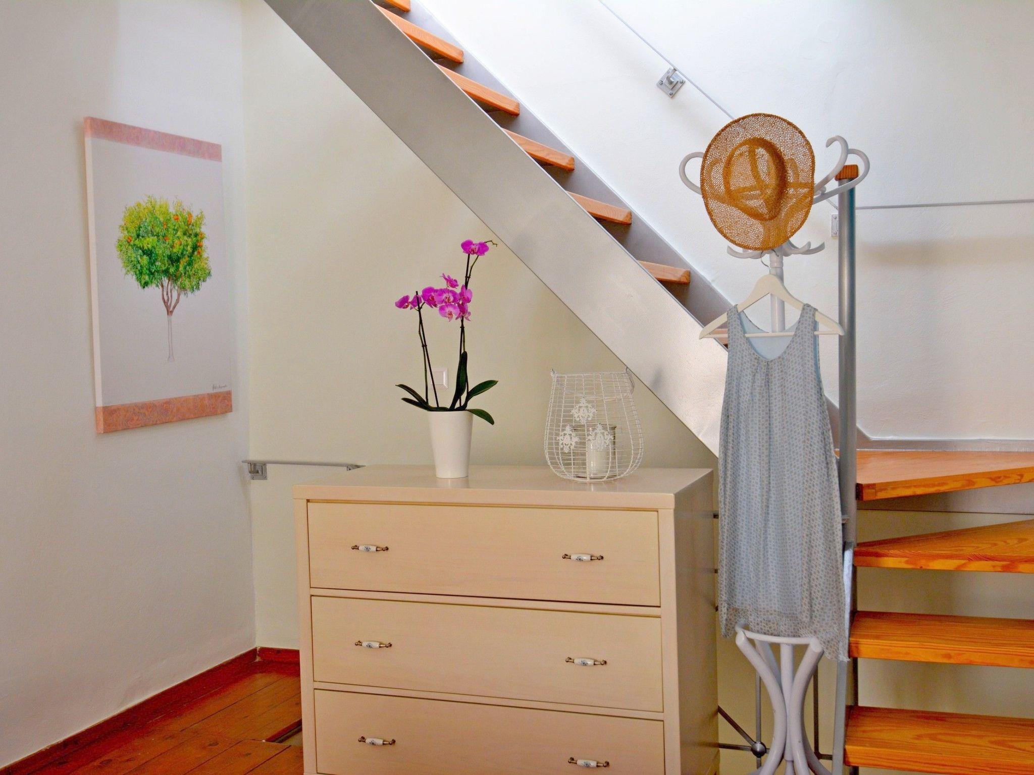 1st floor: living room with 2 sofa beds, satellite TV, table, chairs, bookshelves and roof fan, balcony. 2nd floor: bedroom with double bed, chest of drawers, wall cupboard and roof fan. Roof terrace with marvellous view over the city, the mountains and the sea, seating, deckchairs, table.