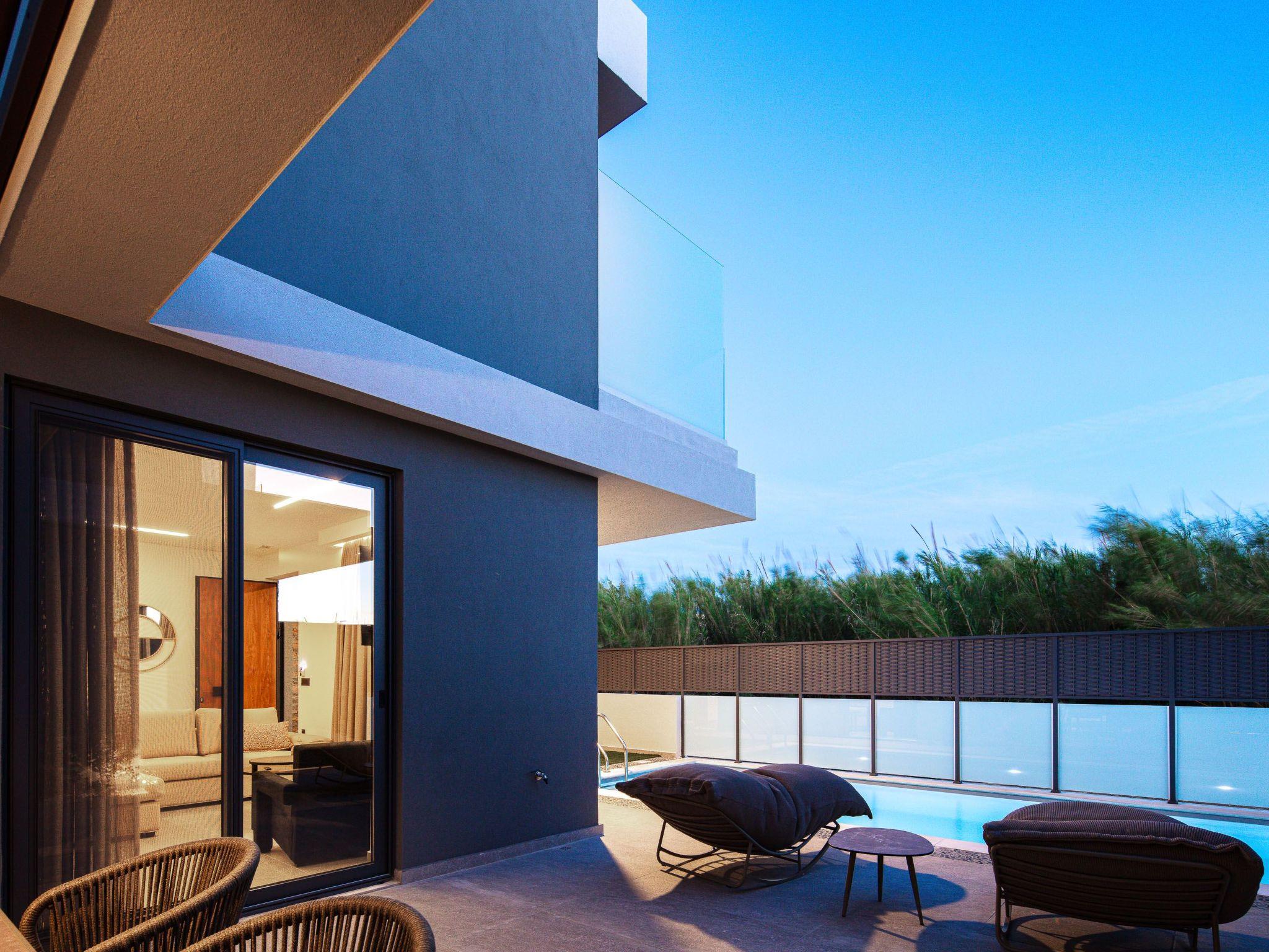 The villa’s 120 sqm private outdoor space is designed for carefree leisure and comfort. The 20 sqm private pool is surrounded by a sunbathing area with 2 sunbeds, 2 sez long chairs, and side tables for relaxing under the sun. A poolside shower is also available for your convenience. Enjoy outdoor dining under the pergola-shaded dining area, next to a fully equipped BBQ corner with an electric grill and sink—ideal for preparing fresh meals and gathering with loved ones.