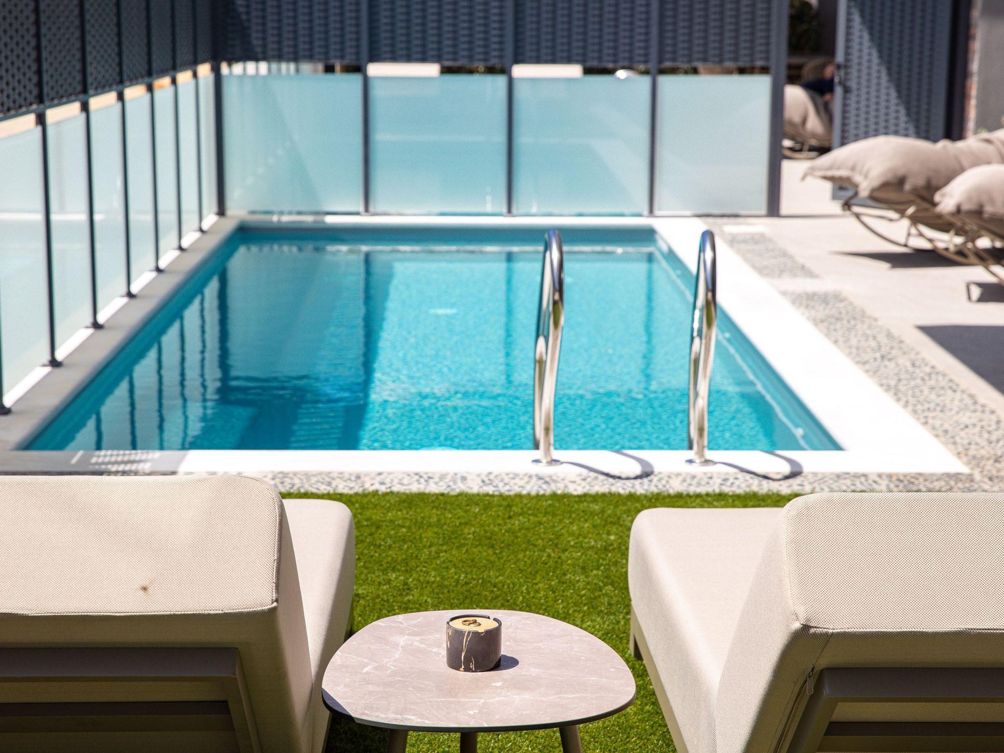 Private outdoor swimming pool measuring 20 sqm with a depth of 1.40m.