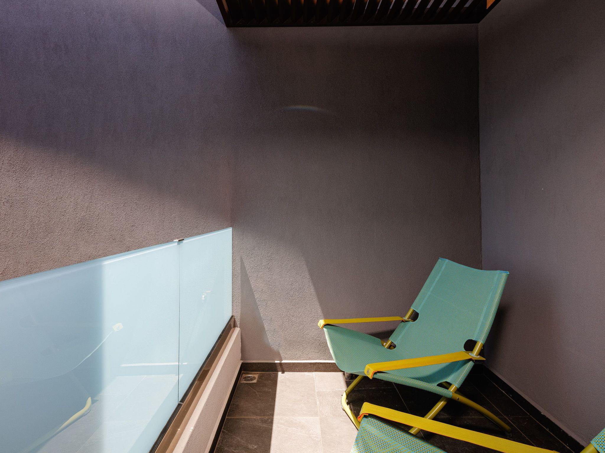 The upper floor includes the second ensuite bedroom, featuring a King-size Coco Mat bed (1.80 x 2.00) that can be converted into twin beds (0.90 x 2.00) upon request. This room is equipped with a Smart 32” TV, A/C, open wardrobe, and an ensuite split bathroom with a walk-in shower and separate toilet. It also enjoys access to a private balcony for a peaceful escape.