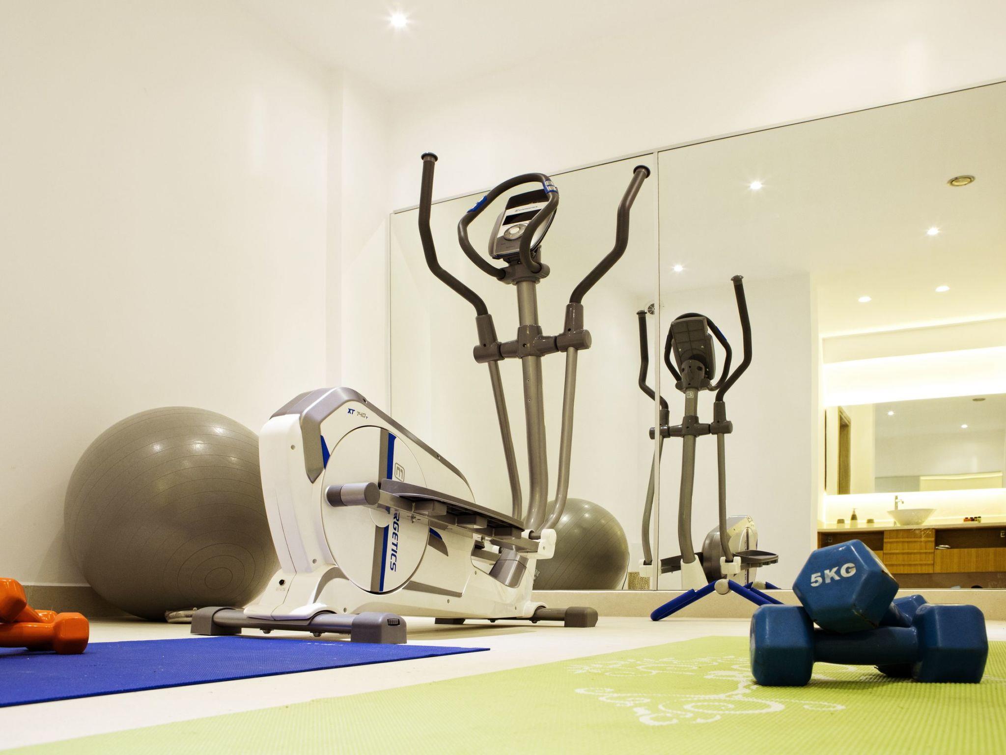 One bedroom with en-suite bathroom, air-condition, SMART SATELLITE TV and window, a media room with SMART SATELLITE TV and sofa bed that turns into double bed, a fitness room with sport equipment and a WC/bathroom, 1 secure garage parking
