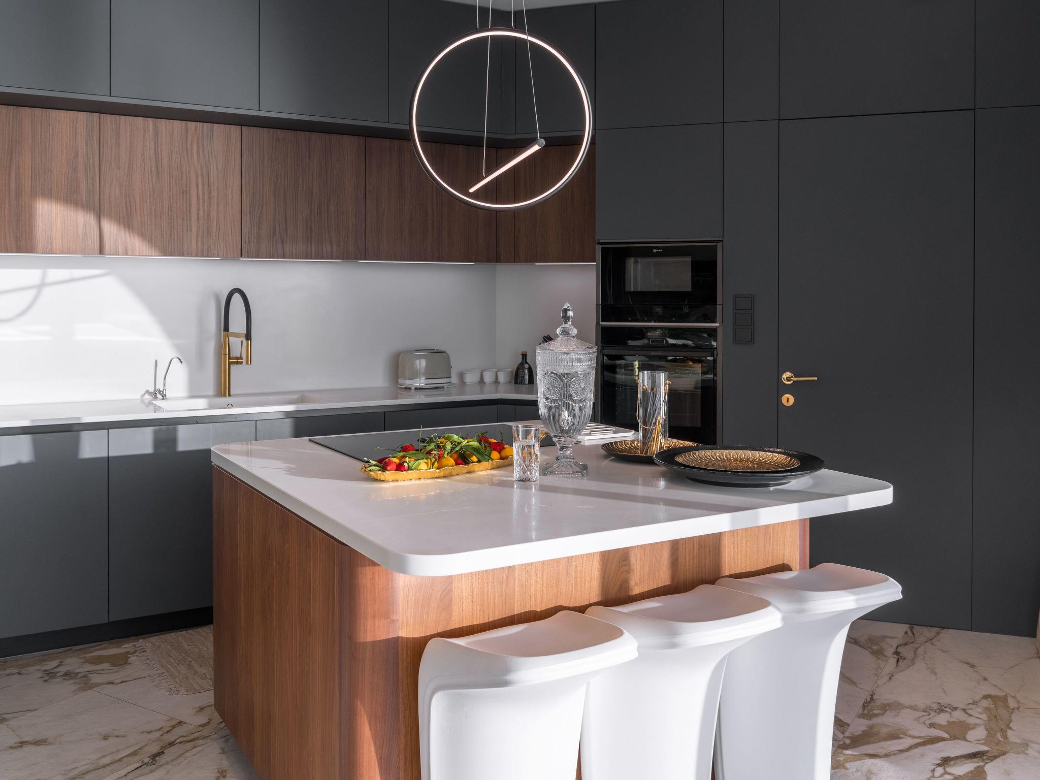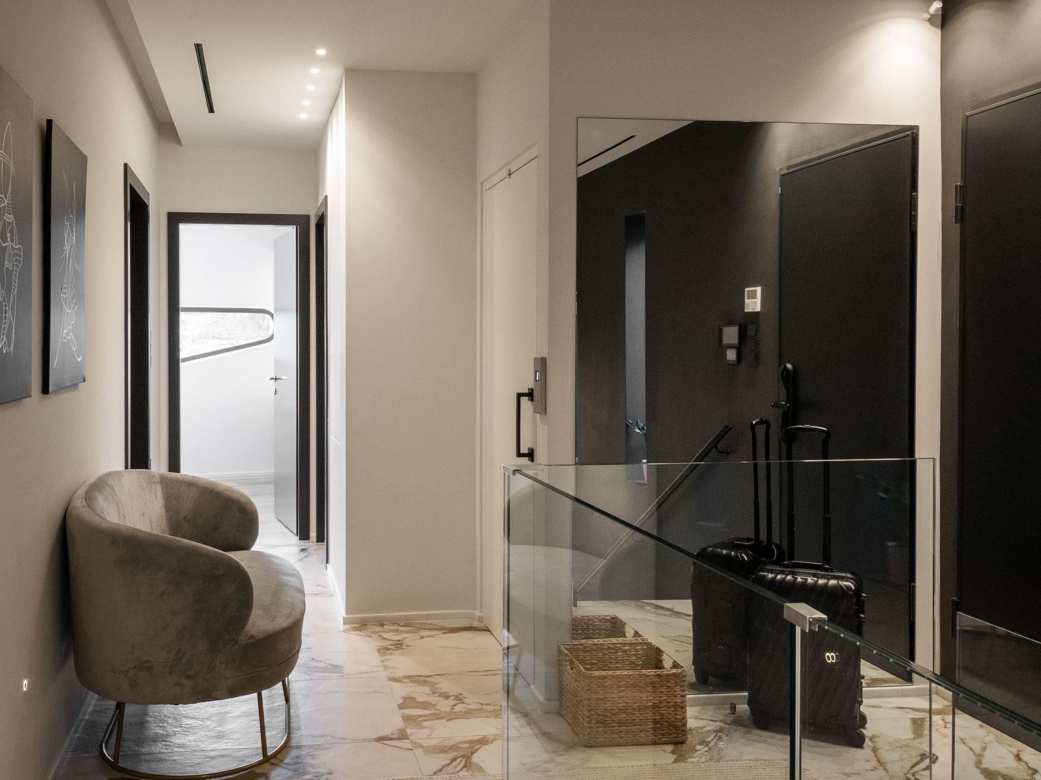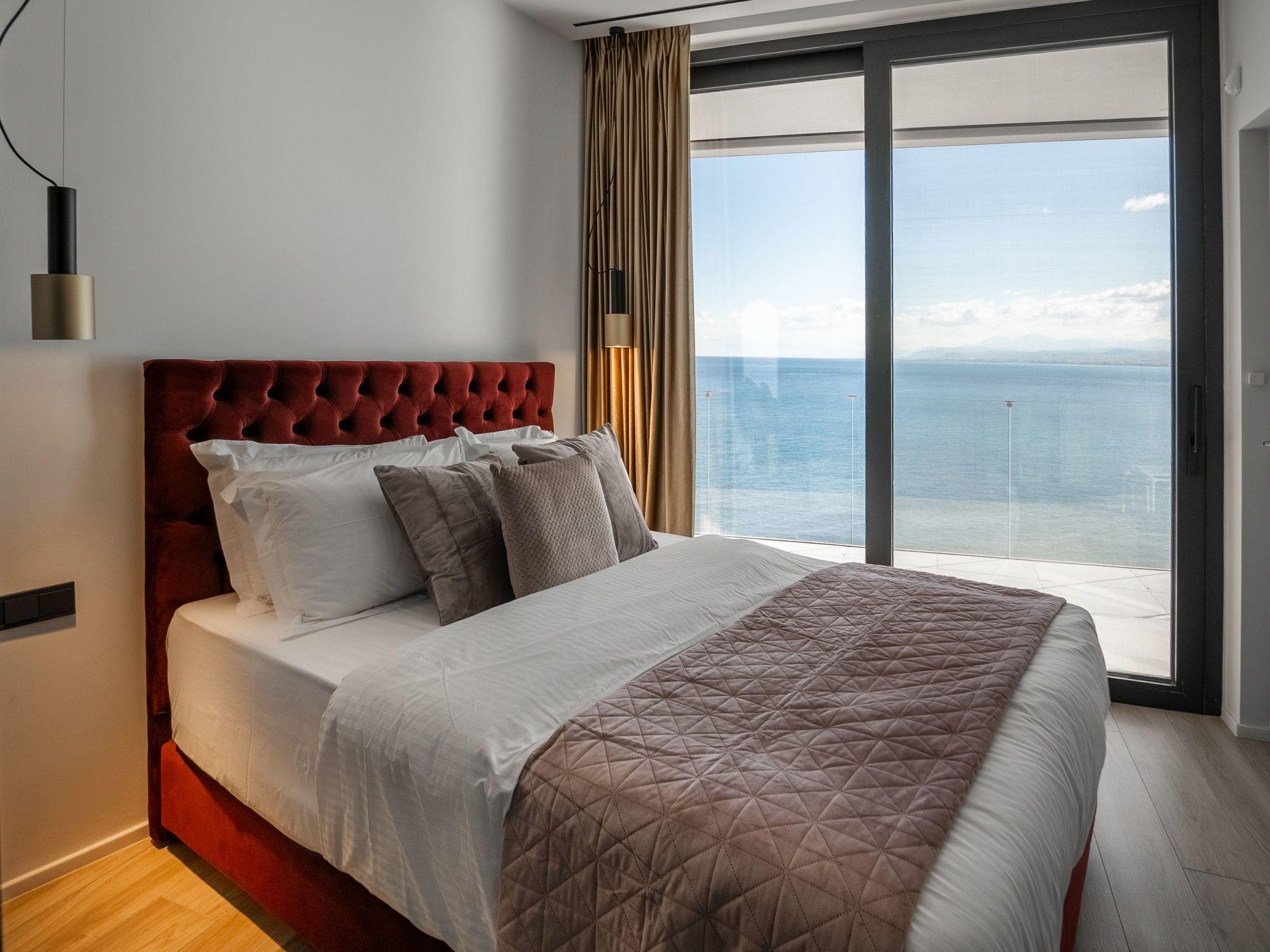 Within the interior, this lavish abode is thoughtfully furnished to ensure the utmost comfort and convenience. A generous living room anchors the ground floor, featuring a cozy fireplace, plush sofa, and a TV, all complemented by a large dining table. The kitchen is fully equipped to cater to all culinary needs. The villa hosts six well-appointed bedrooms, each designed to provide an oasis of tranquility. Two master bedrooms offer king-size beds, private bathrooms with luxurious bathtubs, and spectacular sea views from expansive balconies. Additional bedrooms are meticulously arranged, including one with a unique underground setup boasting a private kitchen.