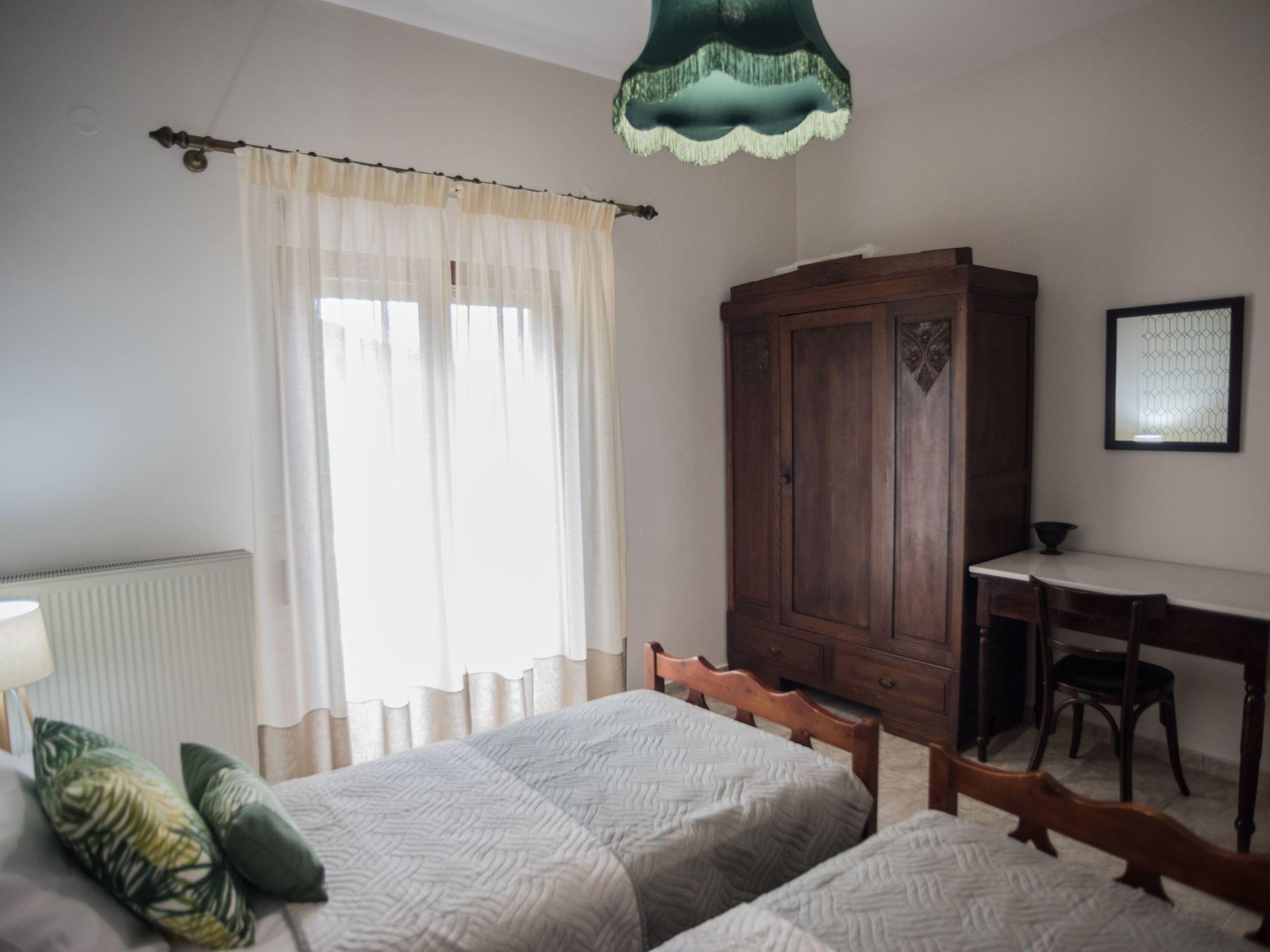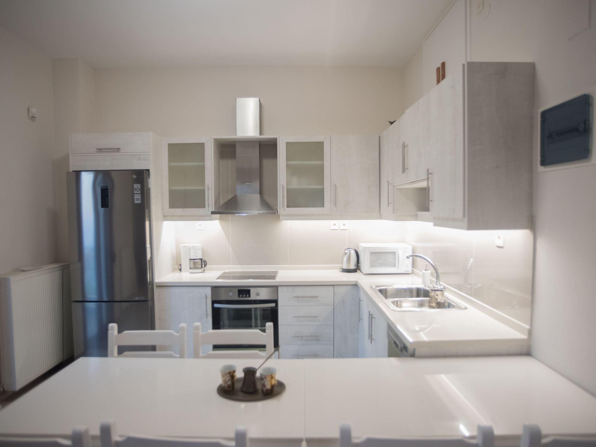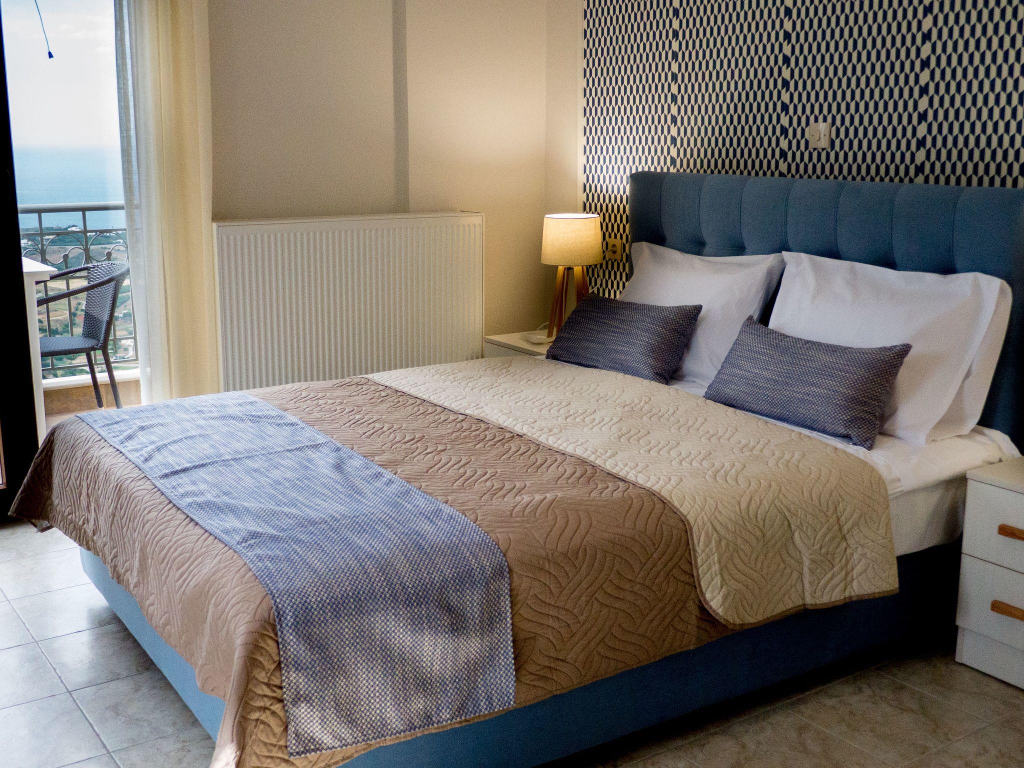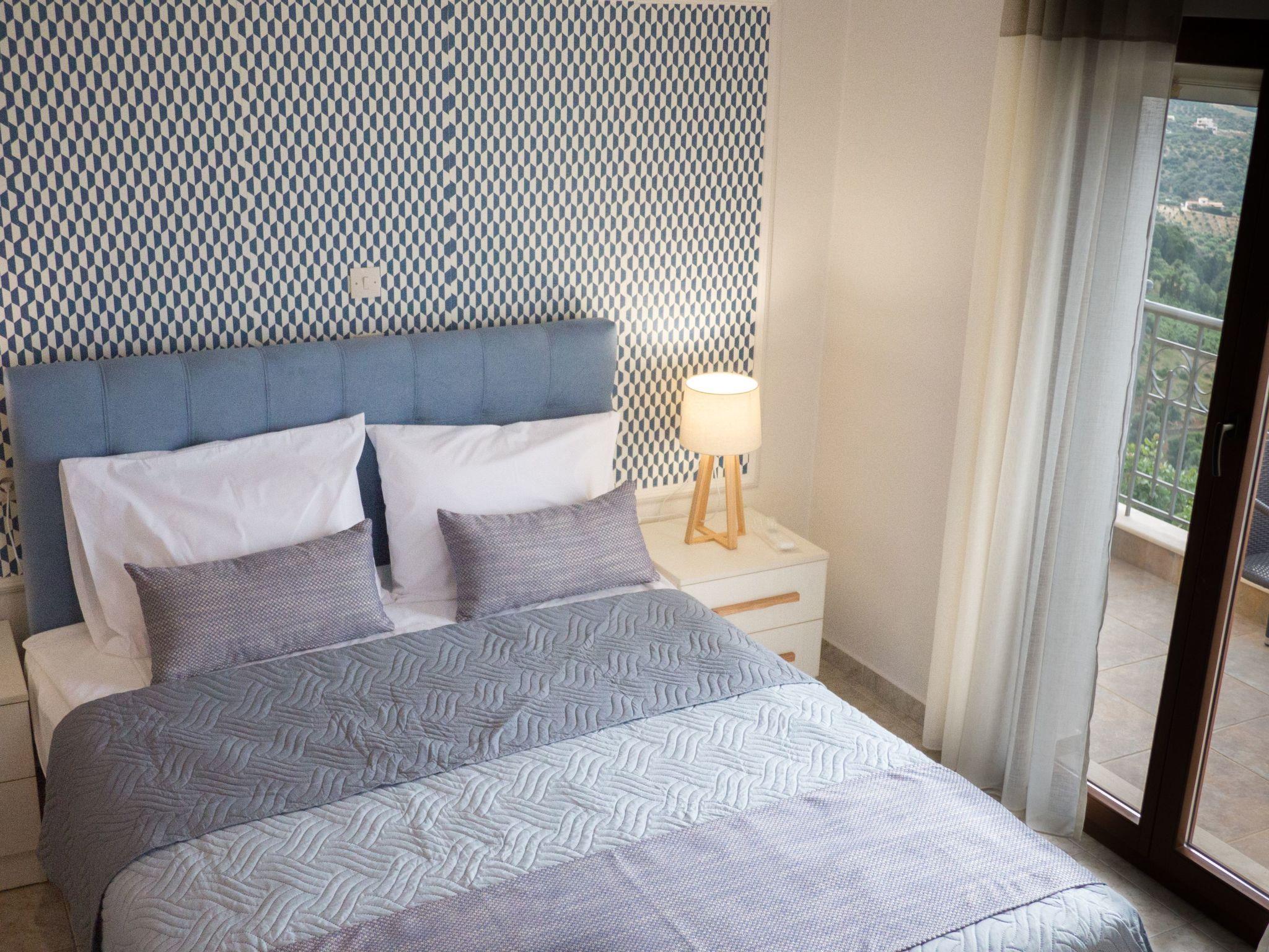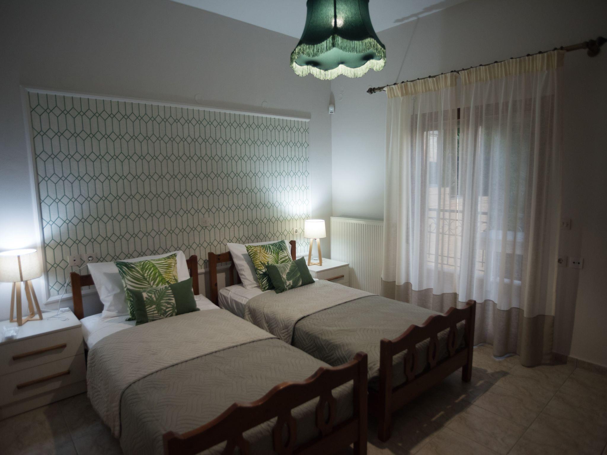 The apartment is at the first floor of a villa, fully decorated with 4 bedrooms, each with its own bathroom, AC in every room and fully equipped kitchen with everything you need to make lovely breakfasts and dinners alike. The floor is entirely at your disposal without any other quests to bother you in a 135 sqm2 area with satellite TV, full WiFi coverage, hair driers in every bathroom, washing machine for laundry and dishes and more. Baby crib is provided per request and the sofa in front of TV can turn to a bed to accommodate 1 more person. Entire apartment is surrounded by 4 balconies with tables and chairs for that evening tea or coffee break.