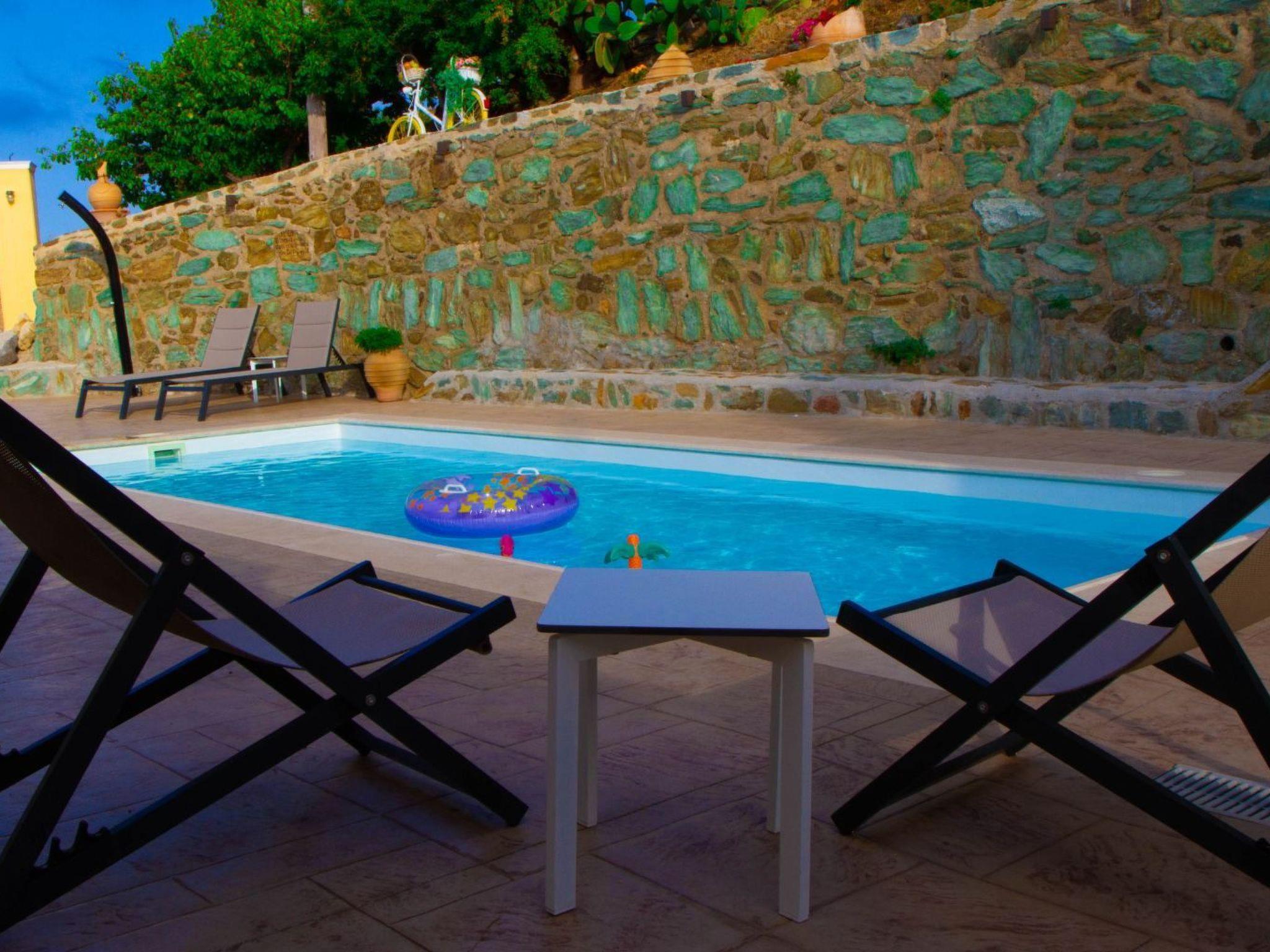 The area around villa, has access to a parking lot for your own use only, private swimming pool, a perkola with a big table and long bench , charcoal BBQ and that magnificent view.