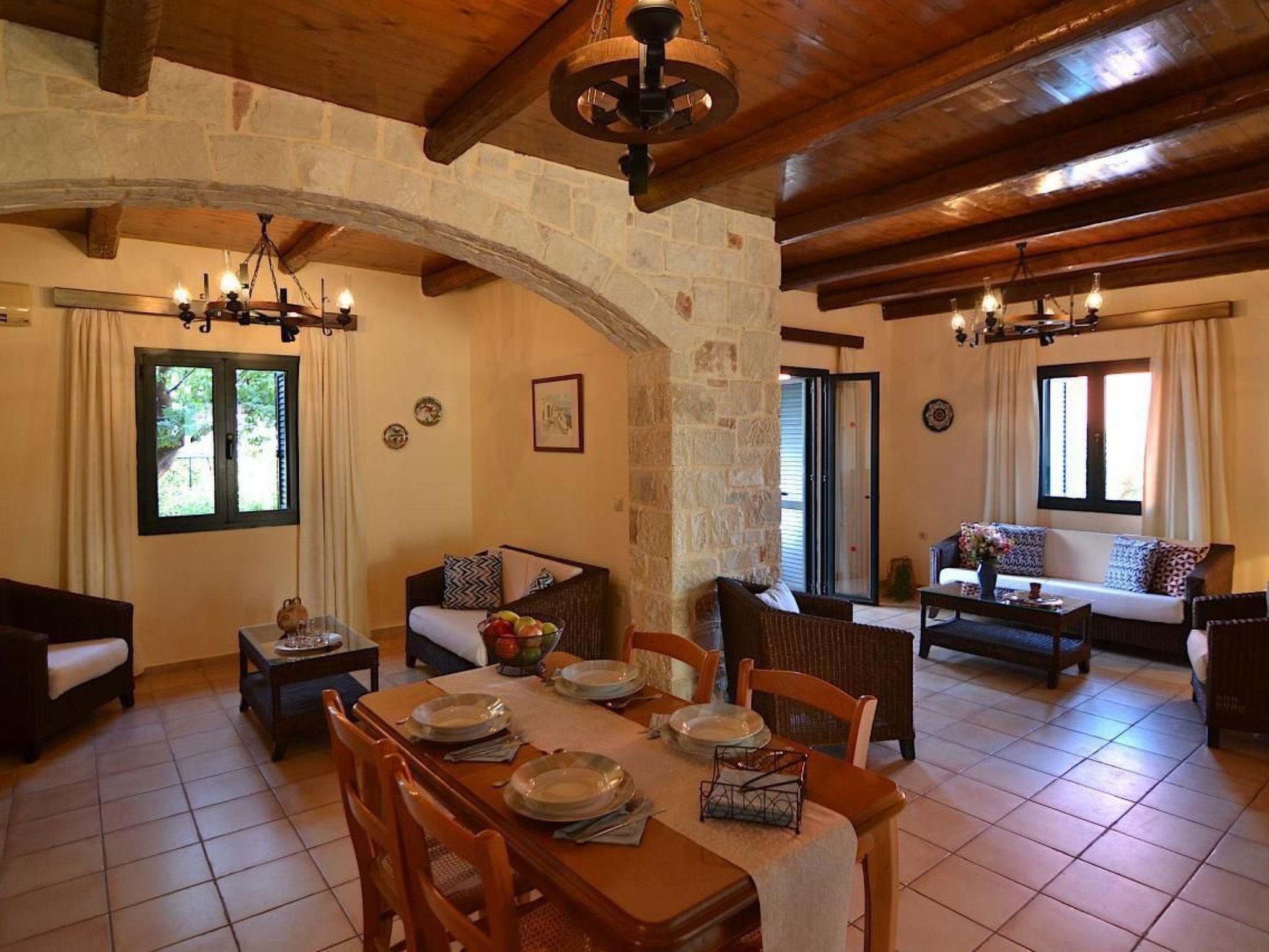 Christina Villa has an architecture inspired from the local traditional aesthetics. The private pool adds to the characteristics of the discreet luxury and decorates the nights of the veranda. Large open plan lounge with integrated dining area, a fireplace and full equipment, complete the comfort and relaxation that the guests enjoy when they do not choose to gaze and wonder at the mountain view, tapestry of olive groves and vineyards.