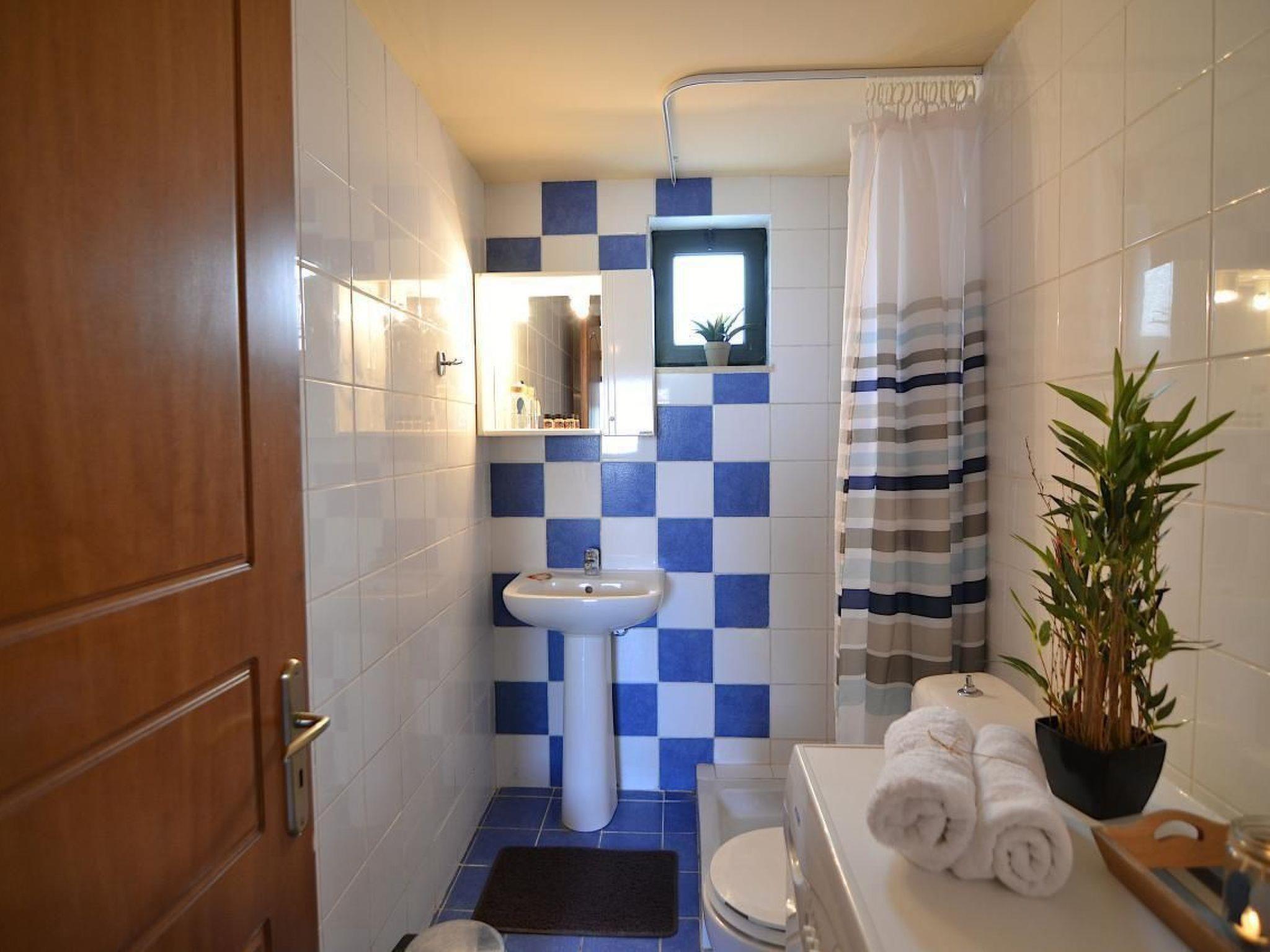 The toilet downstairs is like a wet room with a W.C, a showerhead and a washbasin. It can be used as a utility room too. The other toilet features a shower with curtain apart from the W.C. And also has the washing machine of the house.