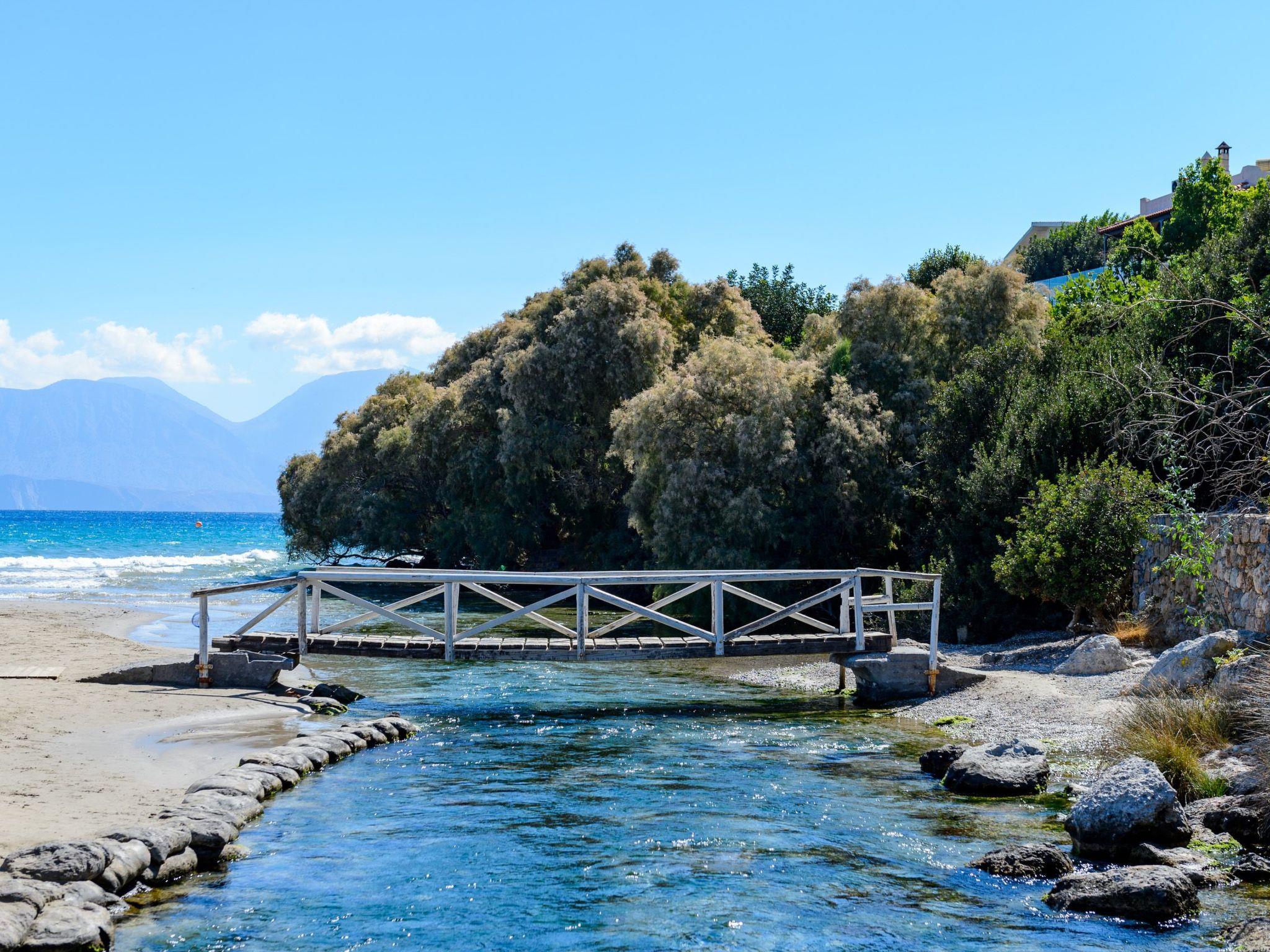 The villa “Agios Nikolaos” is located in the area of Almyros, a suburb of the city of Agios Nikolaos. The villa is located a short distance from the city center and only a few metres away from the beach of Almyros. The area of Almyros was named after the river that flows into its beach and includes an important eco system protected by the international treaty of Ramsar 1971. The beach of Almyros is the most popular beach of Agios Nikolaos with a “Blue Flag“ and is organized with water activities.