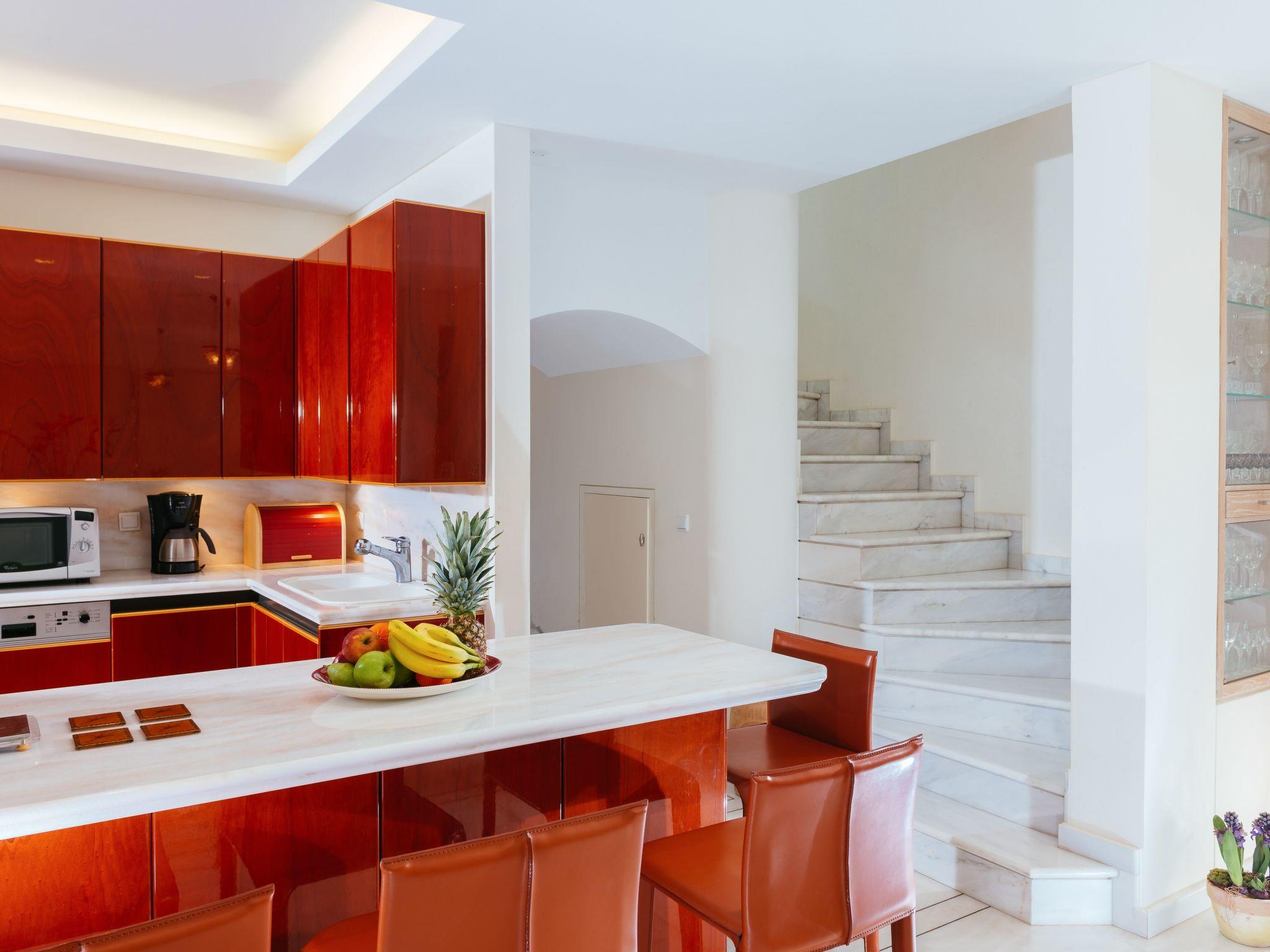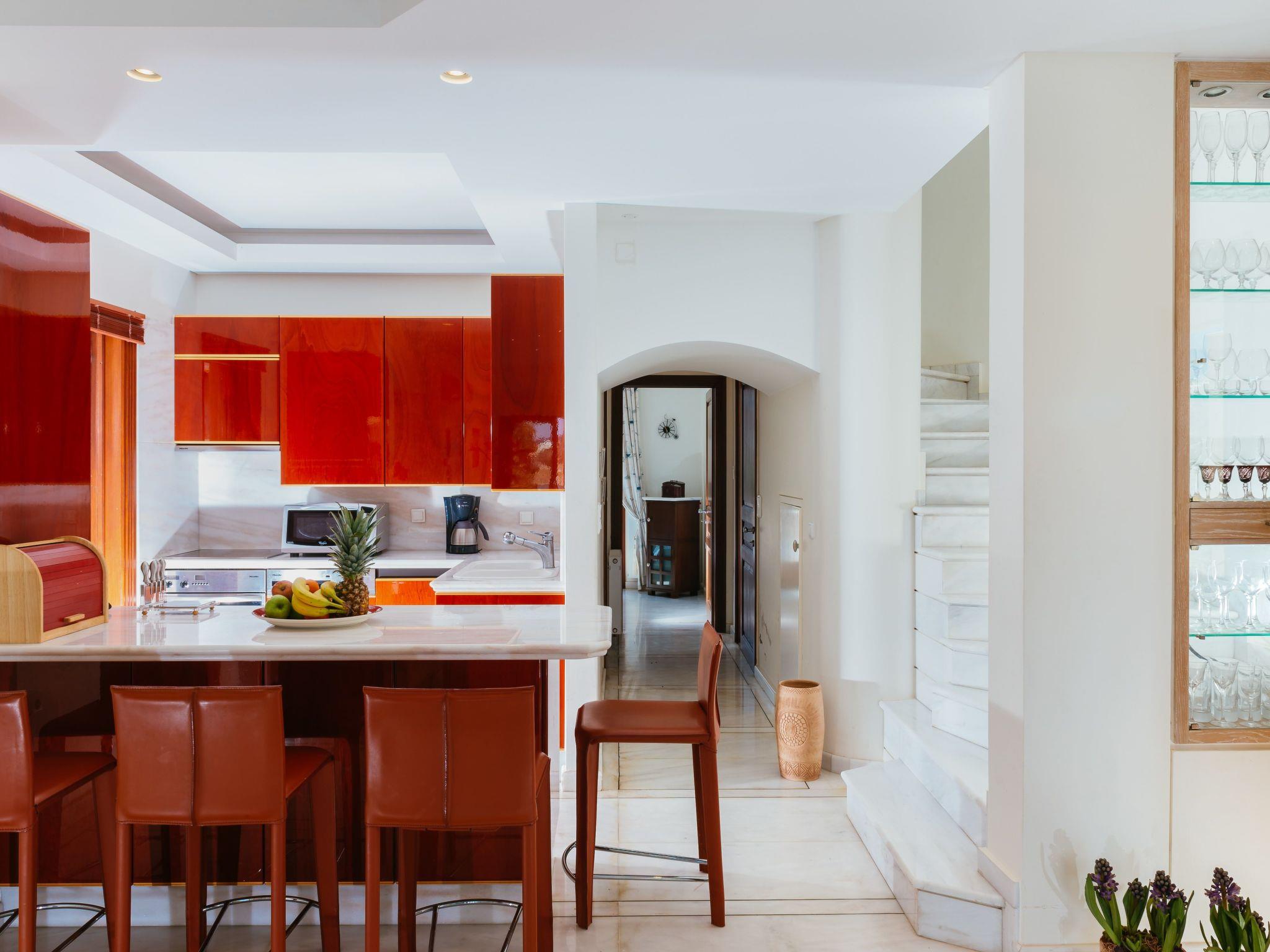 All the bedrooms have television, air-conditioning and wardrobes. The living room has also television and air-conditioning and the kitchen is fully equipped. In the storage room there is a washing machine.