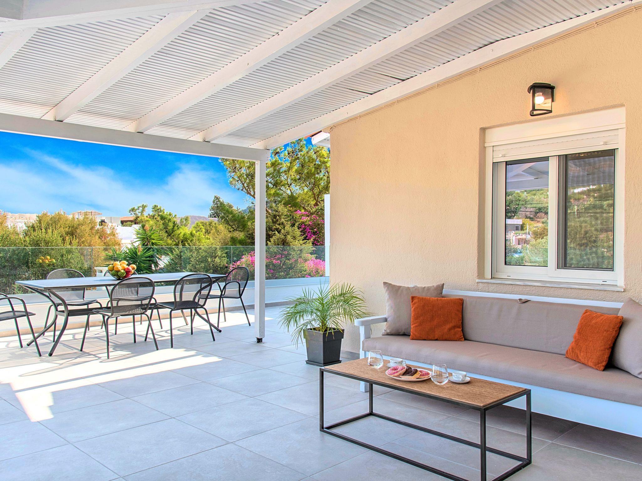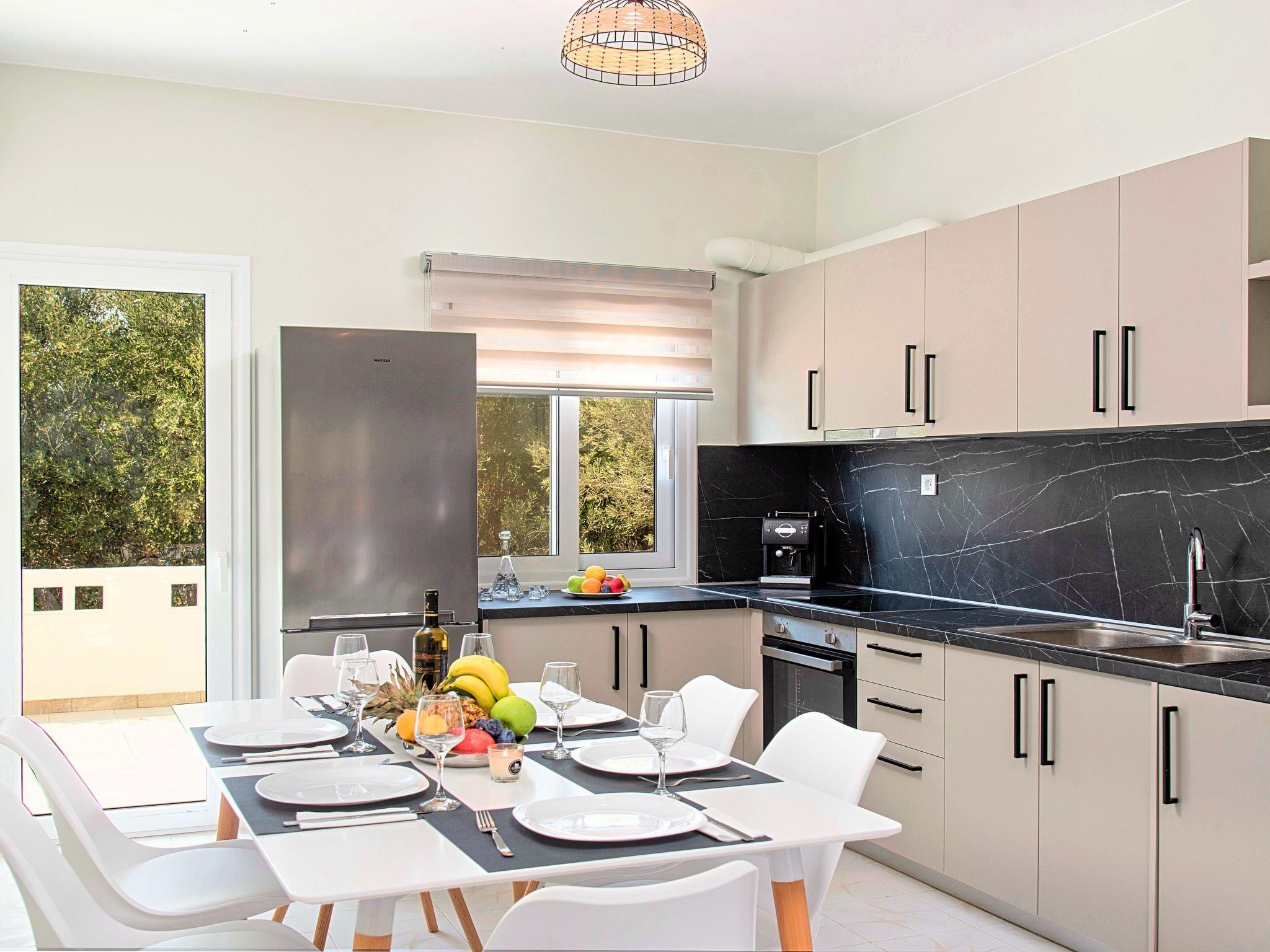 Etoile Villa consists by two apartments Ground Floor Apartment* A living room with two comfortable sofas (can accommodate up to two guests), dining area, large smart TV.* A fully equipped Kitchen with an oven, microwave dishwasher, a fridge, a coffee maker, tea facilities, a toaster and a kettle.* A bedroom with a double bed.* A bathroom with shower* A bedroom with two single beds pushed together.Upper floor apartment* A living room with two comfortable sofa beds (can accommodate up to two guests), sitting area, large smart TV.* An auxiliary Kitchen, with a fridge, a coffee maker, tea facilities, a toaster and a kettle.* A large bedroom with two single beds pushed together.* A bathroom with shower.* A large terrace with dining area.General Facilities* TV at the living rooms.* Air-conditioning in all areas.* Free WiFi internet access.* Outdoor dining set (table with chairs).* Washing/Dryer machine.* Iron and ironing board.* Safe deposit box.* Hair dryer.* Linen and towels.* Toiletries.* Swimming pool towels.* Baby cot.* High chair for children.* Towels and bed linen changed and cleaned every 3 or 4 days.* Private parking area.* Private Heated Swimming pool* Sun lounge area* BBQ corner (outdoor kitchen)