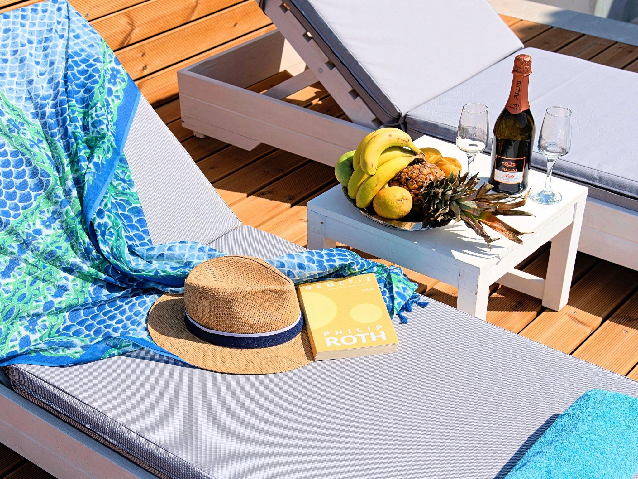 The outdoor pool is heated and can reach 6 to 8 degrees more that the 24 h average air temperature with maximum value of 29°C. Terrace with garden furniture and sunshade /own balcony, grill/barbecue