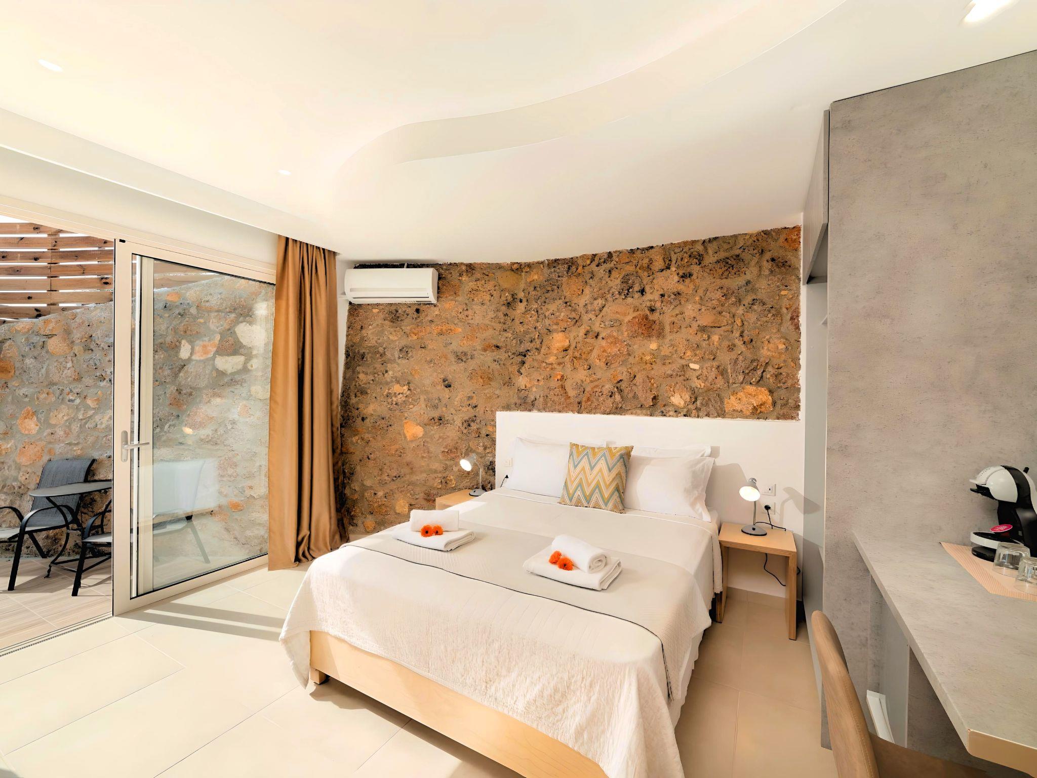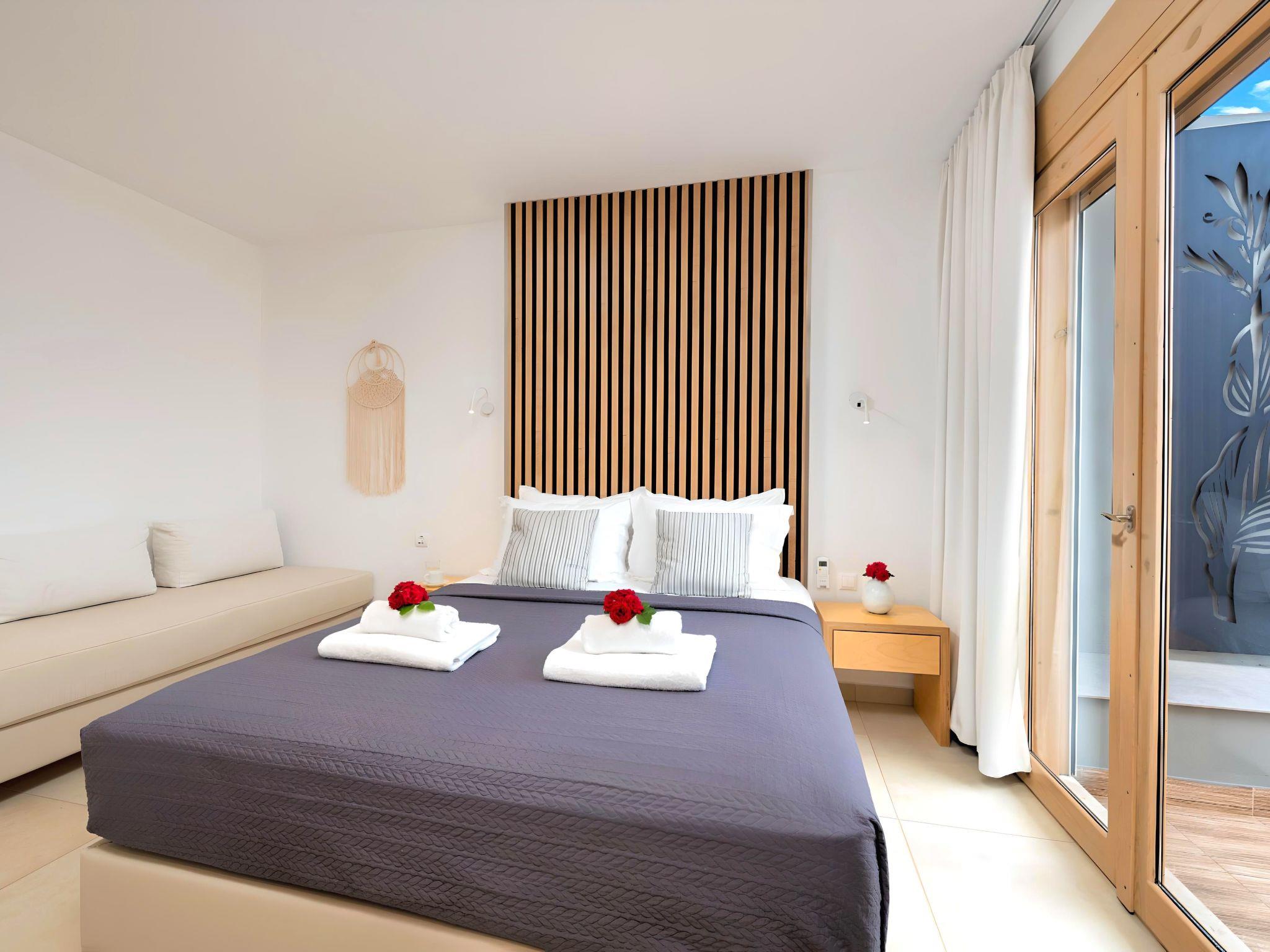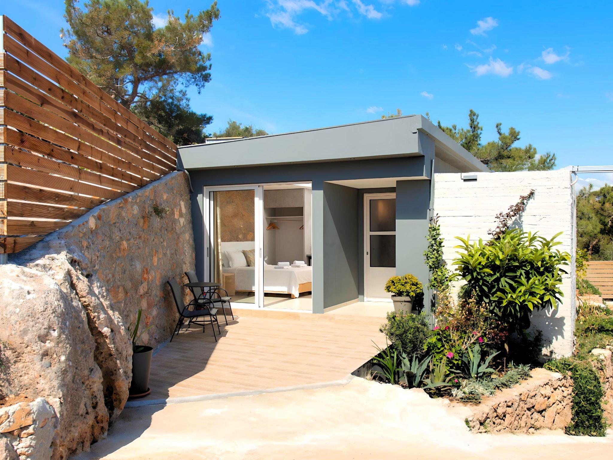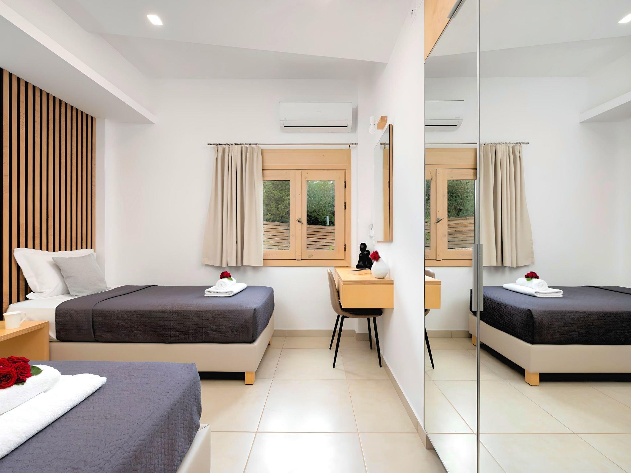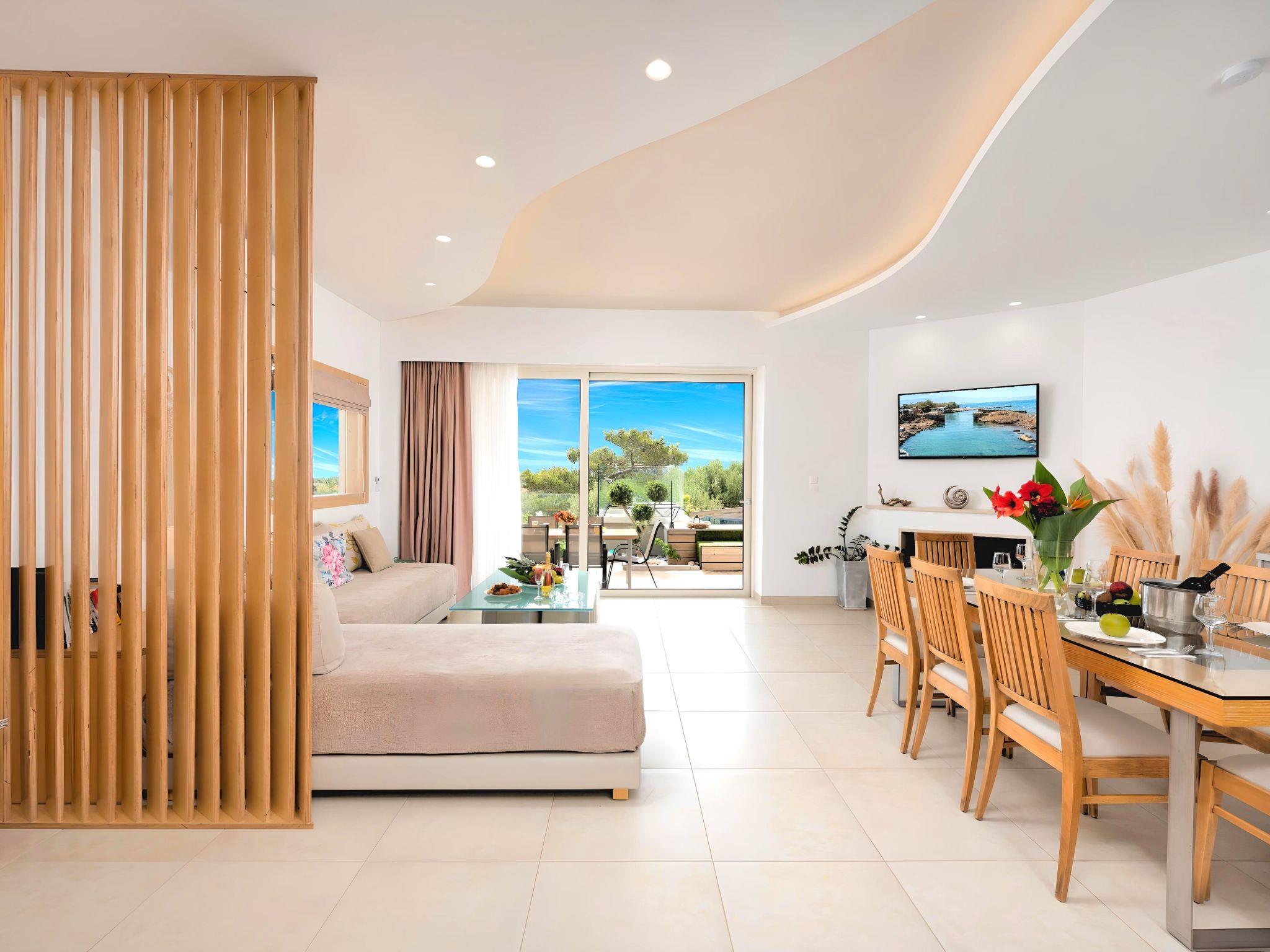 Simple and unadorned, Canes Villa architecture takes full advantage of Cretan Nature by incorporating a variety of decorative elements that make references to serenity and rest.The colour white dominates all spaces, a choice that further highlights the bright Cretan light and creates a sense of peacefulness, while the brown stone details blend harmoniously with the entire structure and capture the discreet nature of island architecture.Just 6,5km from Agios Nikolaos Town among green fields and olive groves, set in the north east part of Crete.Canes Villa is the ultimate refuge with wonderful Sea views and a private heated pool just few minutes’ drive from the most famous beaches of the area, Amoudara and Voulisma.Canes Villa can accommodate up to 13 guests (eleven guests at the villas bedrooms, plus two more guests at the sofa beds of the living room).The outdoor pool is heated and can reach 6 to 8 degrees more that the 24 h average air temperature with maximum value of 29°