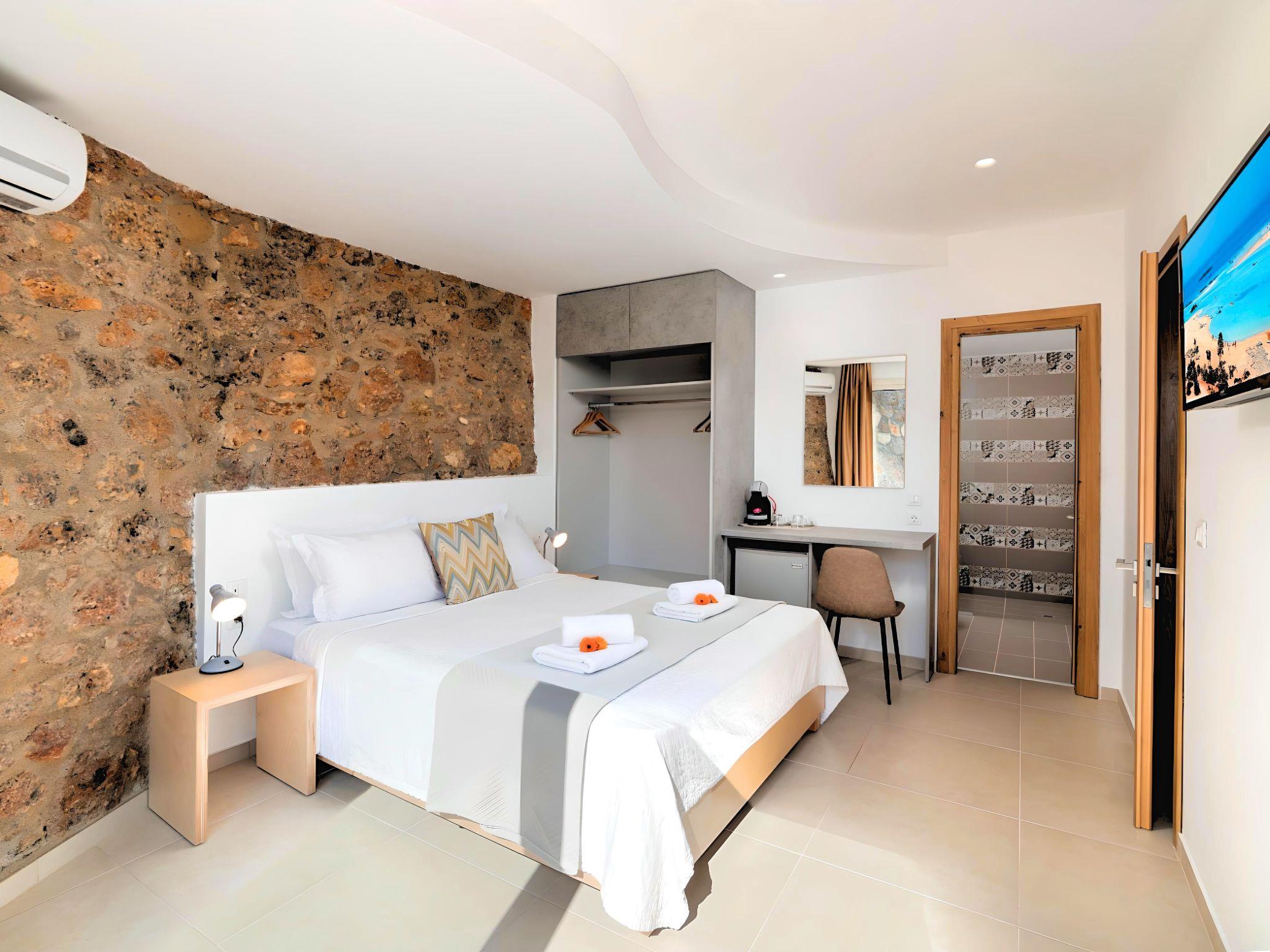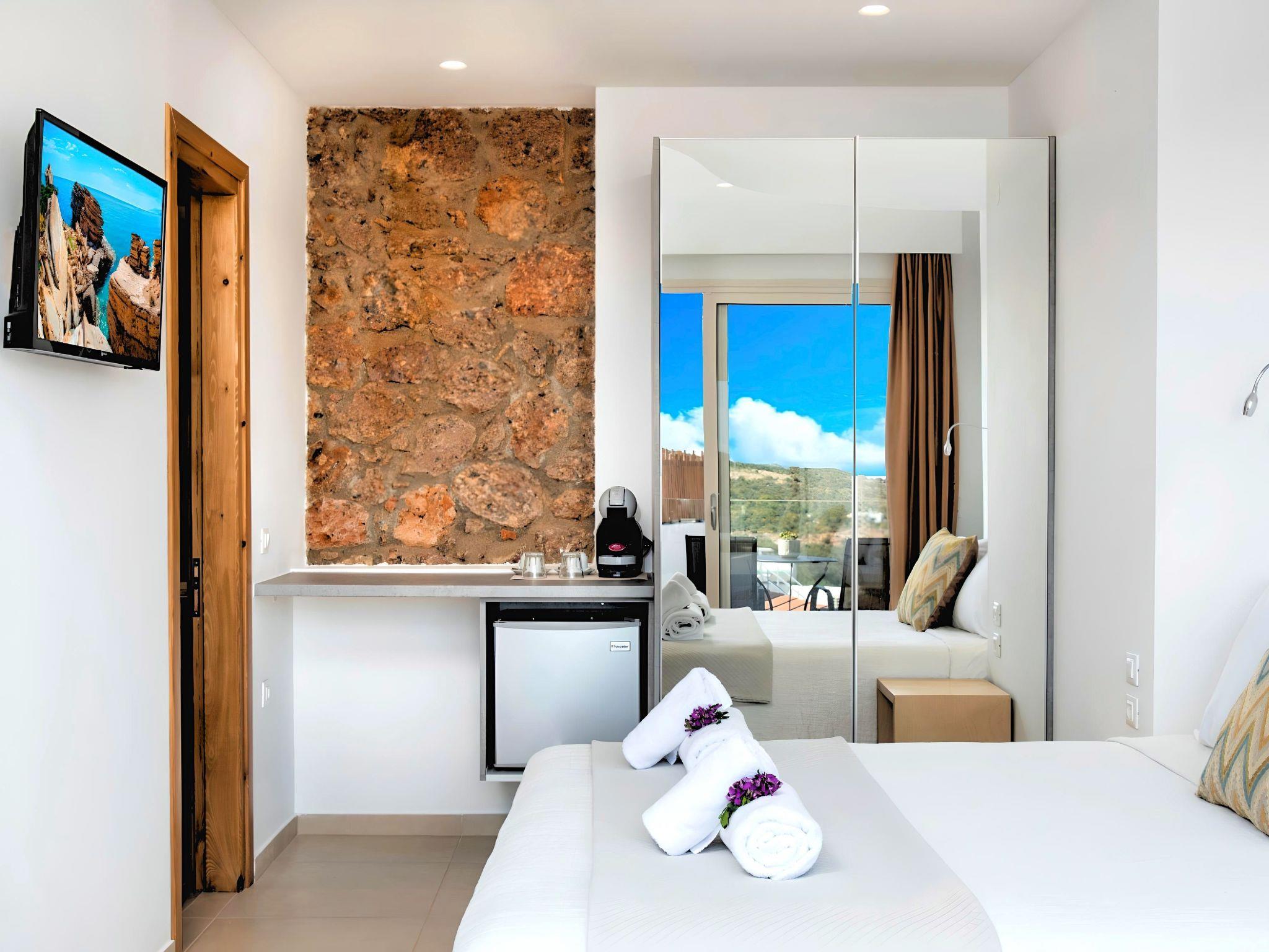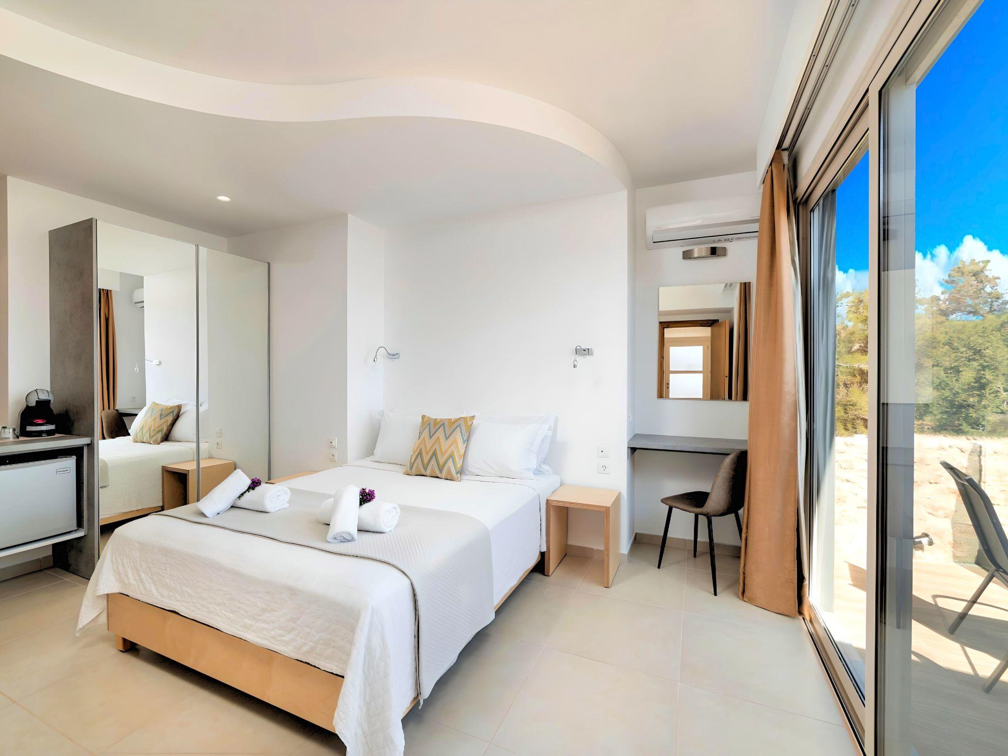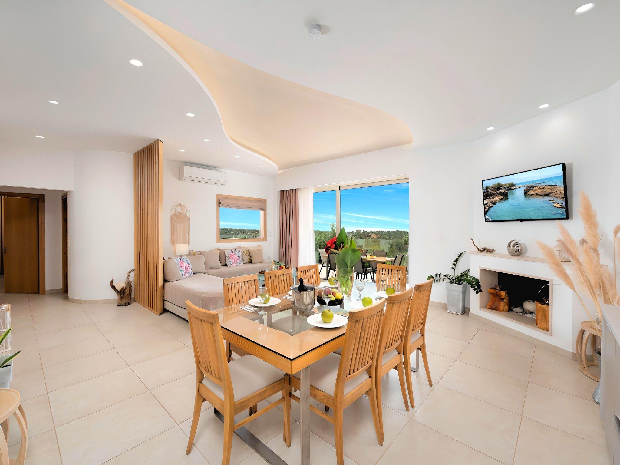 Simple and unadorned, Canes Villa architecture takes full advantage of Cretan Nature by incorporating a variety of decorative elements that make references to serenity and rest.The colour white dominates all spaces, a choice that further highlights the bright Cretan light and creates a sense of peacefulness, while the brown stone details blend harmoniously with the entire structure and capture the discreet nature of island architecture.Just 6,5km from Agios Nikolaos Town among green fields and olive groves, set in the north east part of Crete.Canes Villa is the ultimate refuge with wonderful Sea views and a private heated pool just few minutes’ drive from the most famous beaches of the area, Amoudara and Voulisma.Canes Villa can accommodate up to 13 guests (eleven guests at the villas bedrooms, plus two more guests at the sofa beds of the living room).The outdoor pool is heated and can reach 6 to 8 degrees more that the 24 h average air temperature with maximum value of 29°