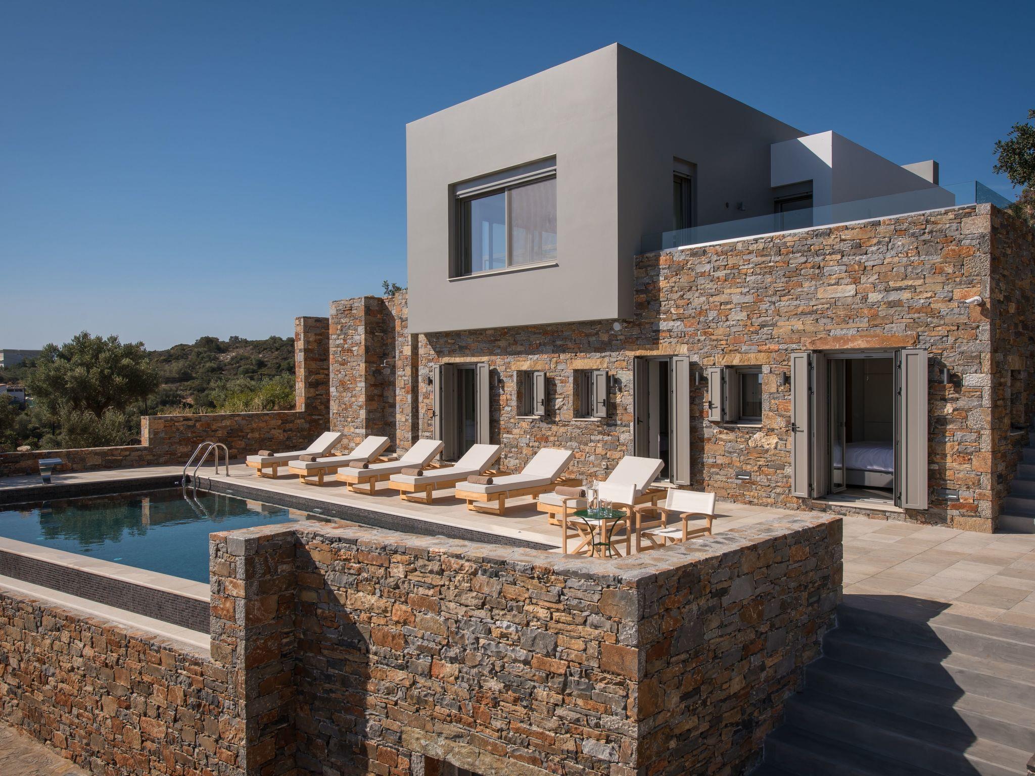 This exclusive and elegant holiday villa is situated-between the town of Aghios Nikolaos and the village of Elounda on the sunny Greek island of Crete. It is only approximately 200 m away from the blue flag awarded Havania beach in the Mirabello Gulf. The villa offers extraordinary views across the bay.