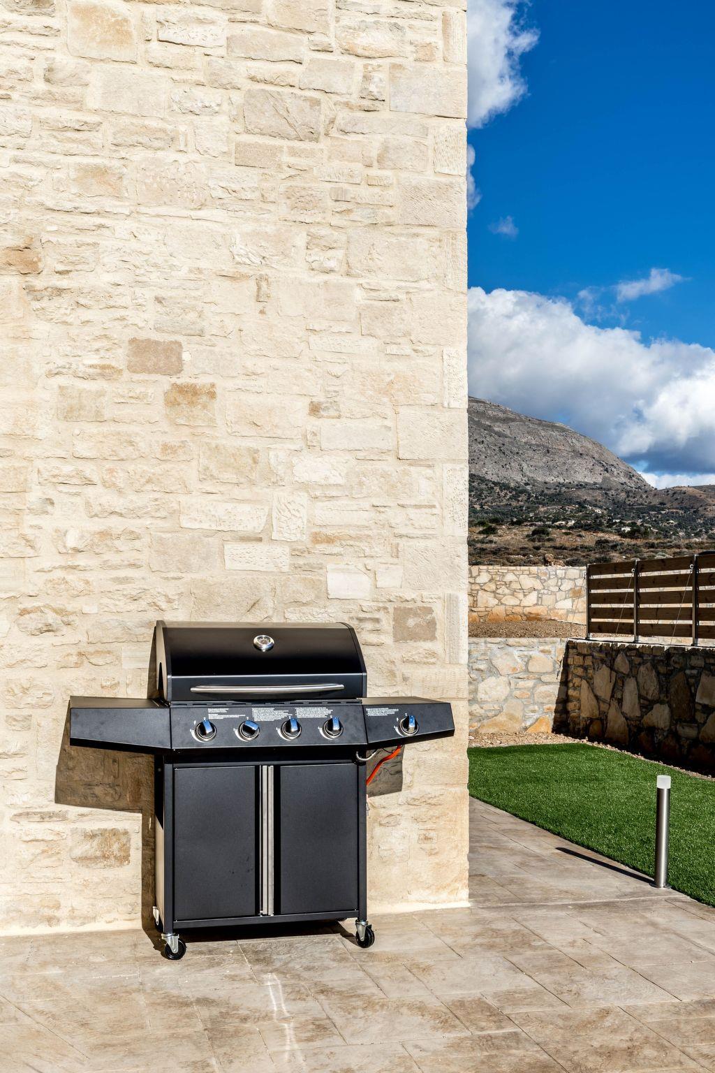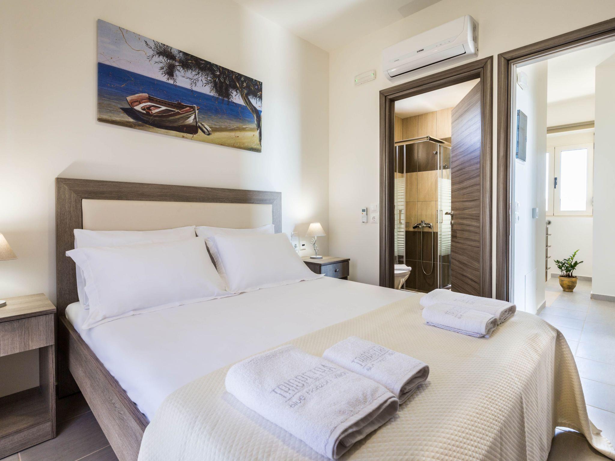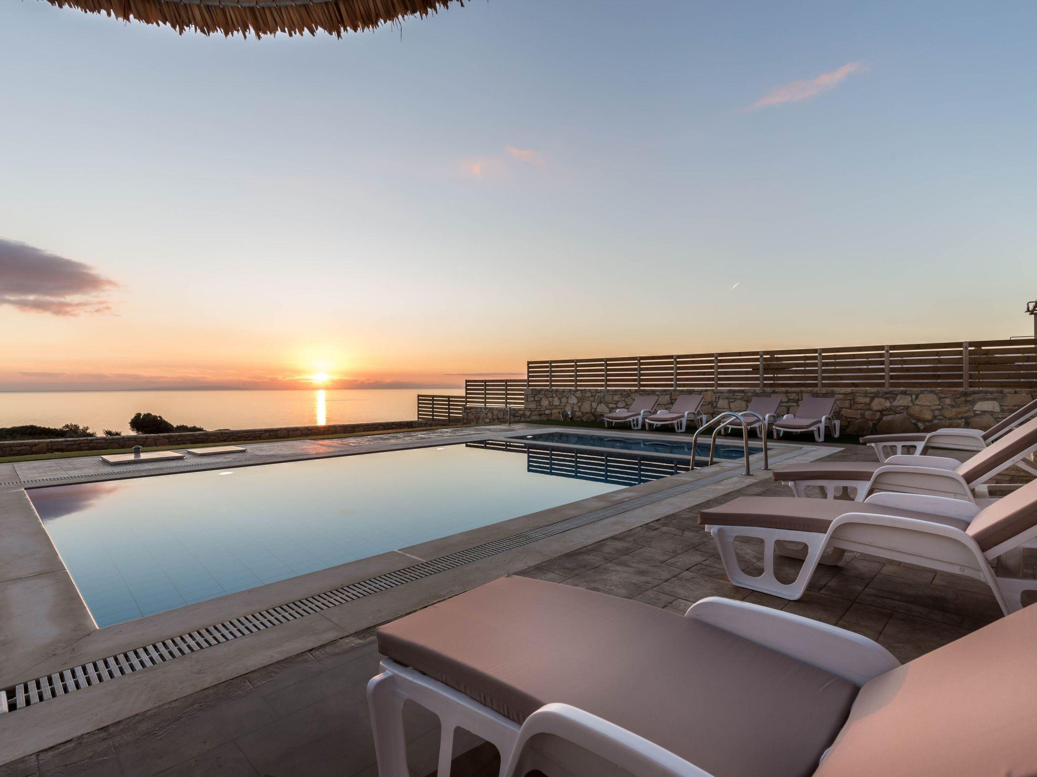 The villa is at the heart of this complex. It is a two-story house with an internal staircase (maisonette), offering unforgettable accommodation for 8 people. On the ground floor is a bedroom with twin beds, and a fully equipped kitchen with a dining area, living room, and WC. The double glazed door gives access to the veranda and swimming pool area. On the 1st level, two comfortable bedrooms with a double bed, WC, and verandas with endless views. The rooms are fully furnished and decorated with exceptional and stylish designs with an emphasis on luxury and functionality. Amenities such as fast VDSL WI-FI internet, air conditioning, heating, and full HD Satellite smart TV will make your accommodation feel more like home. Every bedroom has a double bed and two bedside tables, a dressing table, and wardrobes. The kitchenware is fully equipped with all modern appliances such as a coffee maker (Nespresso machine is also included), kettle, toaster, juicer, mini chopper, mixer, dishwasher, refrigerator with freezer, washer/dryer and oven with ceramic hob. The large dining tables with comfortable chairs are perfect for a family or convivial dinner. The stylish living area offers a lounge, dining area, fireplace, TV, micro stereo system, WI-FI internet access, and telephone. There is also a corner sofa bed and coffee table. Steamers, vacuum cleaners, and strollers are also available. In all bathrooms, there is a feel-good shower with a glass cabin, a hair dryer, a full set of toiletries, and storage spaces to store away your belongings. Stone-built Villa Triopetra BlueHorizon Lefkopetra with adults & kids private pool, close to all the famous beaches in South Rethymnon