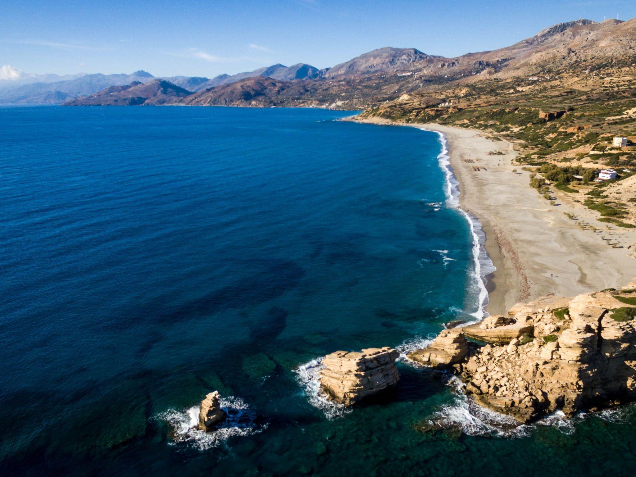 Nearby the villas there are 7 traditional taverns, which offer the experience of local, fresh and tasteful food (meat & fish). In Akoumia village, 10 km away from Villas, are several cafes, shop for fruit and vegetables, butchery and a mini market, where you can fill up the fridge with your favourite food, beverages and items of first need. Also, There is a hospital and pharmacy in Spili village, 18 km away from Villas.Take advantage of the ideal location and discover the beauties that our Island has to offer you, amazing beaches, stunning landscapes, countless choices to try all the Cretan traditional dishes! Triopetra beach is located about 47km south of Rethymno (45 minutes by car) and 12km southeast of the village of Akoumia, at the foot of the mountain Siderotas. It is very accessible by car though the paved road, which starts from Akoumia village. Triopetra consists of two beaches, which are separated by a small peninsula. At the edge of peninsula, three majestic rocks rise.