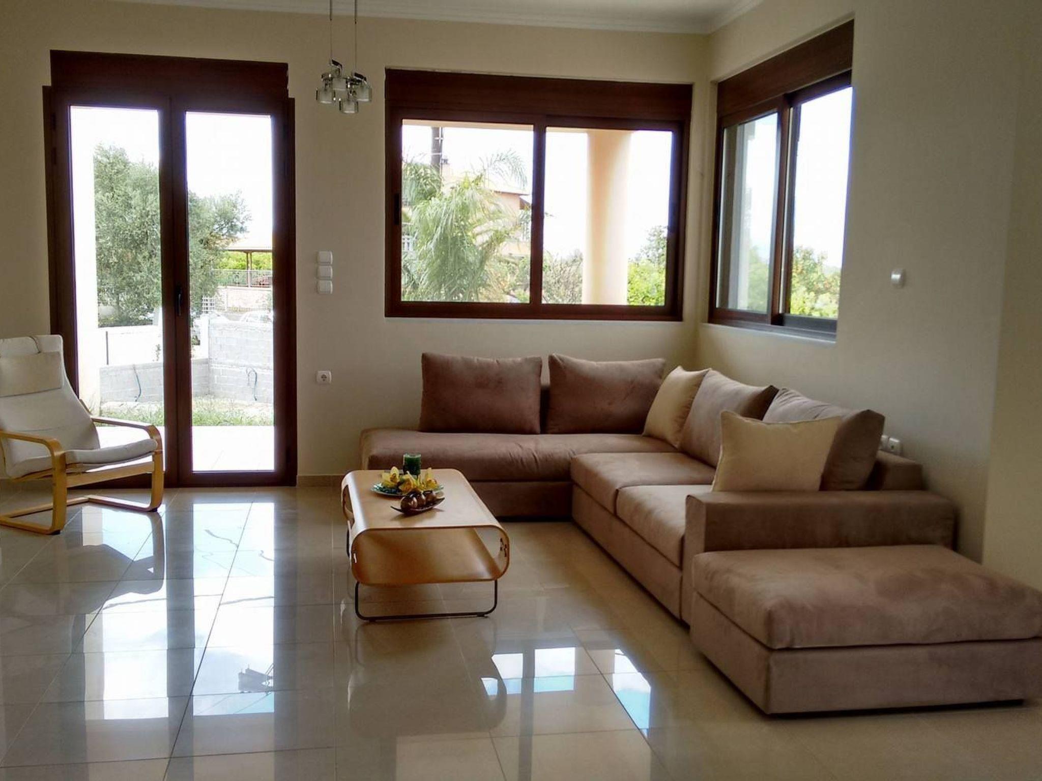 Venturing outside, the villa’s location is a gateway to discovery and adventure. Sitting only 1km away from the beach and sea, and equally close to water sports opportunities, it offers the perfect balance between relaxation and fun. Moreover, being just 2km away from the nearest town center, it places you conveniently close to local amenities and dining options. Its central location is ideal for those looking to explore significant archaeological sites, making it effortless to plan day trips to Olympia, Kalavrita, Delphi, Corinth, Mycaene, and Epidaurus.