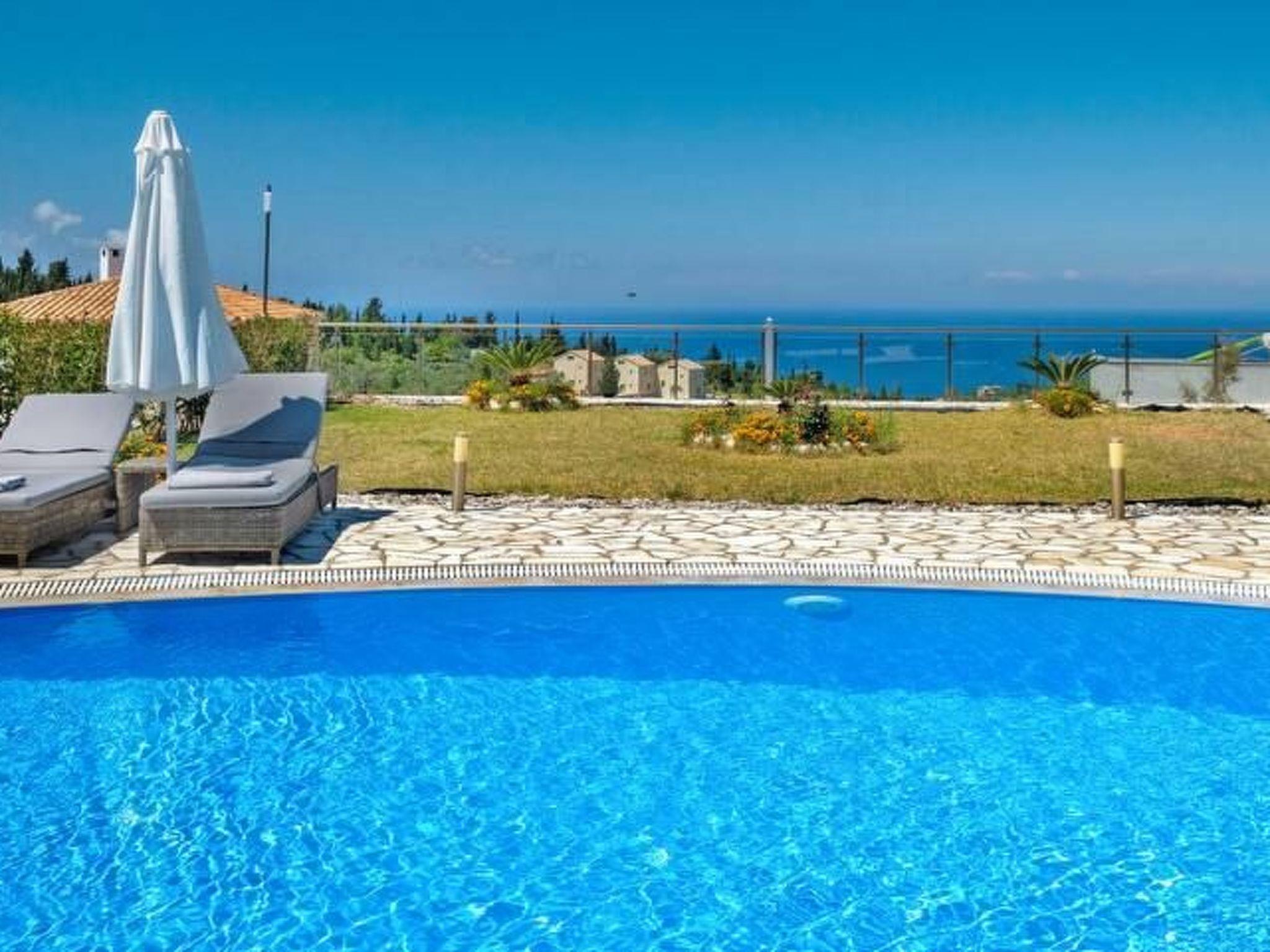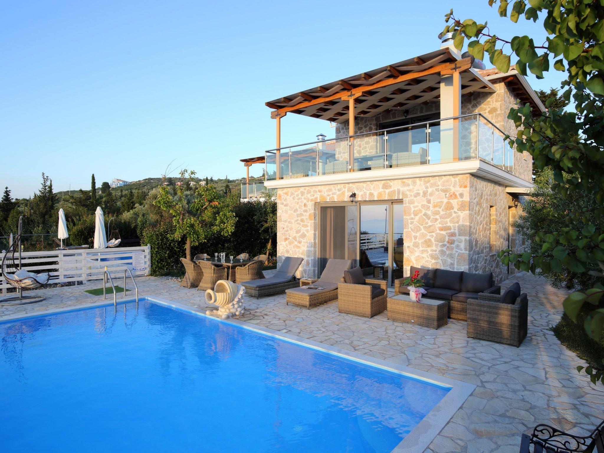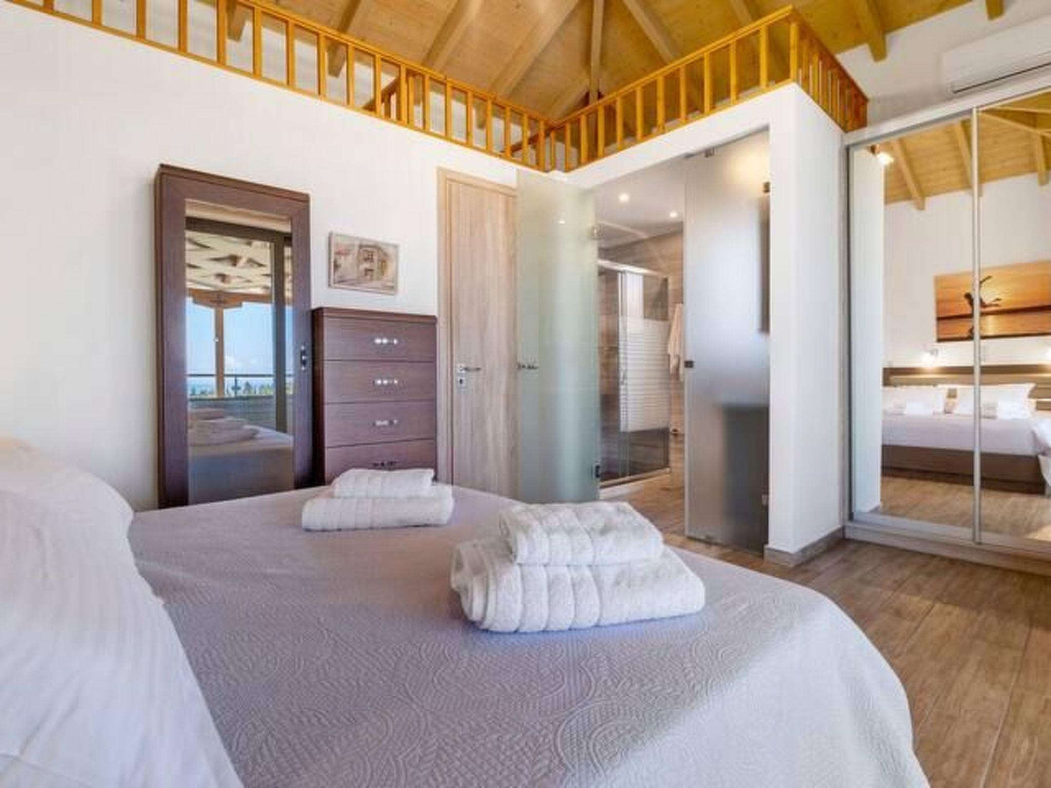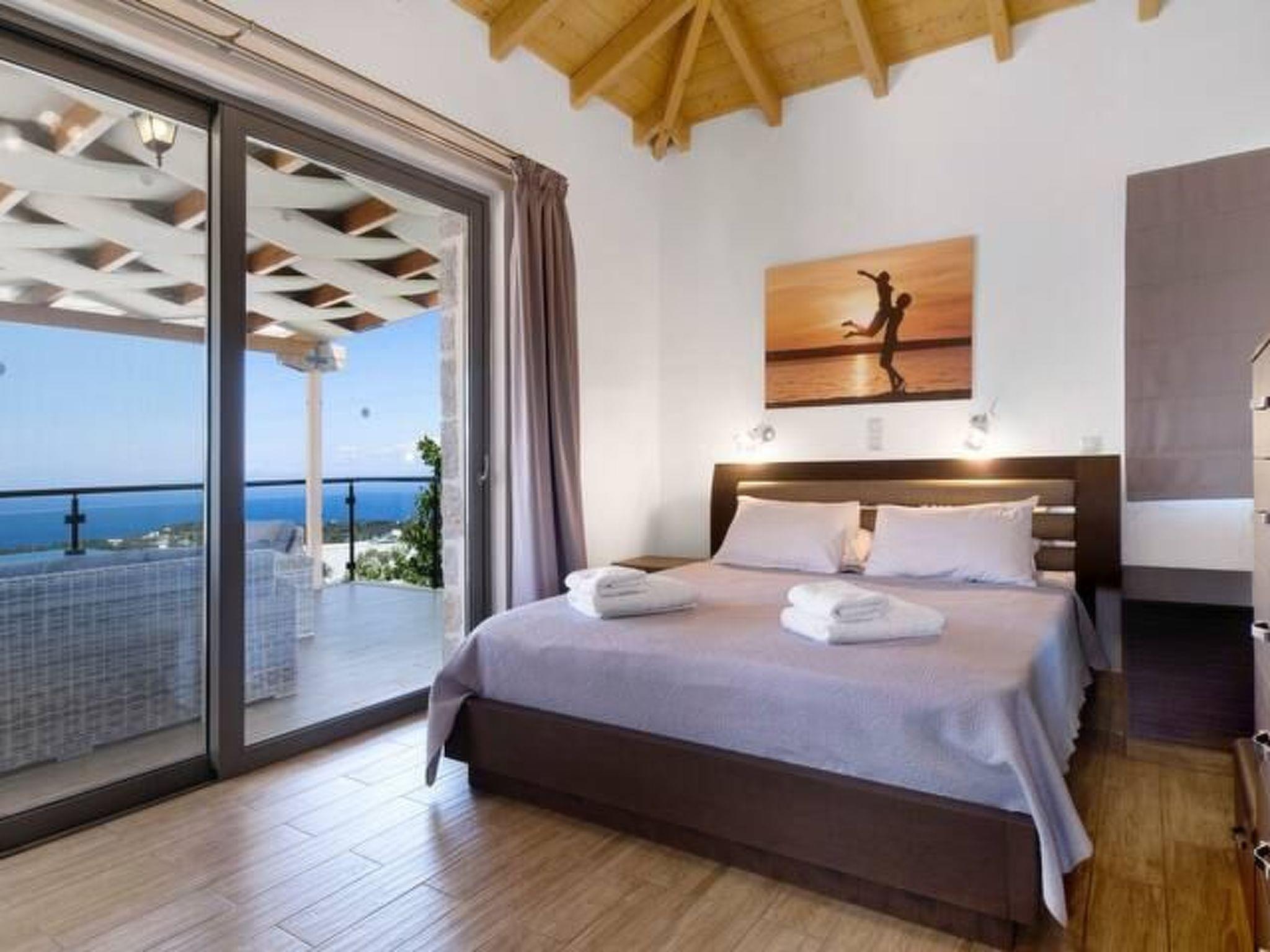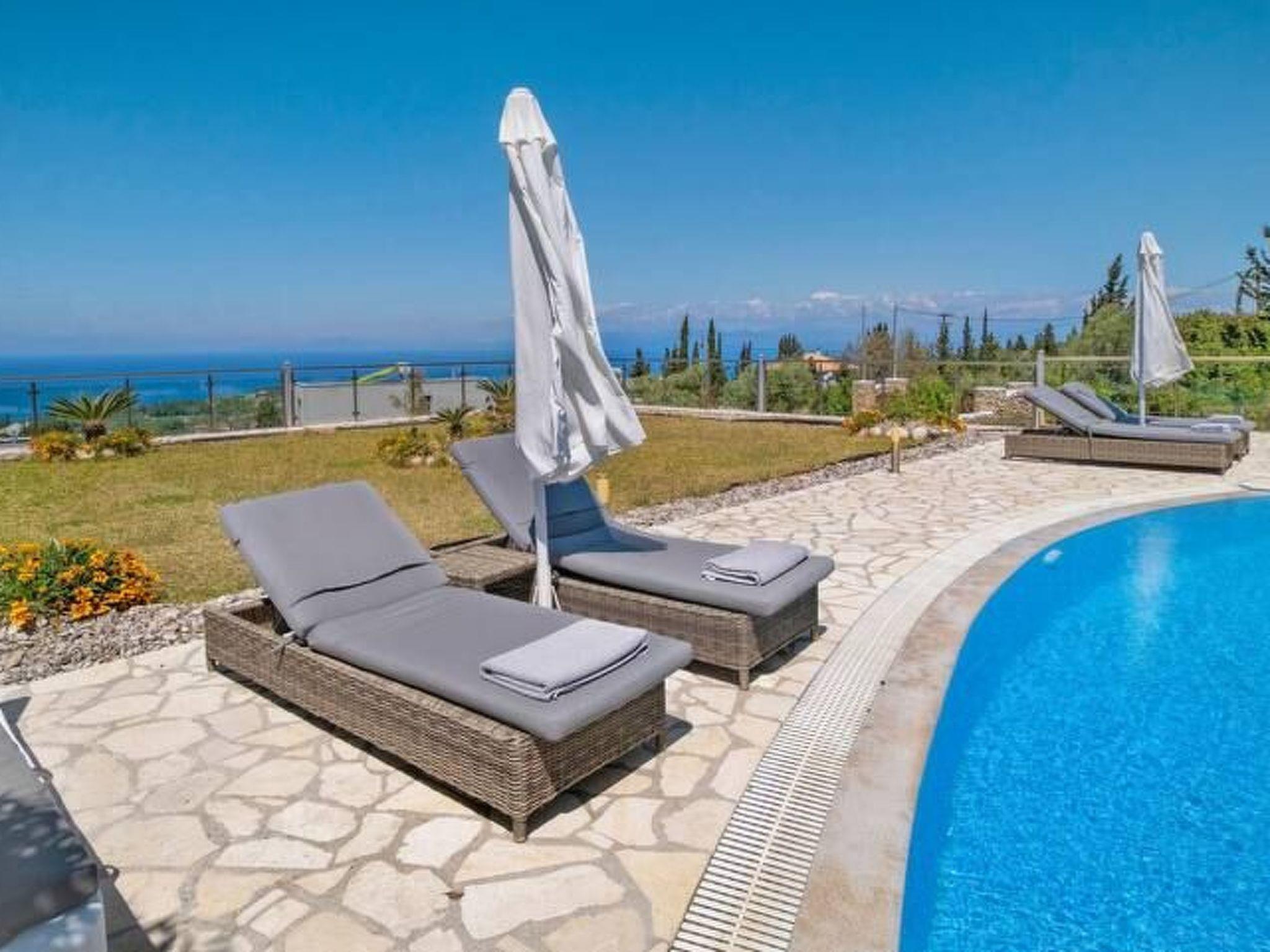 ??? First floor: A spacious master bedroom with a double bed and private bathroom featuring a hydromassage shower. The bedroom opens onto a large terrace with panoramic views of the Ionian Sea — the perfect spot to relax and enjoy the sunset.