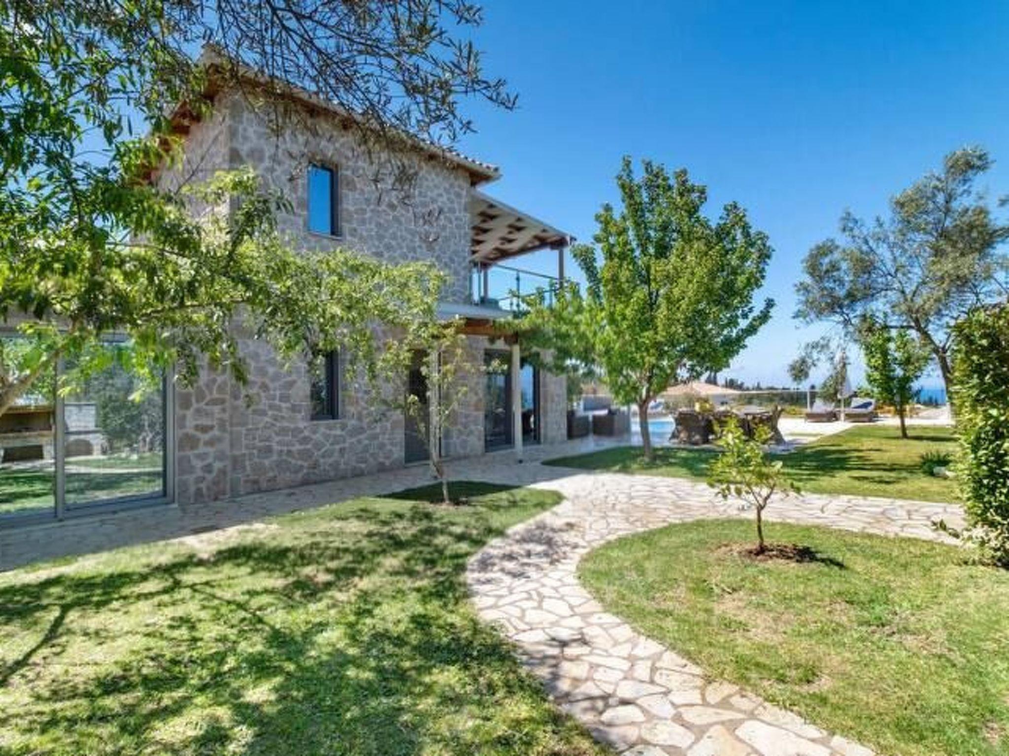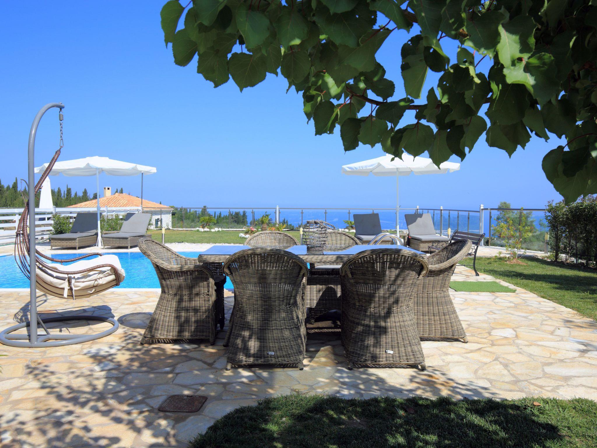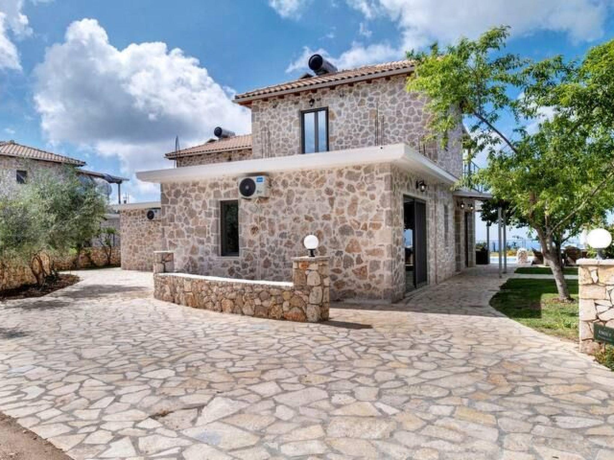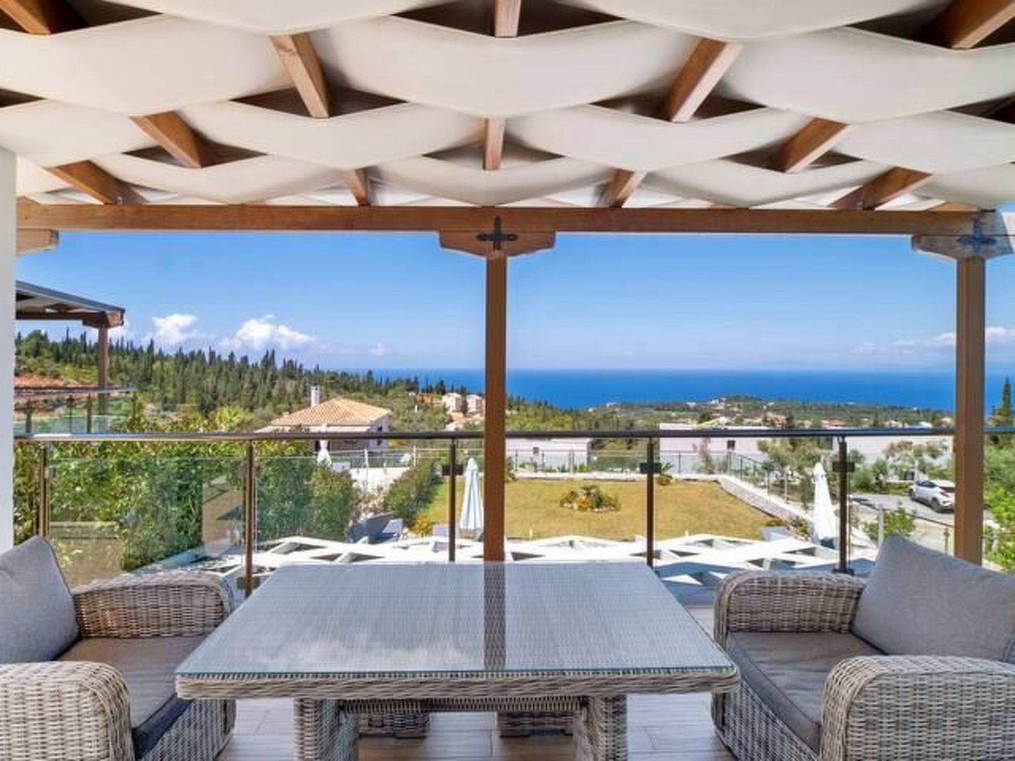 ??? First floor: A spacious master bedroom with a double bed and private bathroom featuring a hydromassage shower. The bedroom opens onto a large terrace with panoramic views of the Ionian Sea — the perfect spot to relax and enjoy the sunset.