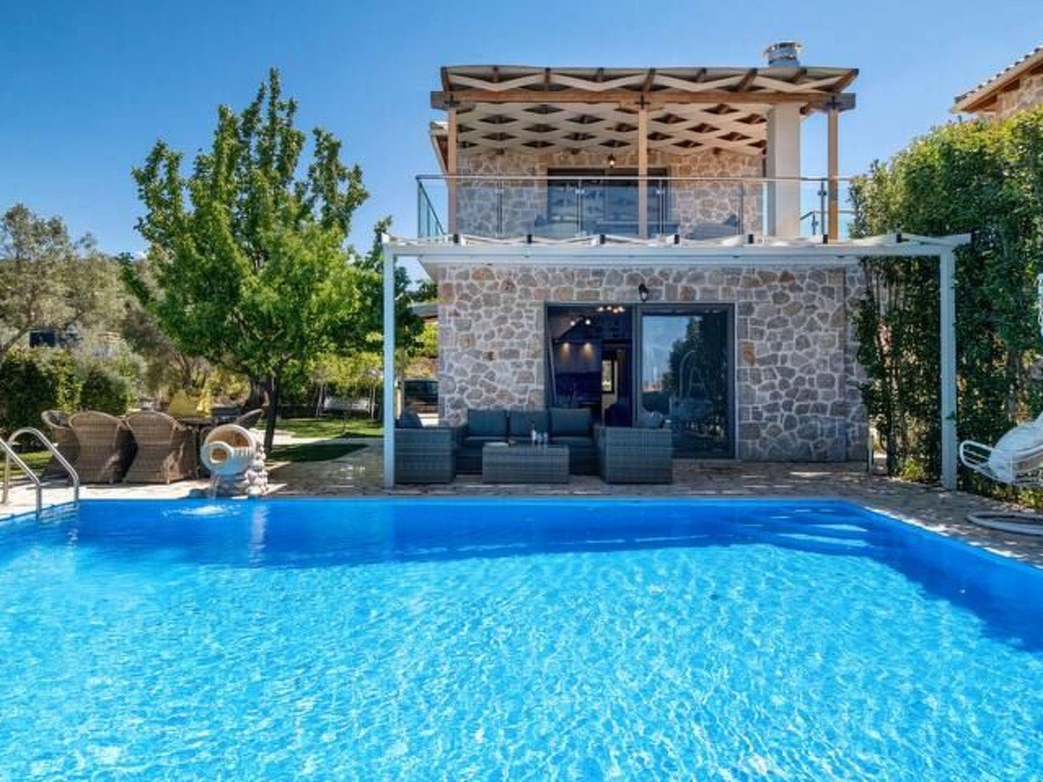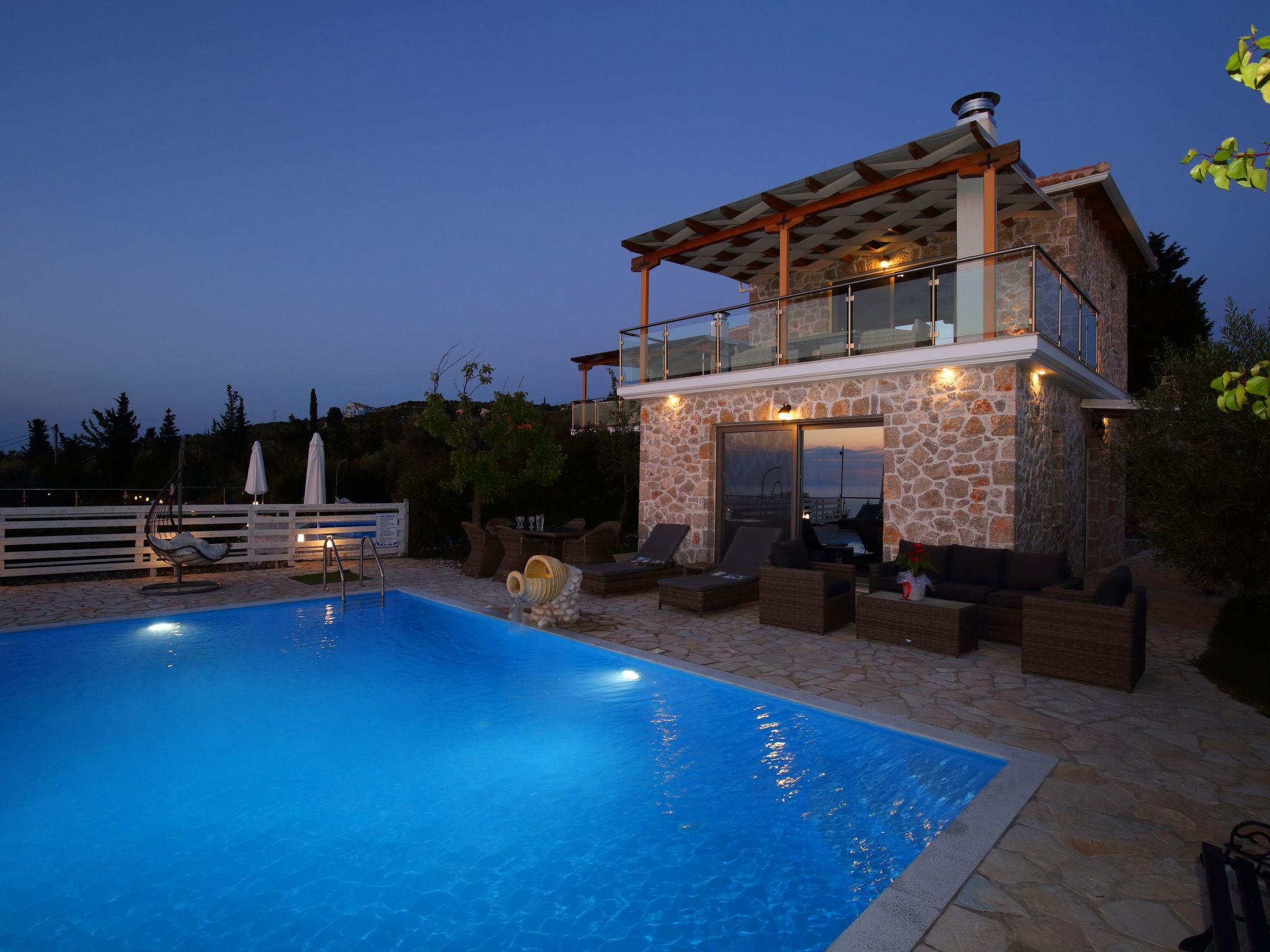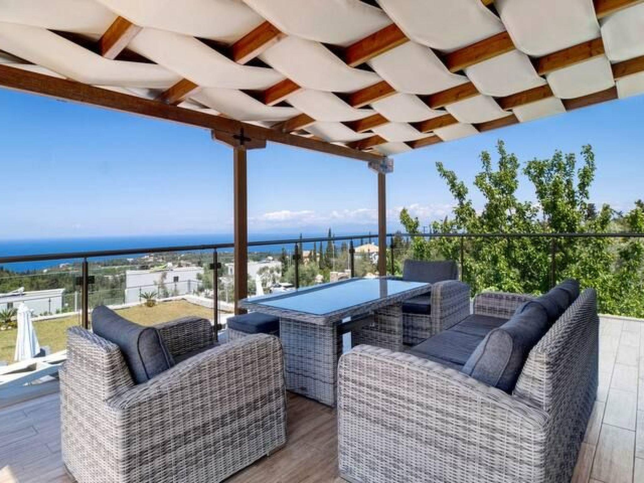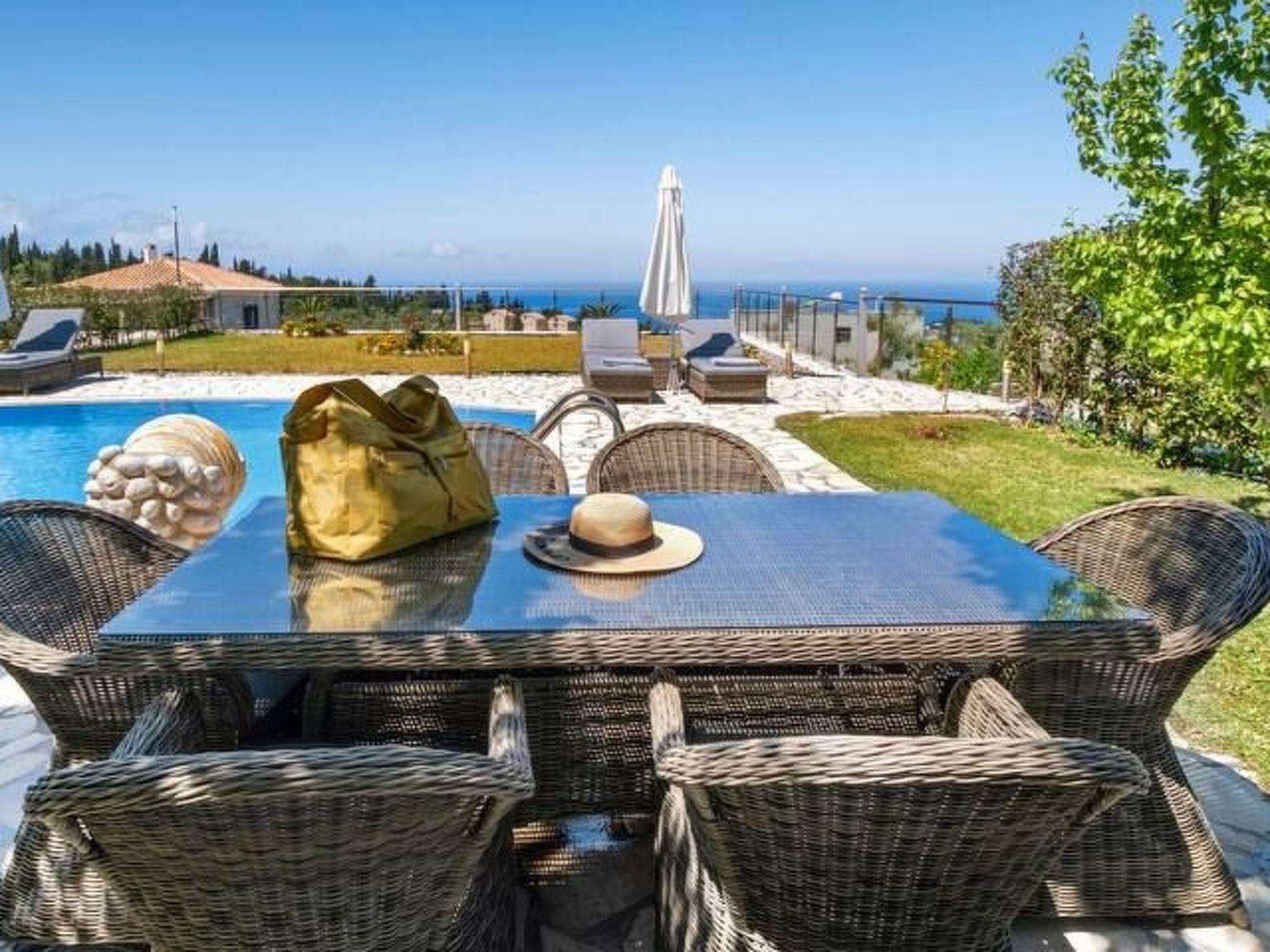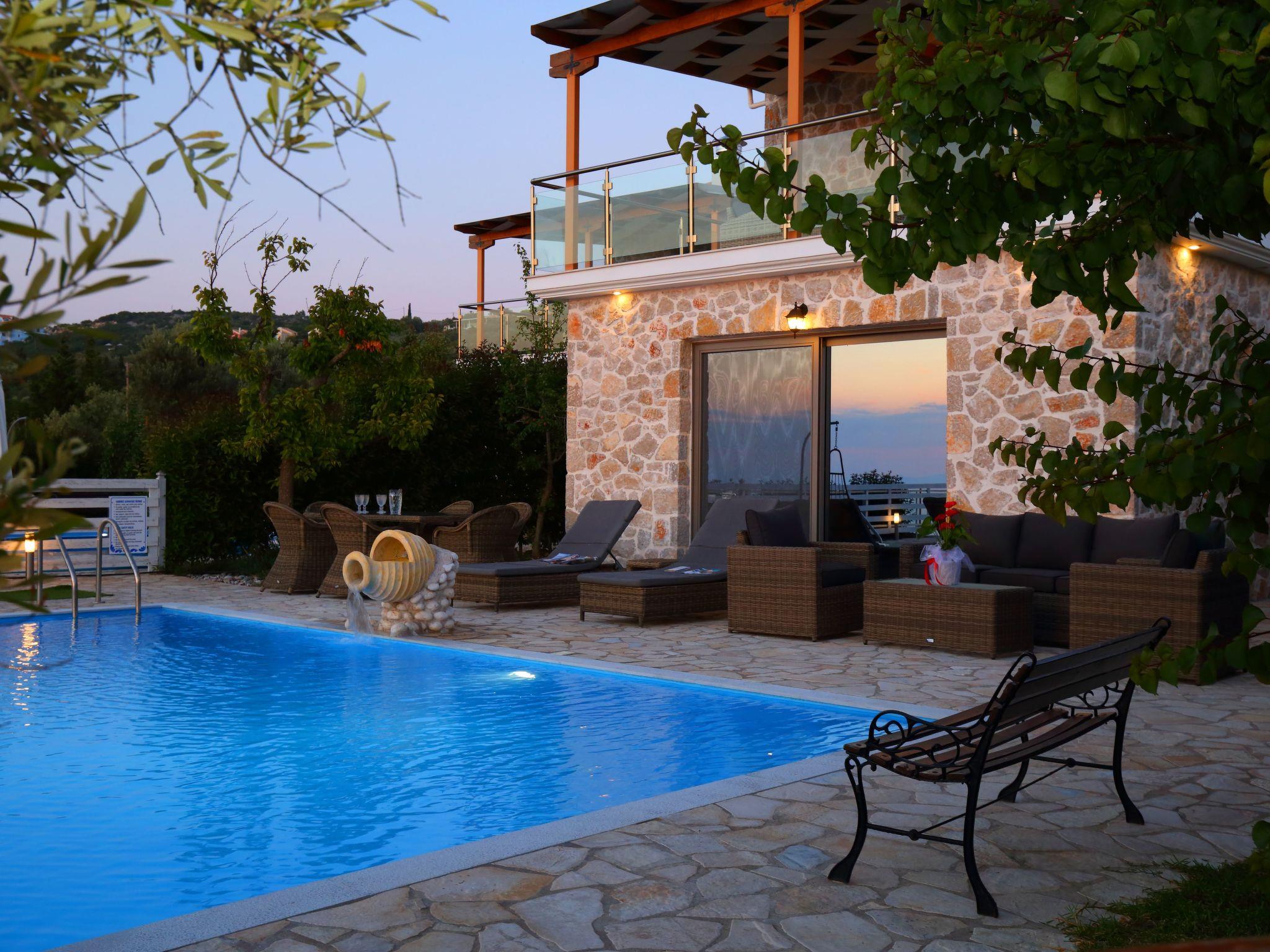 ??? First floor: A spacious master bedroom with a double bed and private bathroom featuring a hydromassage shower. The bedroom opens onto a large terrace with panoramic views of the Ionian Sea — the perfect spot to relax and enjoy the sunset.