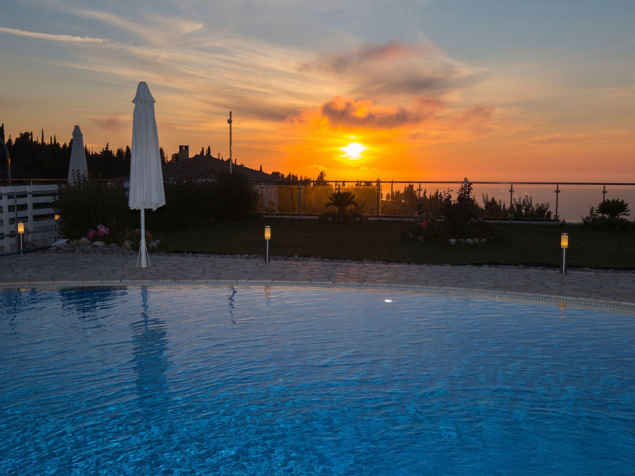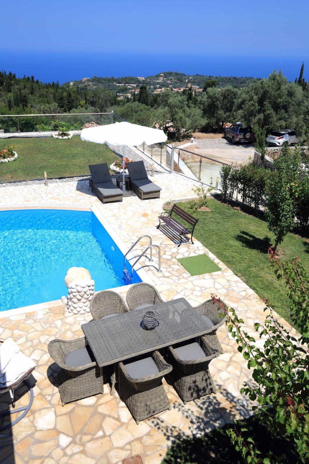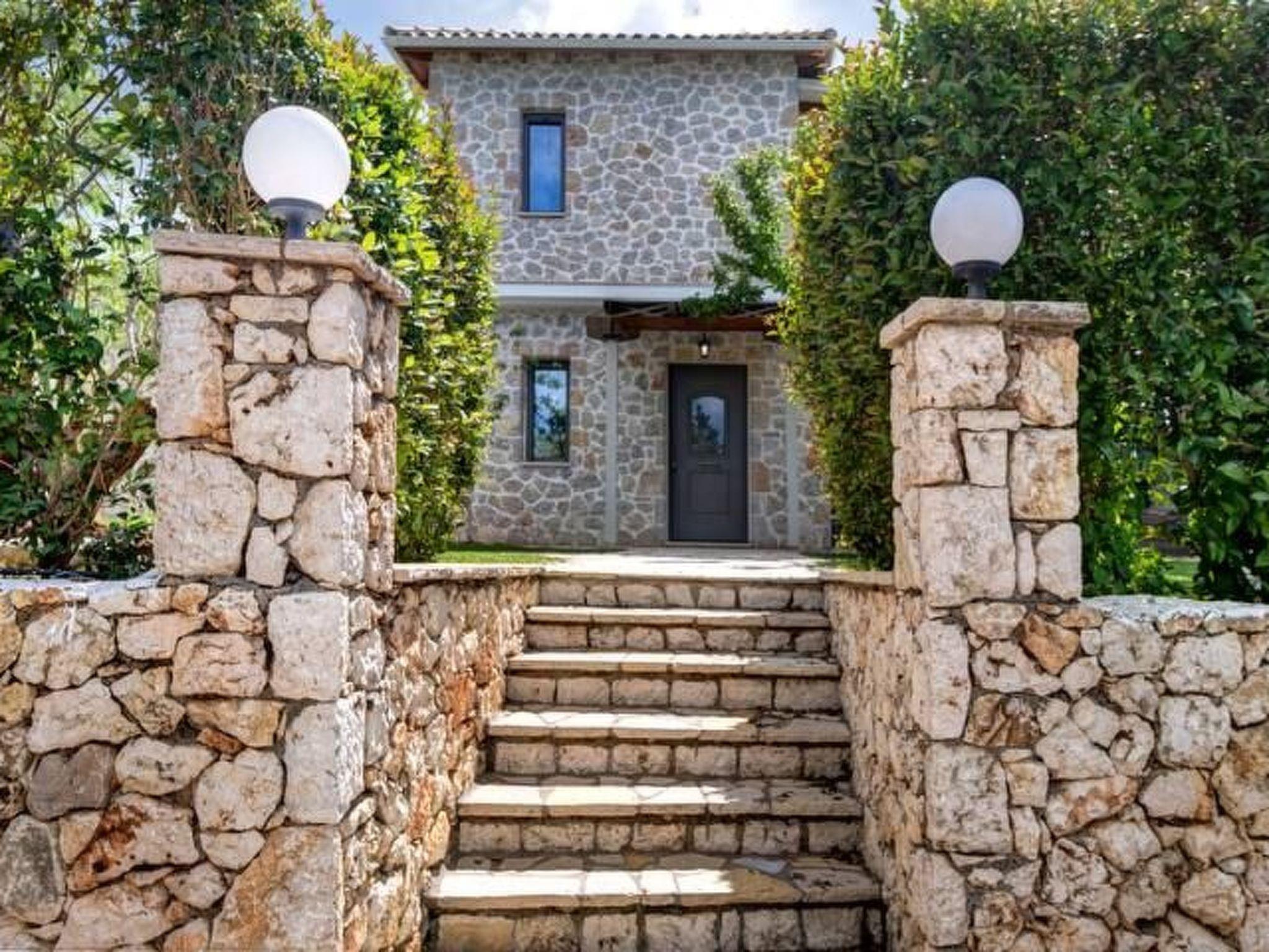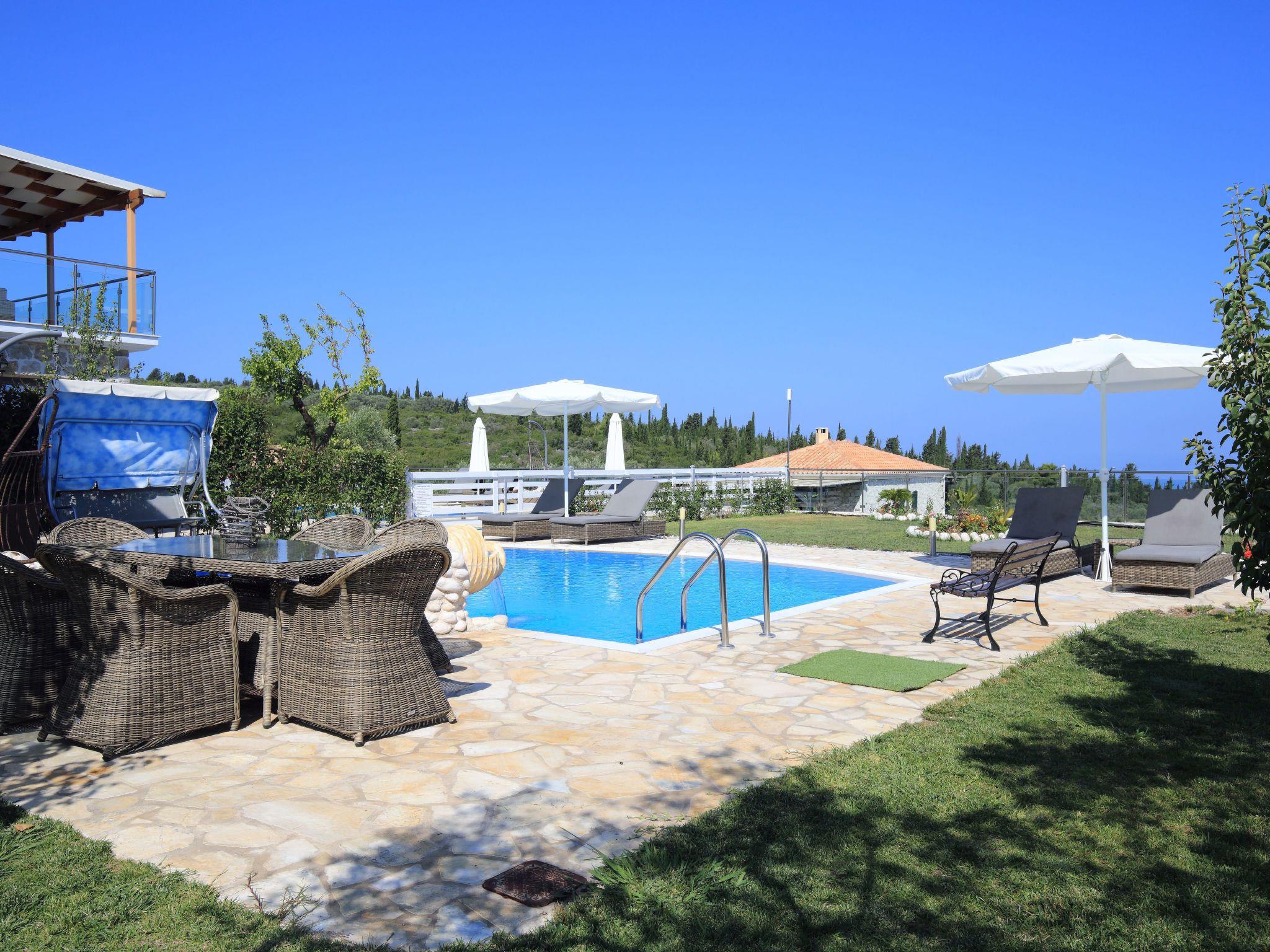 ??? First floor: A spacious master bedroom with a double bed and private bathroom featuring a hydromassage shower. The bedroom opens onto a large terrace with panoramic views of the Ionian Sea — the perfect spot to relax and enjoy the sunset.