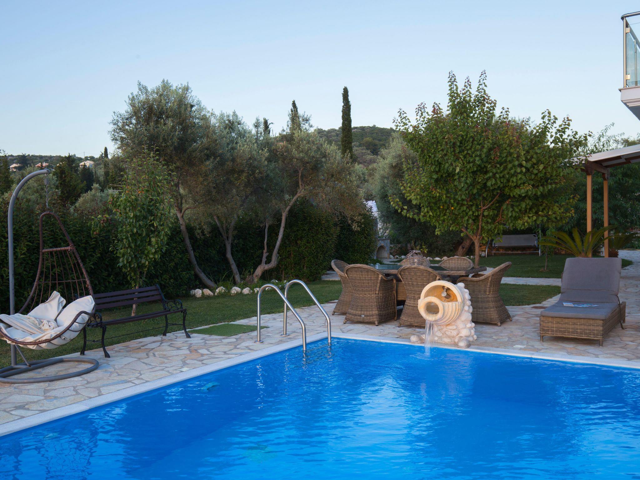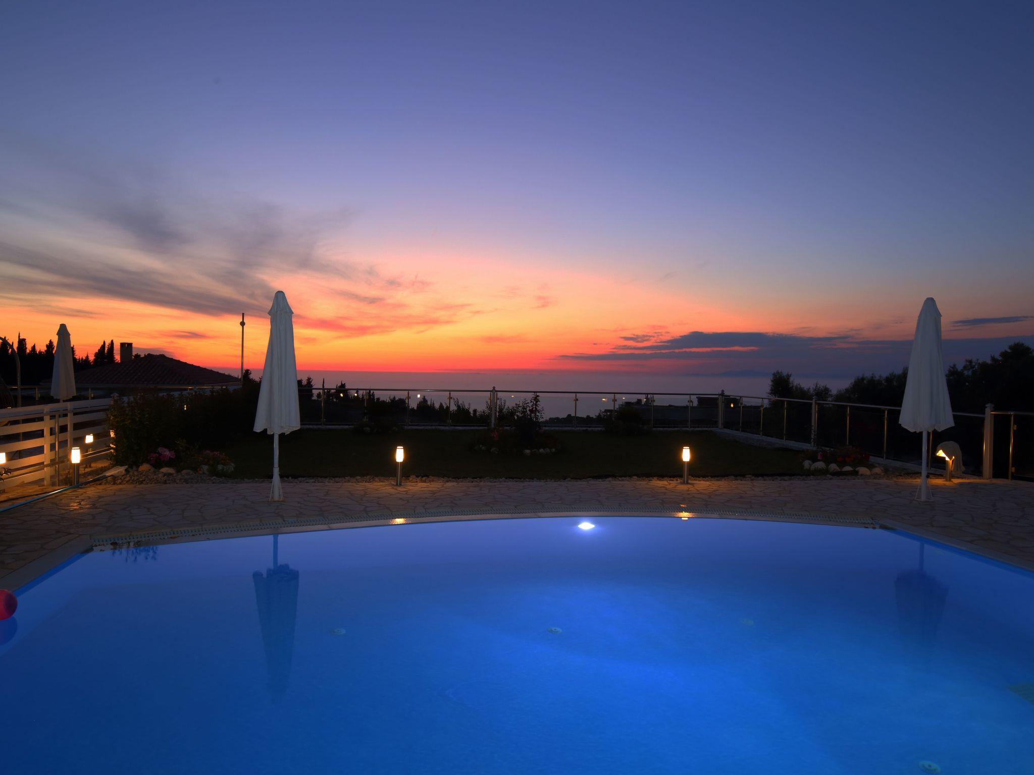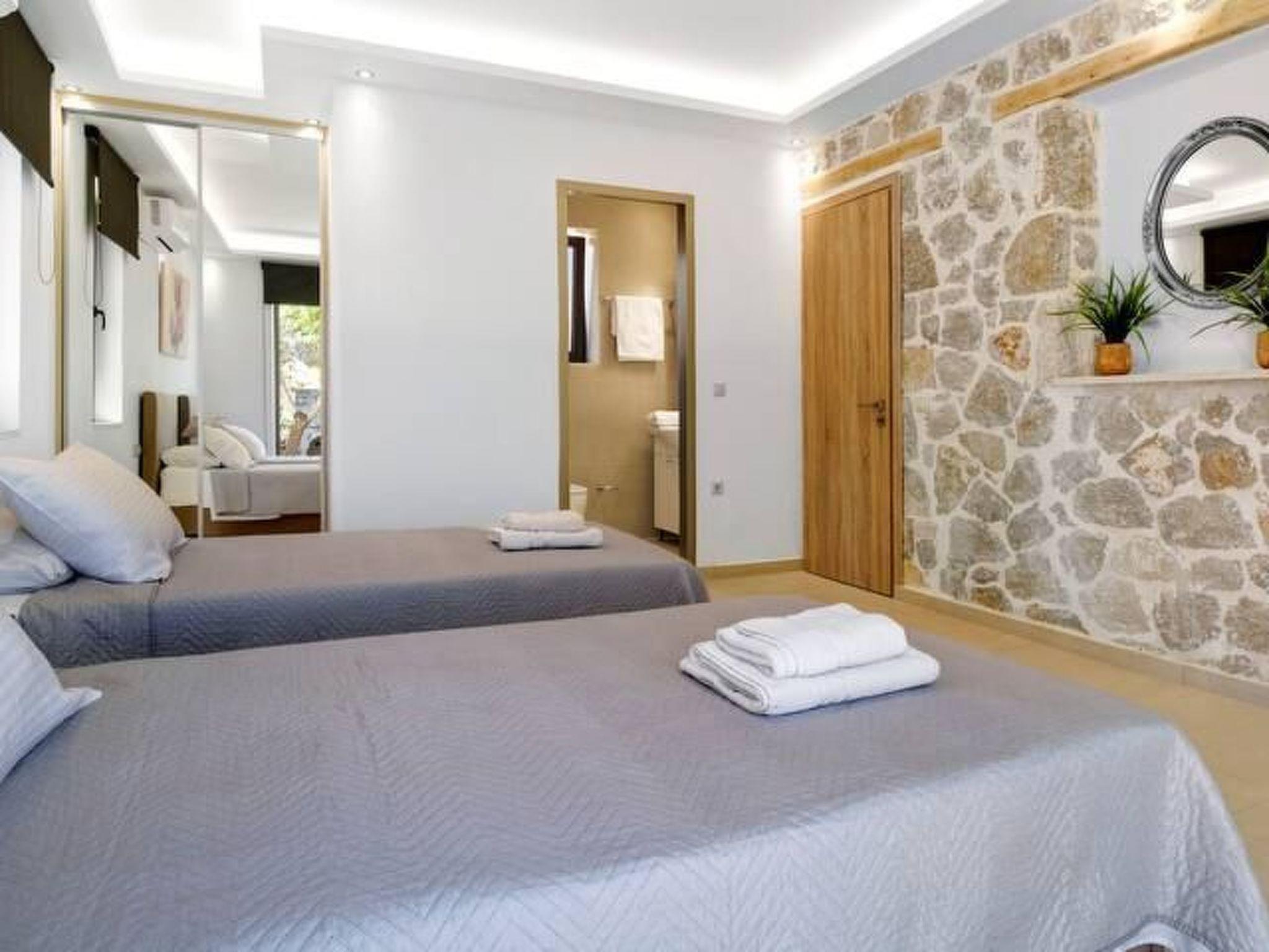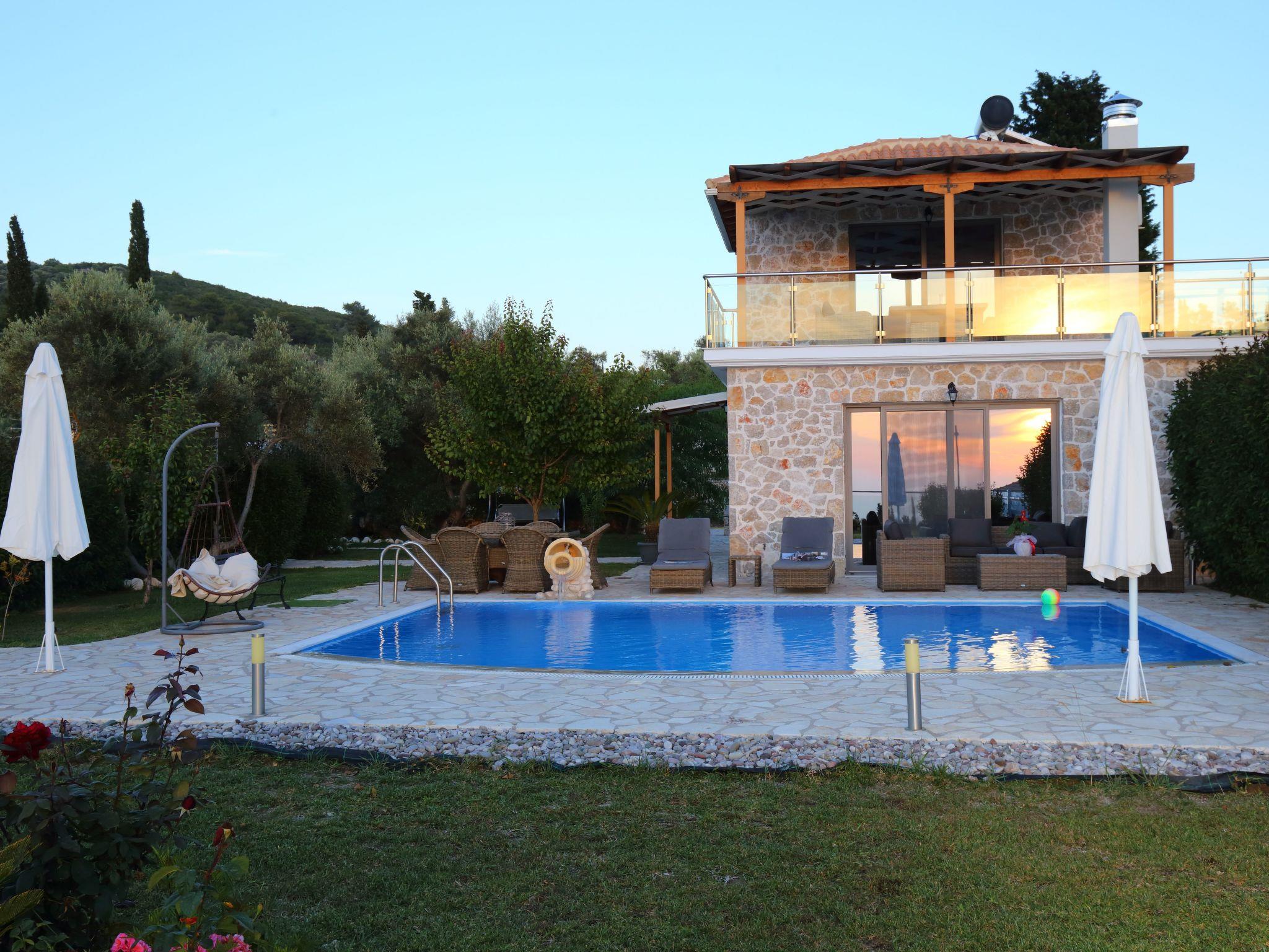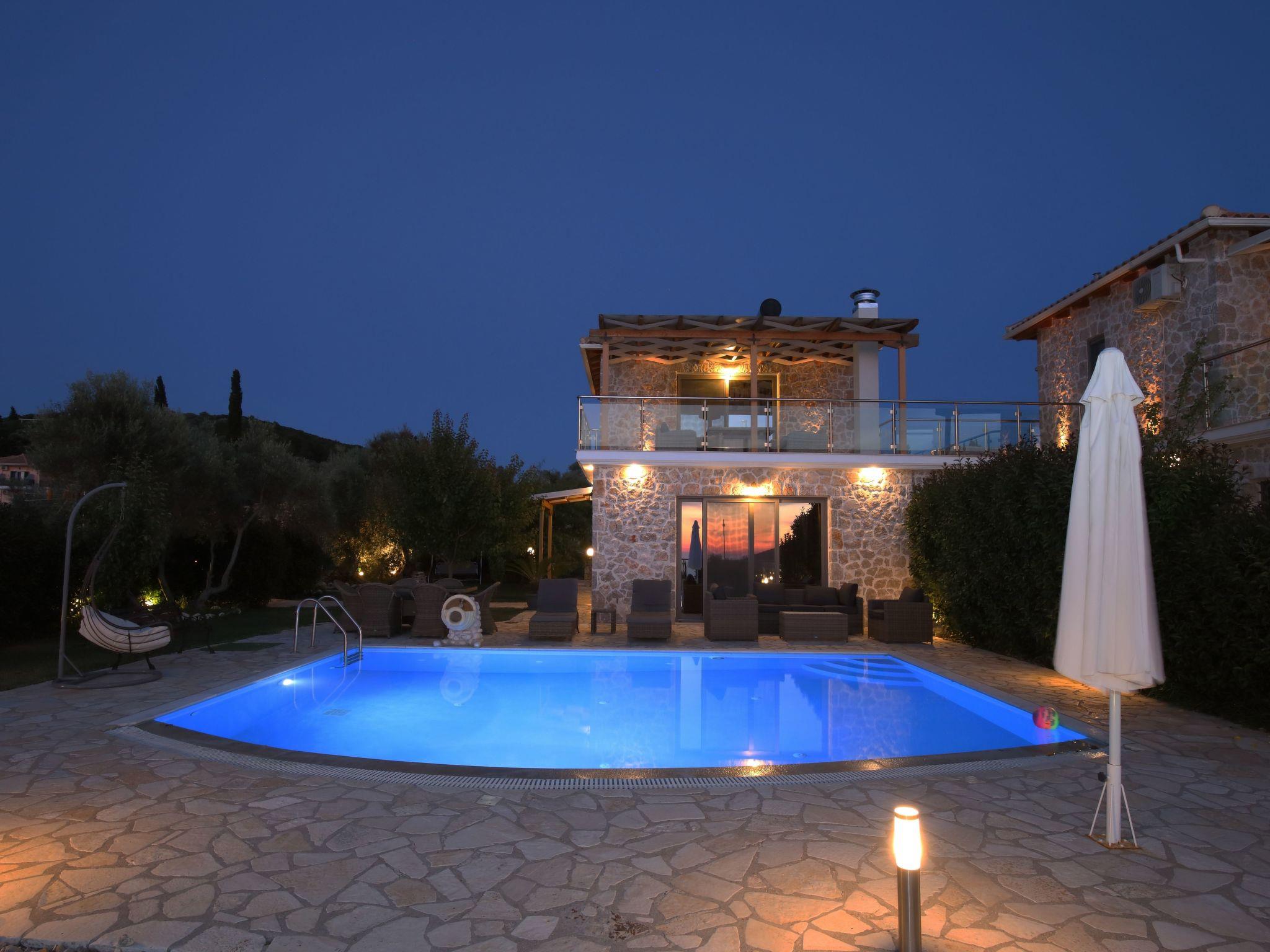??? First floor: A spacious master bedroom with a double bed and private bathroom featuring a hydromassage shower. The bedroom opens onto a large terrace with panoramic views of the Ionian Sea — the perfect spot to relax and enjoy the sunset.