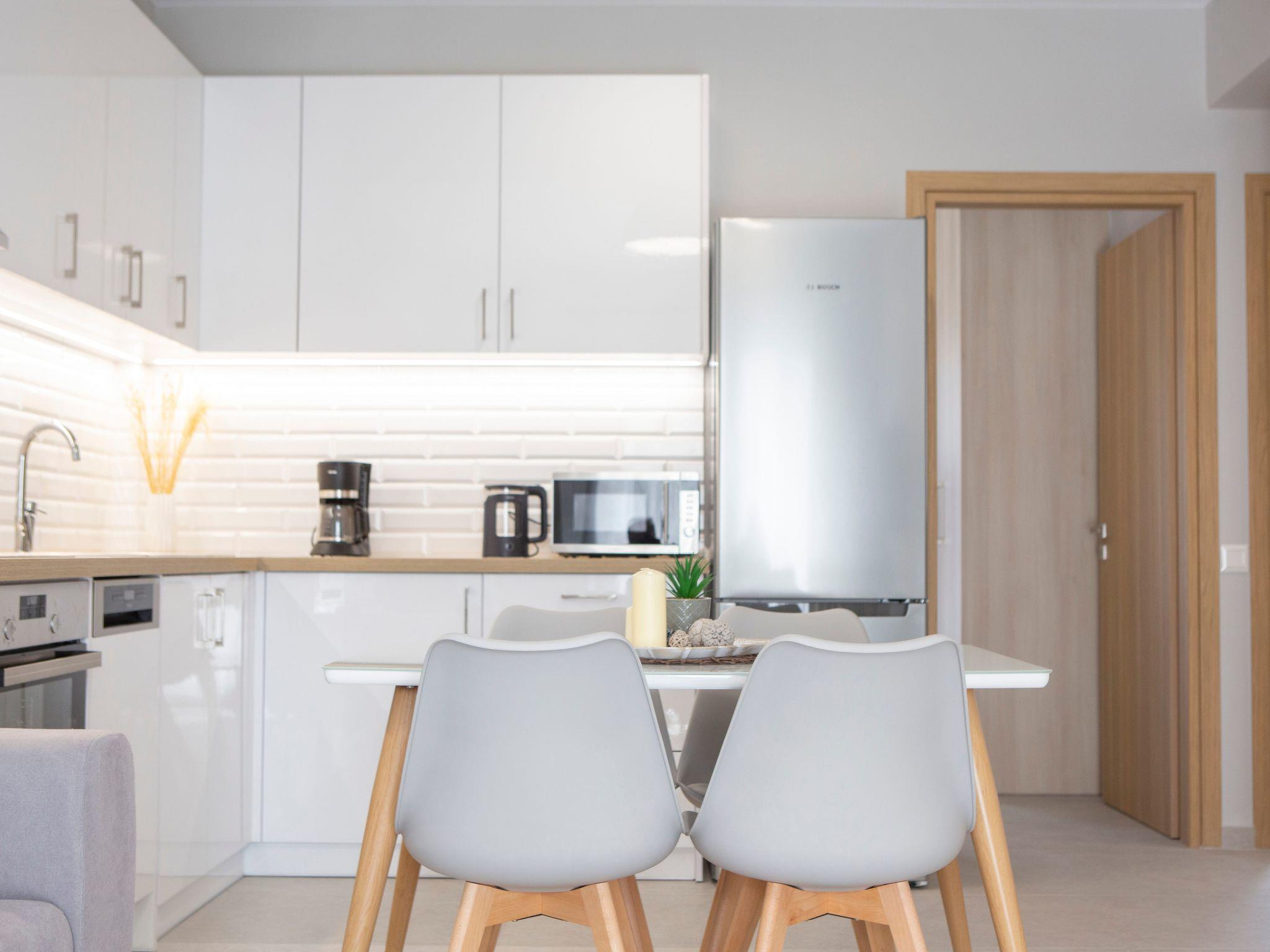 The units are newly-built (February of 2023), modern, beautifully decorated, and identically equipped. The apartment has 63m², while the maisonette has 75m², and spreads across the ground floor and the first floor. They consist of two bedrooms with double beds, a living room, a kitchen with a dining room, a bathroom, a WC, and a terrace with an outdoor area for sitting and dining.