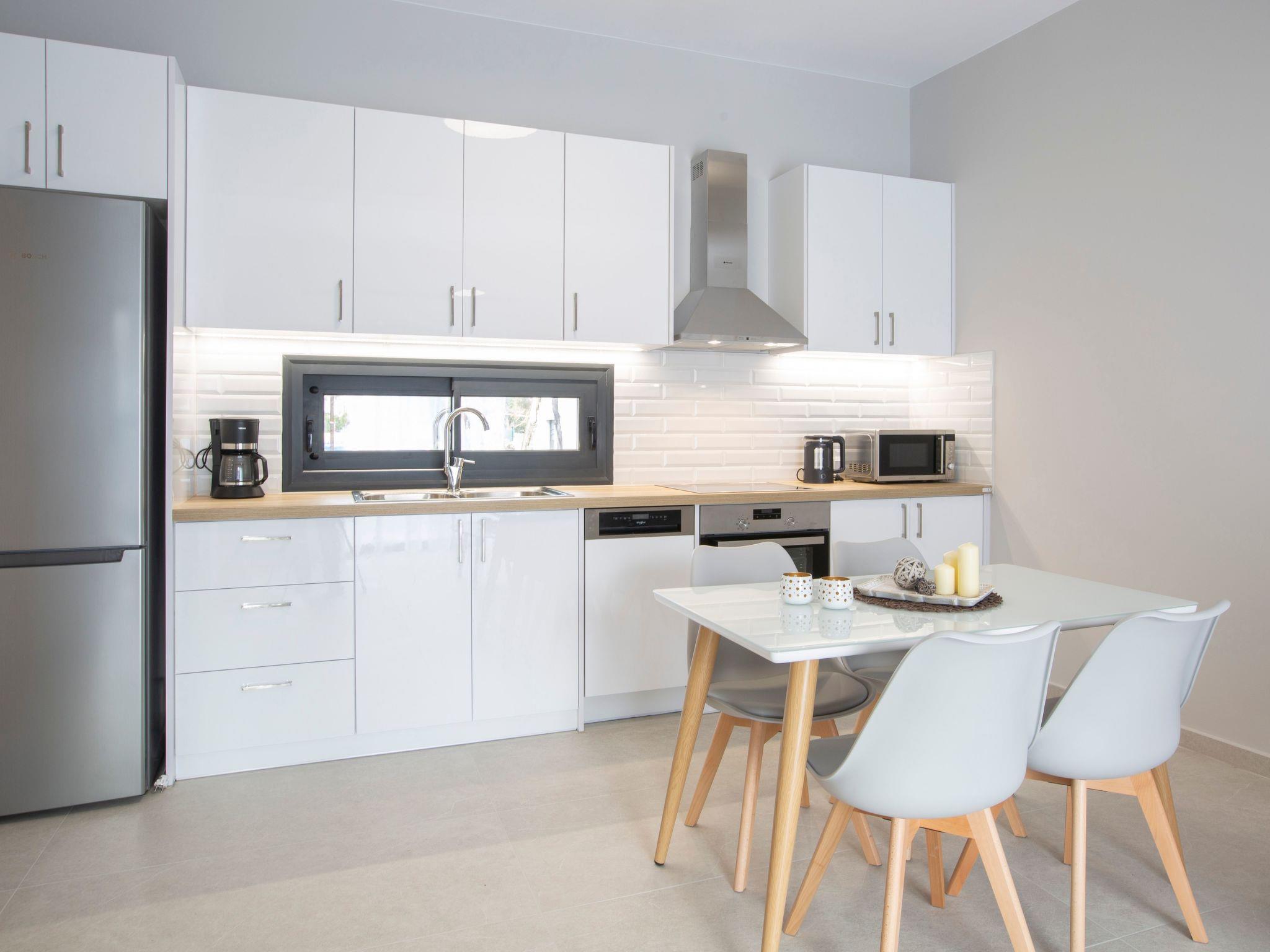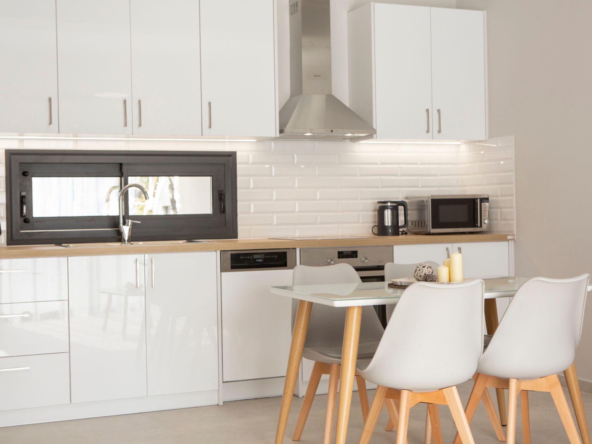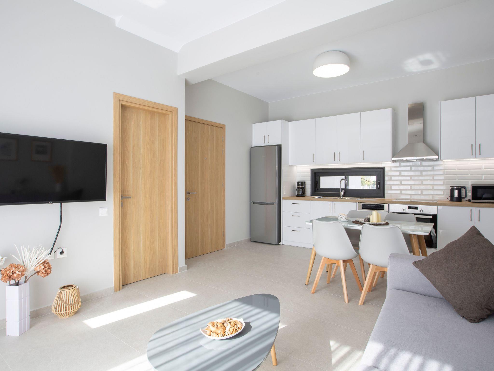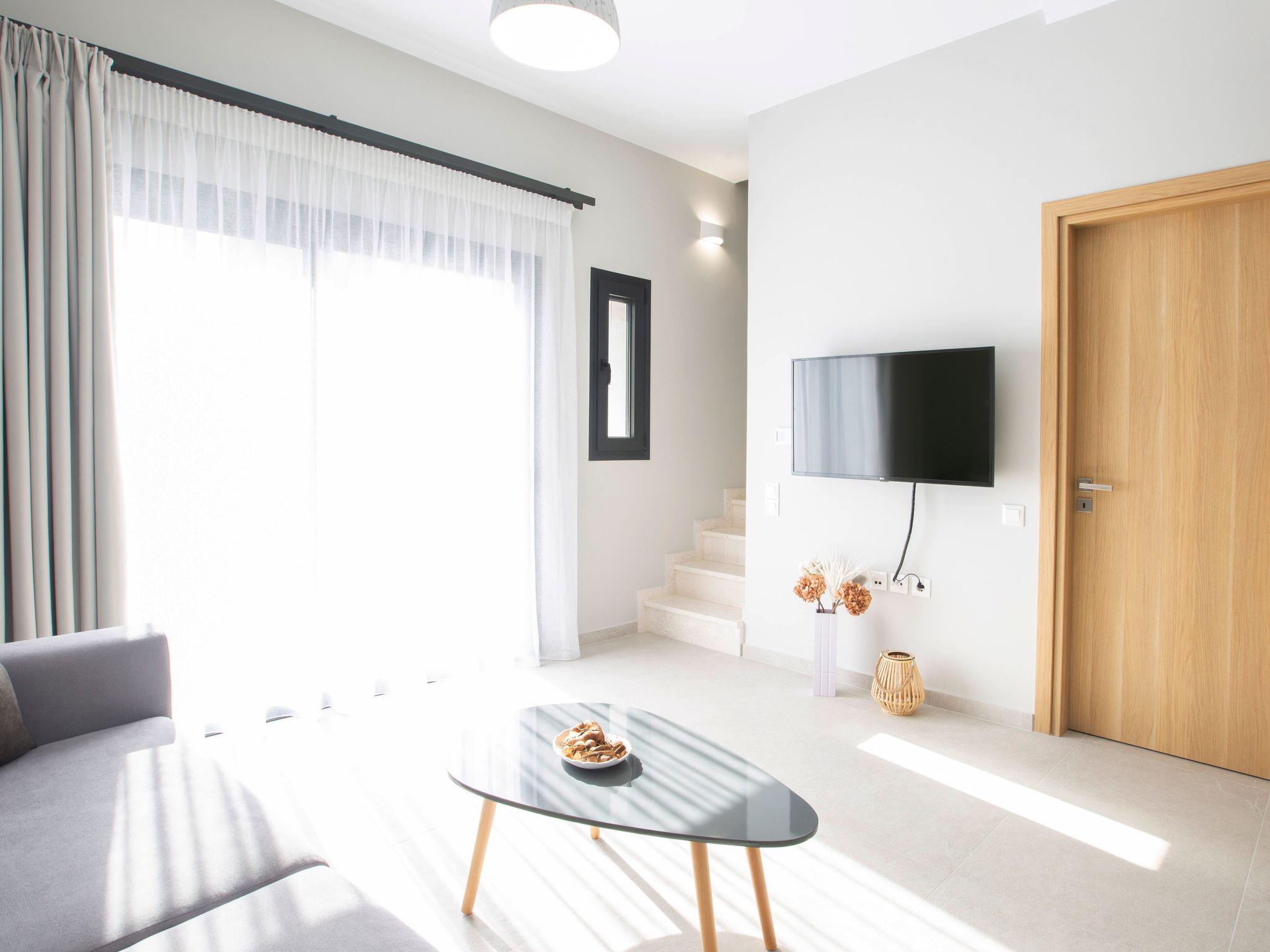 The units are newly-built (February of 2023), modern, beautifully decorated, and identically equipped. The apartment has 63m², while the maisonette has 75m², and spreads across the ground floor and the first floor. They consist of two bedrooms with double beds, a living room, a kitchen with a dining room, a bathroom, a WC, and a terrace with an outdoor area for sitting and dining.