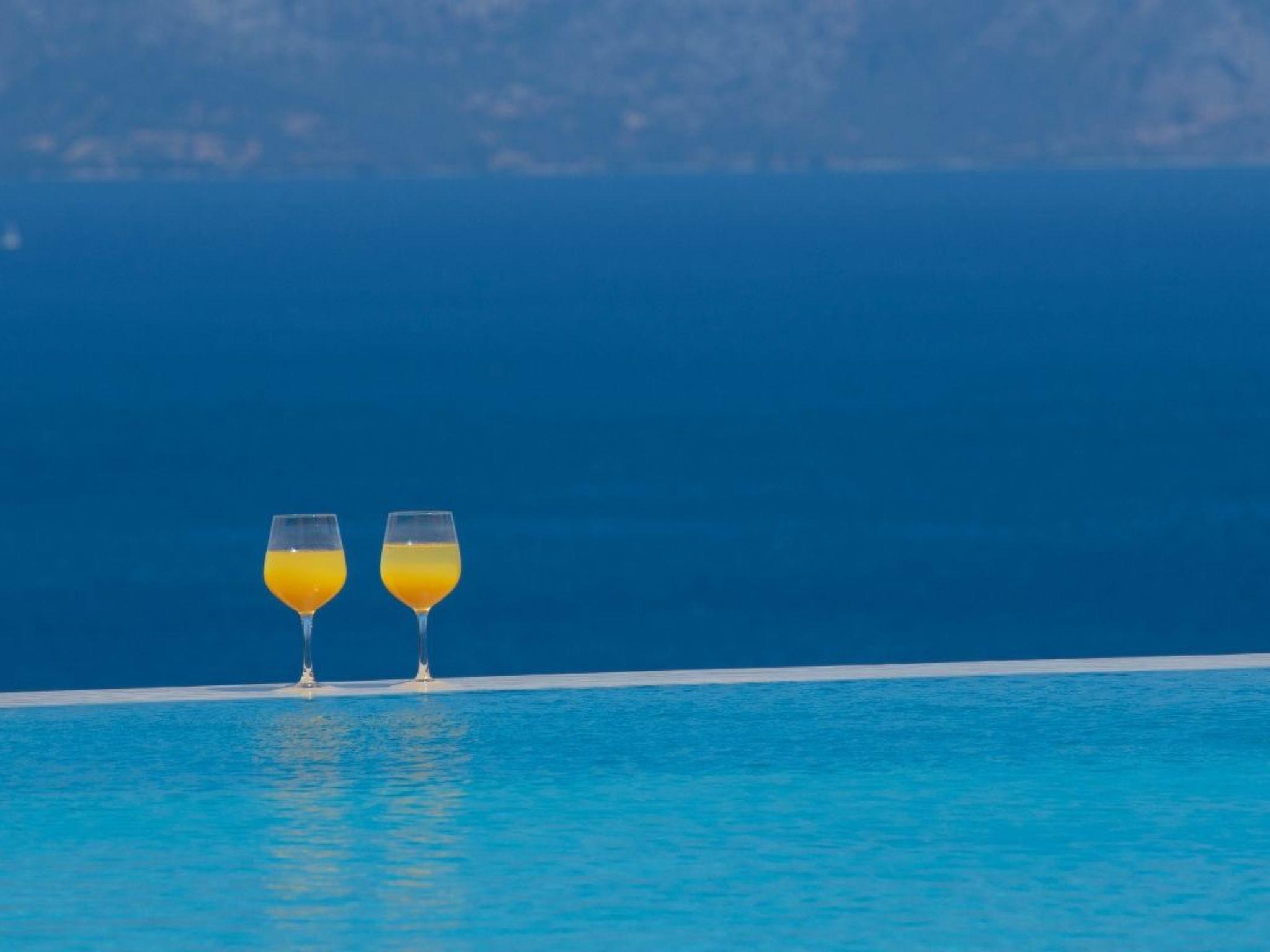 The outdoor area of Villa Lilaea is nothing short of spectacular. The private infinity swimming pool serves as the crown jewel, surrounded by sun loungers where guests can bask in the sun while enjoying the limitless blue of the sky and sea. For dining alfresco, a roofed area by the pool with a dining table and chairs is perfectly situated for meals under the stars, enhanced by the local flavors prepared in the wood-fired oven and BBQ area.