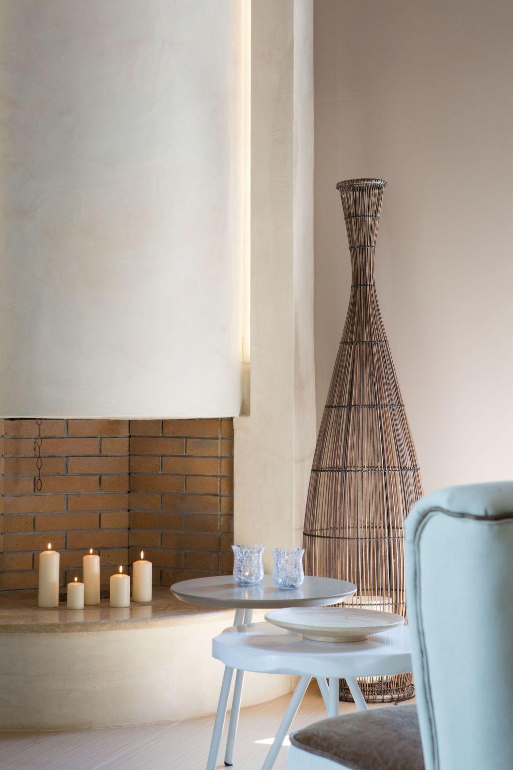 A few steps, adorned with ornate railings, lead into a spacious open plan dining room and fully equipped kitchen area. The combination of metal and wood of the furnishing, the impressive light fittings made out of thick ship rope along with the light floaty curtains bring the Mediterranean feeling into the villa.