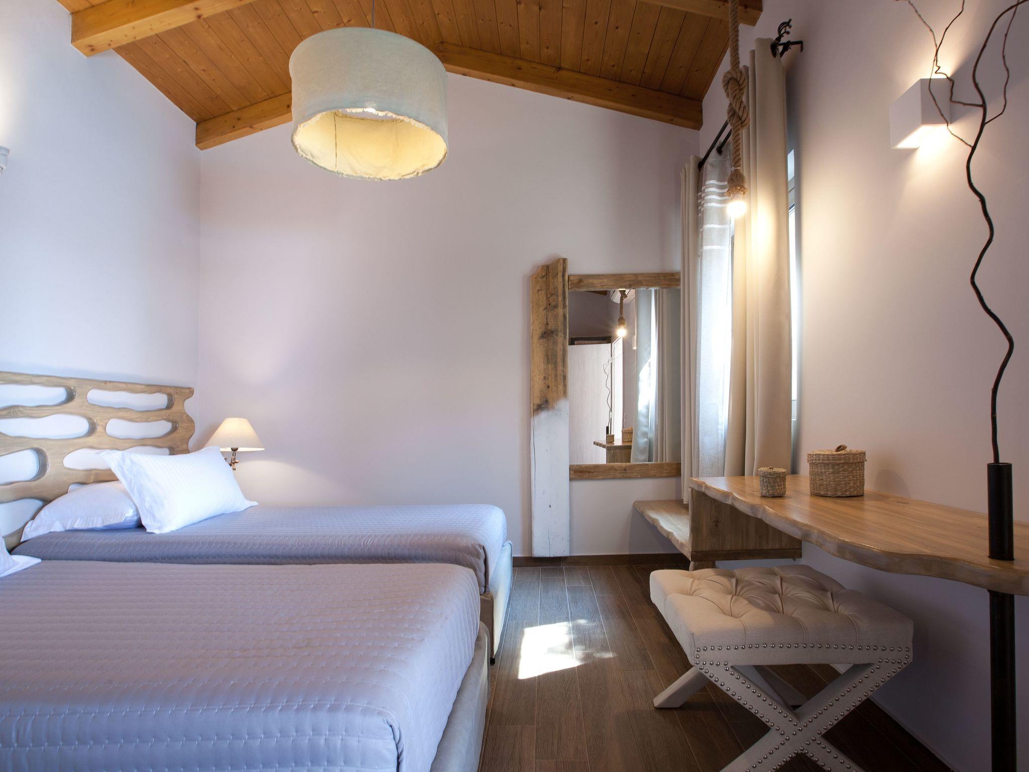 The villas are very close to the beaches of Passas and near Nidri and are uniquely designed with individual private pools having unobstructed views of the sea , both from within and out and are decorated and fully furnished with a combined rustic and modern decor using simple but impressive lines , materials of metal and wood , airy fabrics and bright colours blending harmoniously within the natural surroundings.