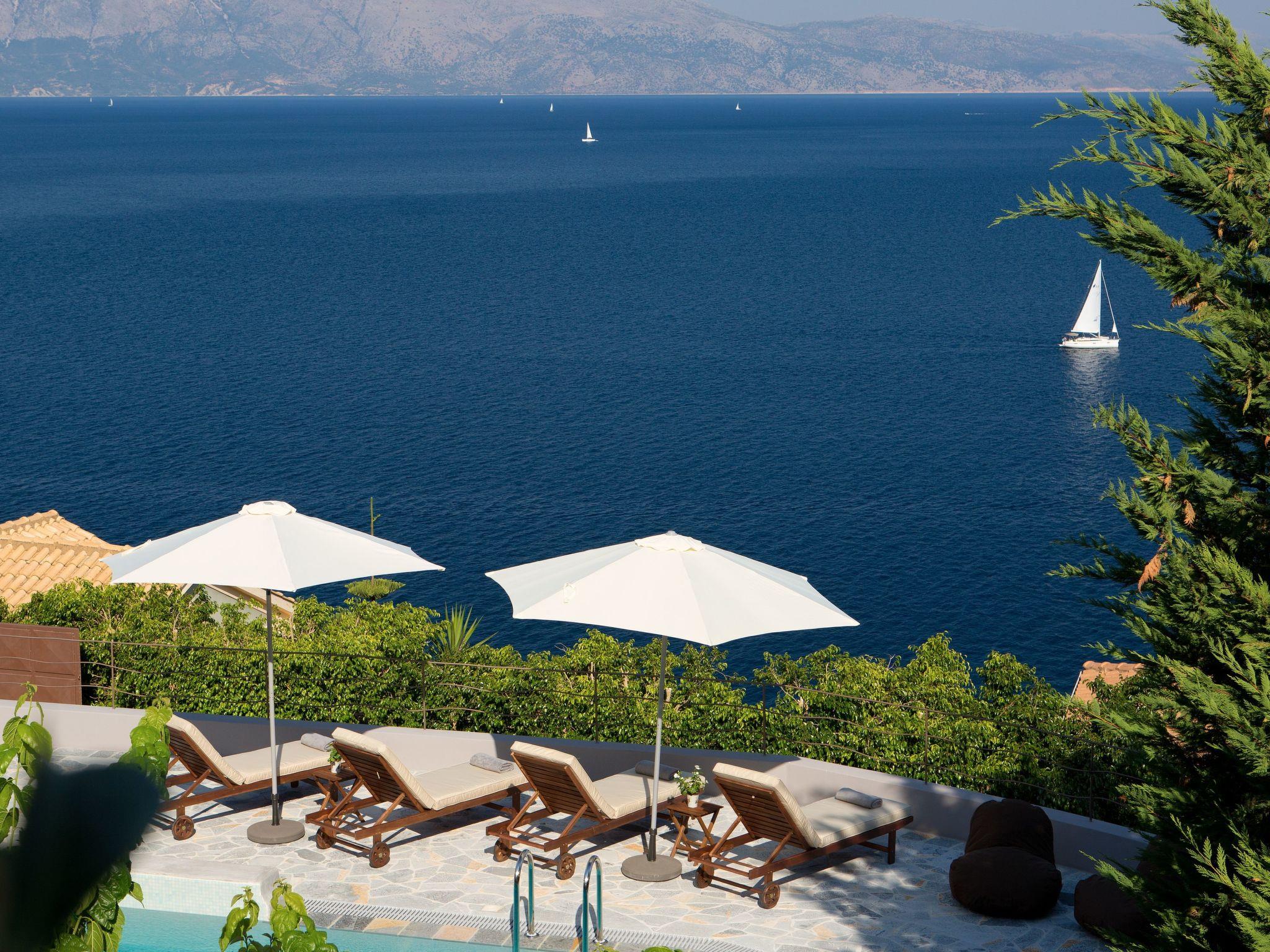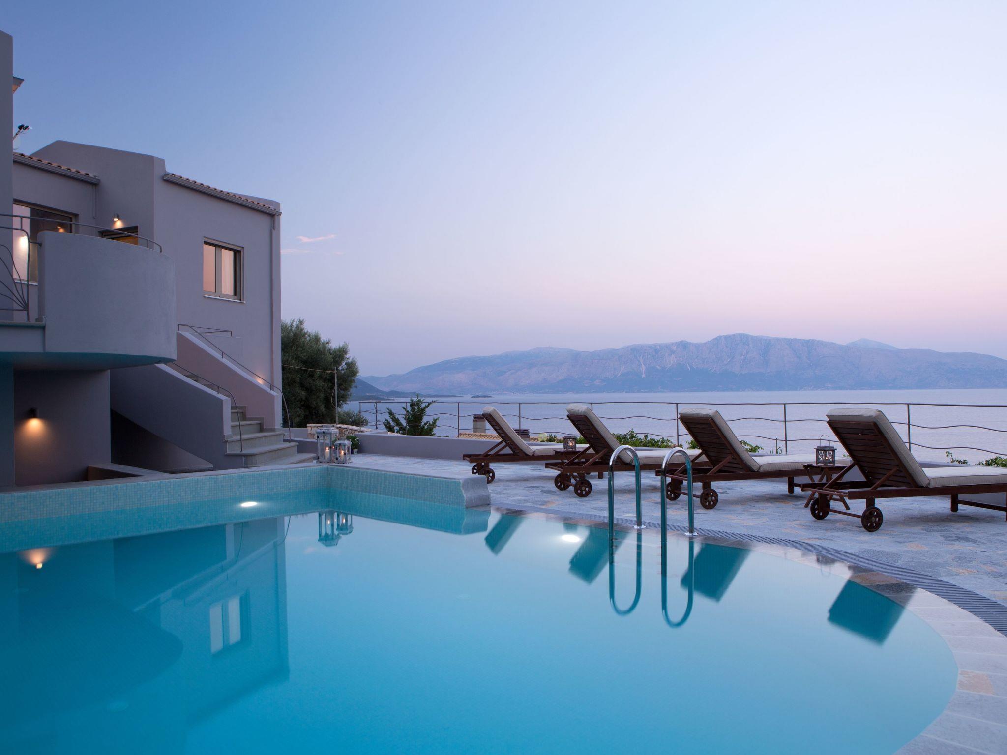 Superb villa with unobstructed views directly over the Ionian Sea. Cleverly designed,has a modern, spacious and airy interior and a carefully designed exterior with a number of seating areas on a lovely large terrace around the private pool.