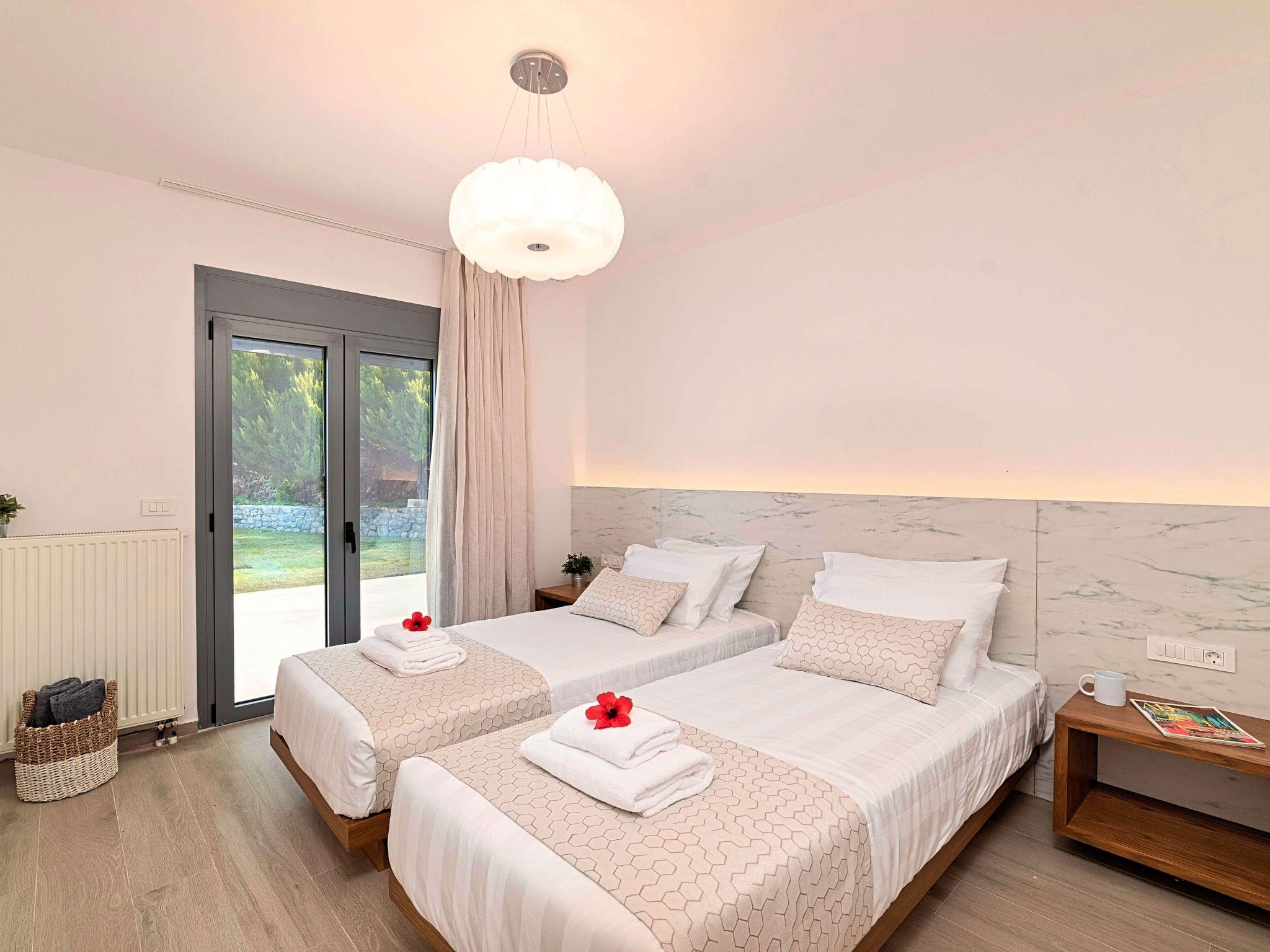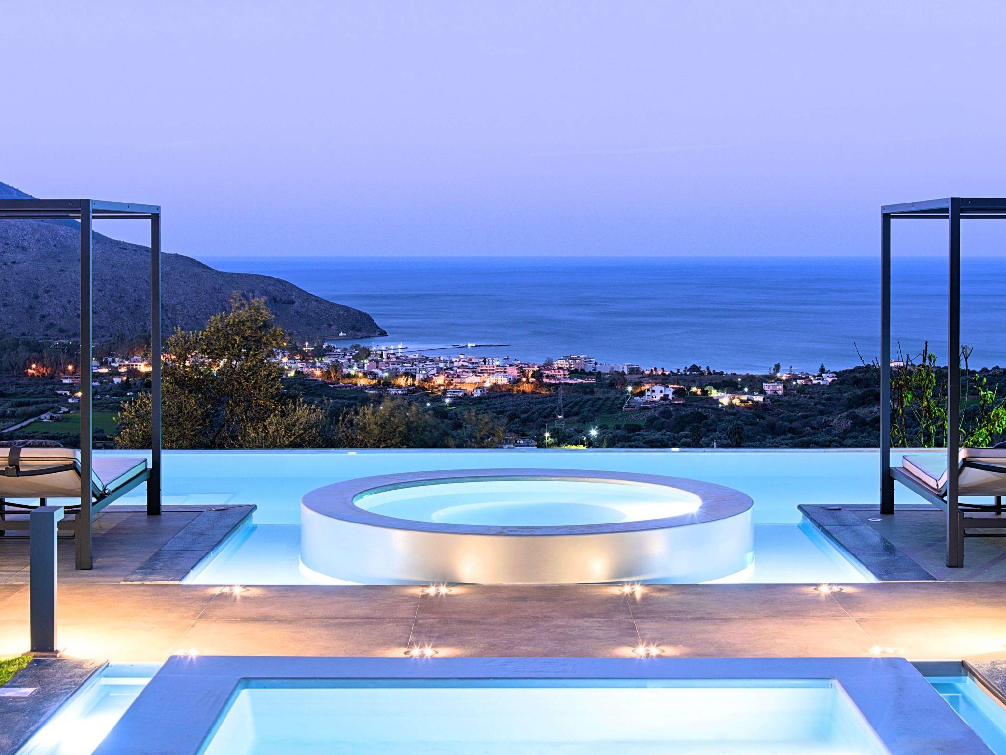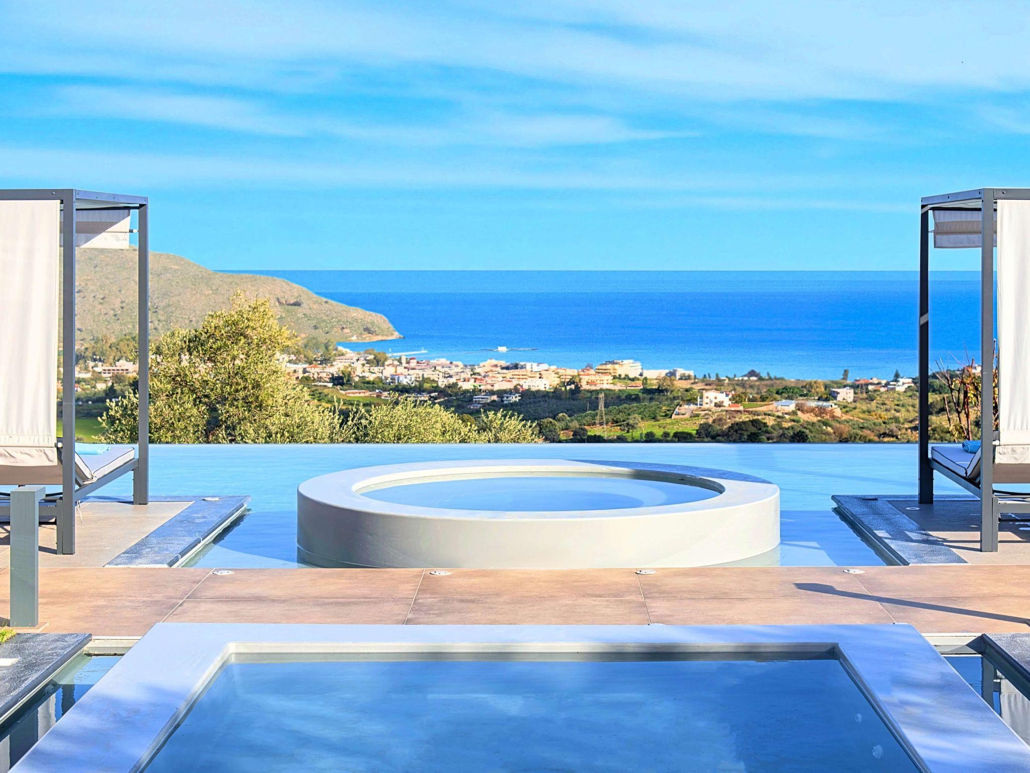 Mistral Suite is an extraordinary three-bedroom luxurious home, ideal for a unique relaxing holiday experience.At the beautiful area of Apokoronas, in the village of Mathes, overlooking olive groves, vineyards and the endless blue of the Cretan Sea.Live an ultimate journey during your stay, live an experience that fuses Cretan chariness with all the comforts of a luxury boutique hotel Suite.Blending seamlessly with its luscious verdant surroundings, has been designed and built as an environmentally friendly home, offering a totally authentic Greek hospitality experience.All in a single gorgeous location a few hundred meters from the largest sandy beach of Crete and the only natural lake of Crete, Kournas.Unwind in the infinity pool surrounded by the large sunbath area.Enjoy a drink at the outdoors sitting area and leave your eyes to explore the endless blue of the sea and the sky.Slipping into your room, will be like stepping into a stylish hotel room, with all the necessary amenities, all complemented by refined style furniture.An oasis of glorious island serenity awaits you at Mistral Suite, so start planning your escape today.Perfect for families or group of friends.Mistral Suite is a detached apartment of two independent apartment building, owned by the same family. With private entrance, private parking, private large garden area with private use of an infinity swimming pool.