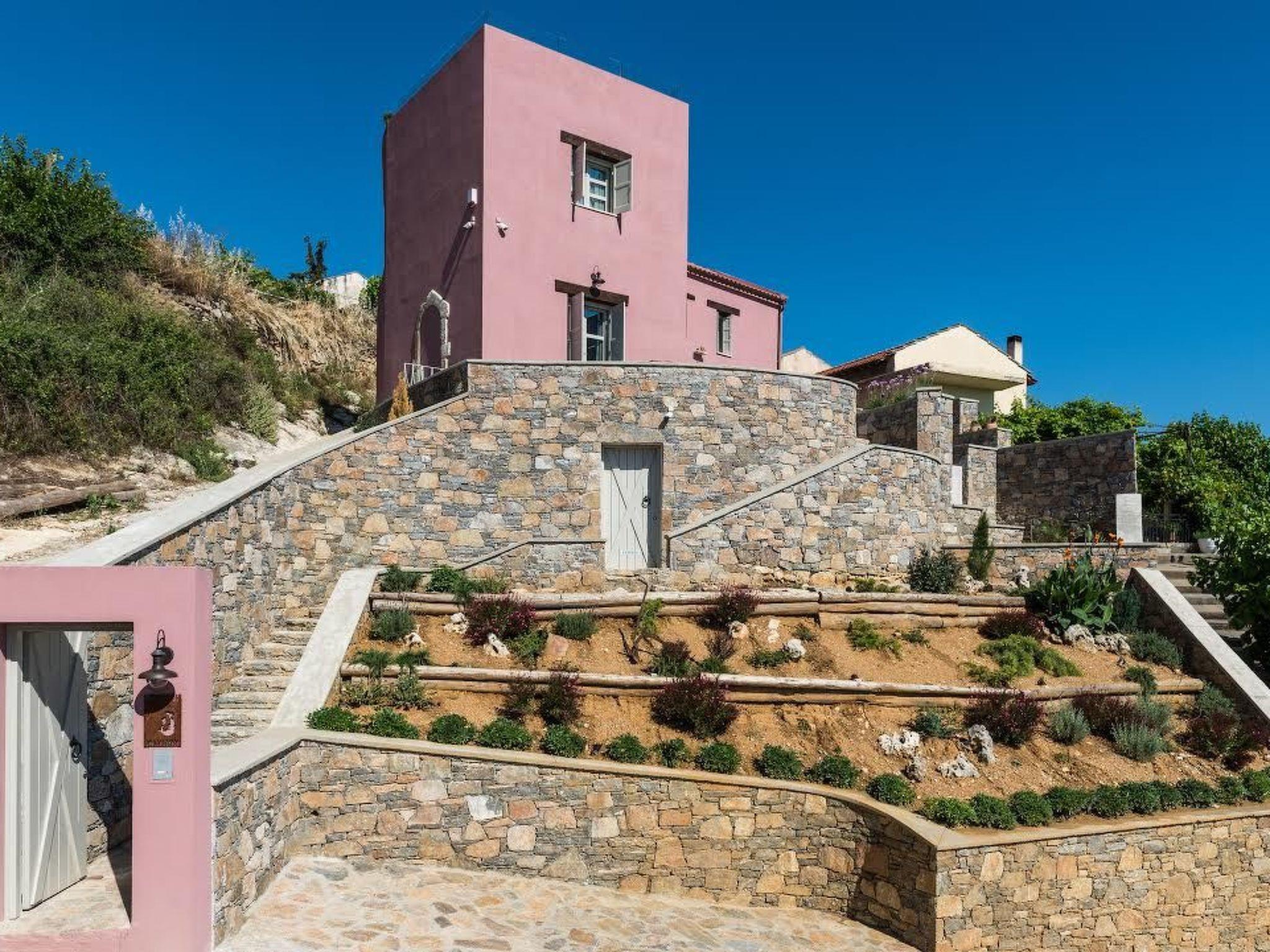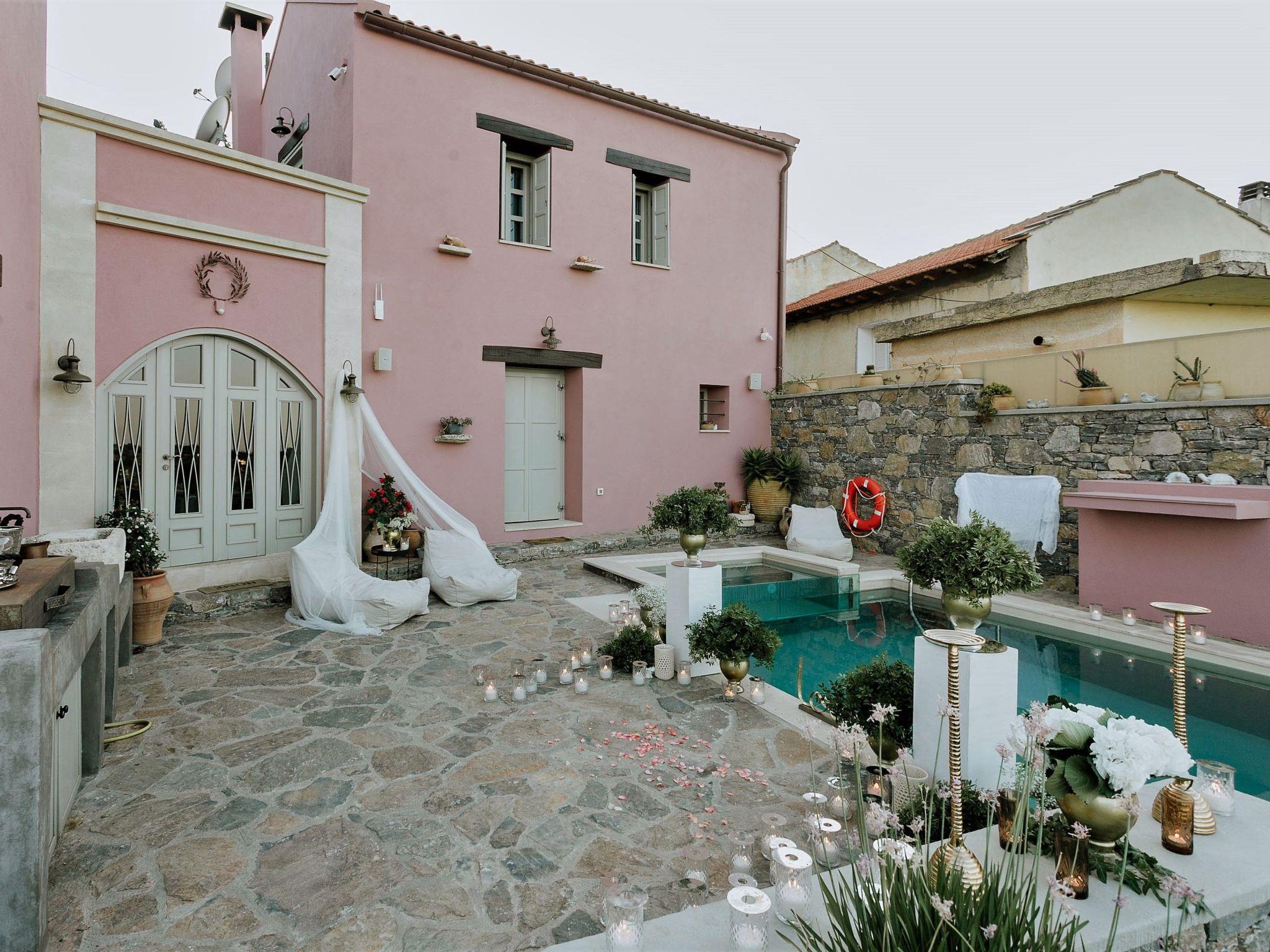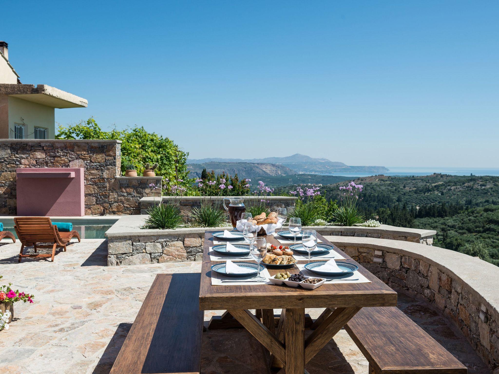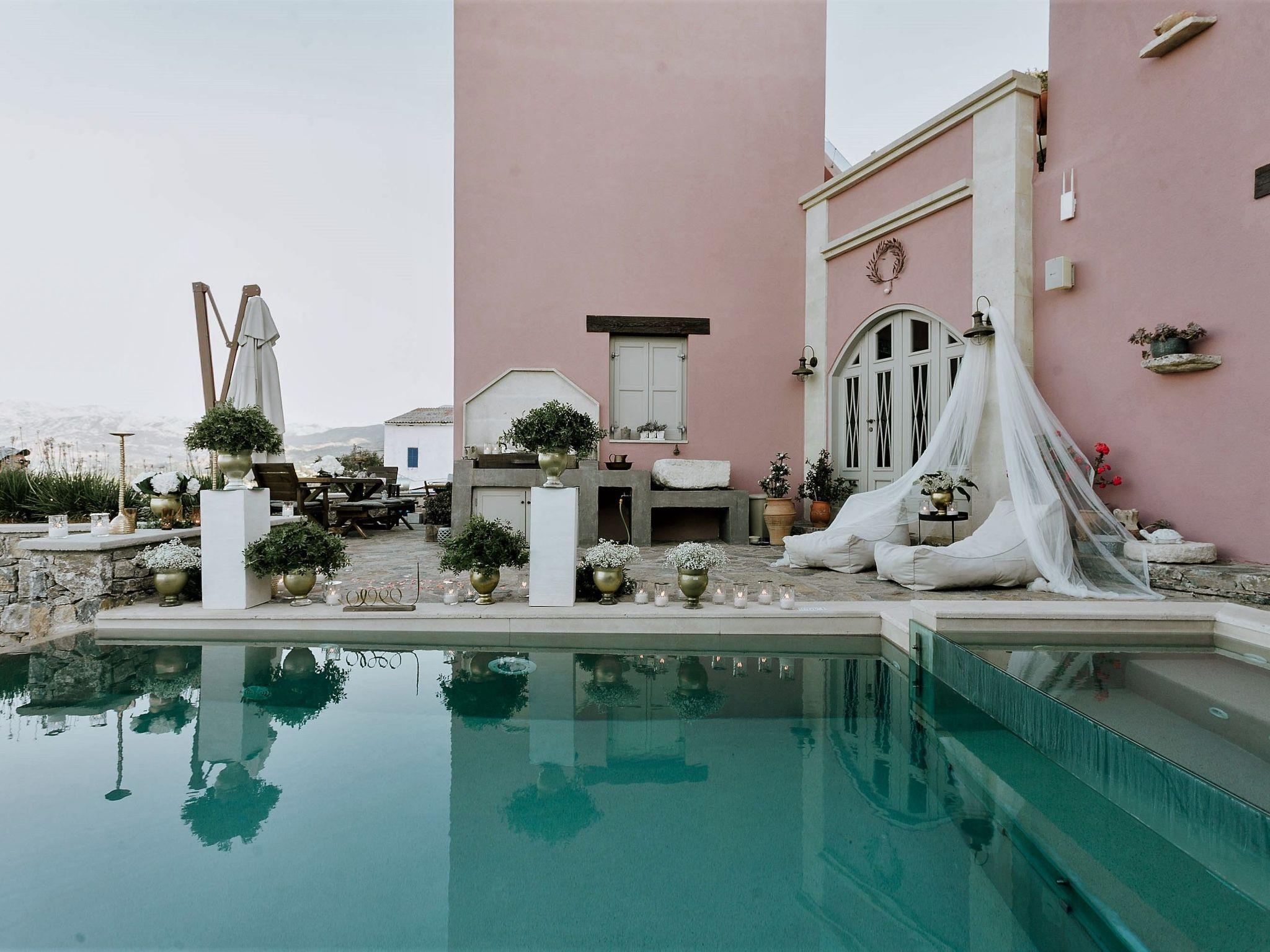 Liodosifis Mansion is a fully renovated, traditional villa located in the village of Paidohori, in the area of Apokoronas. It has been built amphitheatrically at the foot of the White Mountains of Crete, at an altitude of 270 meters and this allows visitors to have 360-degree panoramic views.To capitalize on the favorable amphitheatrical position of Liondosifis Mansion, great attention has been paid to shaping the exterior space. It consists of three verandas, one on the ground floor, the other on the top of the open-plan lounge building and the third is very high above the first building. The ground floor terrace offers BBQ facilities, a large monastery table, a swimming pool. The pool is equipped with sun loungers while there is a stylish fountain, offering moments of relaxation under the sound of running water. It can be heated at an additional cost.The veranda is equipped with chairs and a table and you can enjoy your drink or your meal with the White Mountains in the background. It is located above the first building and it is taller than the other two and is equipped with a sofa to savor the endless Cretan sunshine, giving you absolute moments of relaxation with a view from the mountains up to Akrotiri Stavros. Liodosifis Mansion's traditional residence consists of three buildings that can accommodate up to 8 people. The two buildings at the edges of the complex are two-storied and have four bedrooms, while in the middle building, there is a single room and a kitchen. A 24-hour telephone contact service is provided, and for your safety there are magnetic locks. Upon arrival at Liodosifis Mansion, we welcome you with a homemade meal. Furthermore, there will be water in your room while tap water is drinkable. Important Notice:-This property is not suitable for children under 10 years old pool is available.
