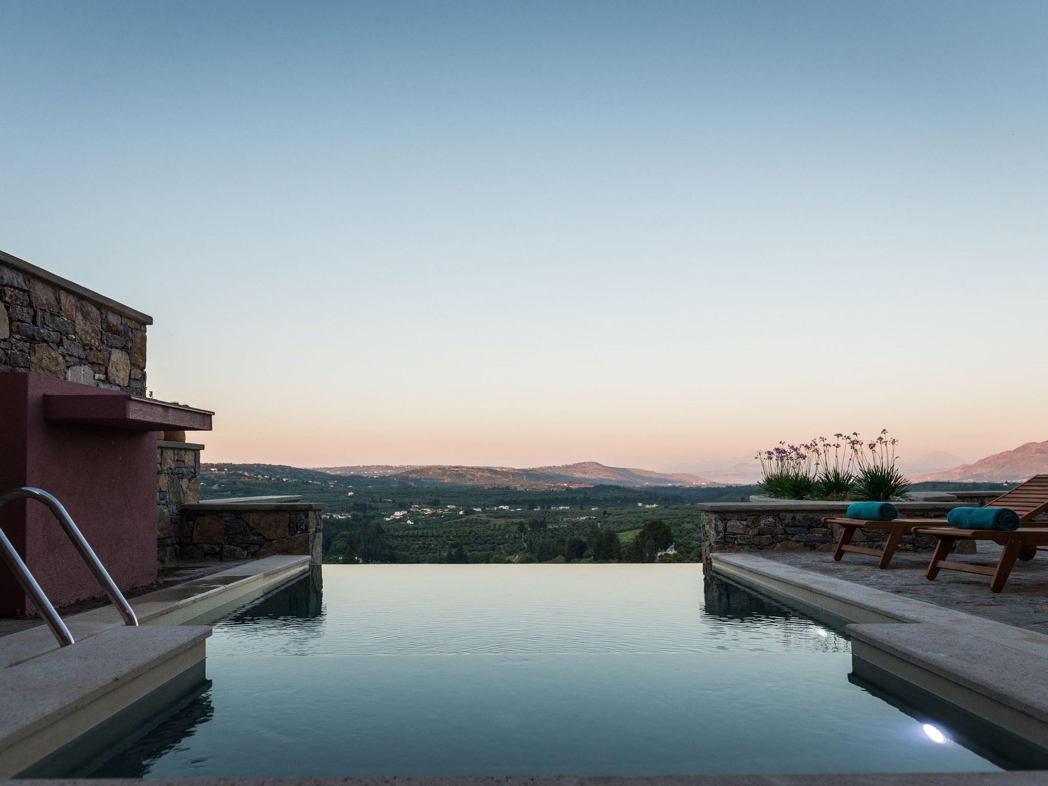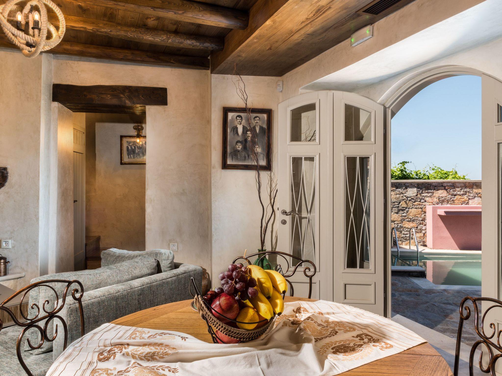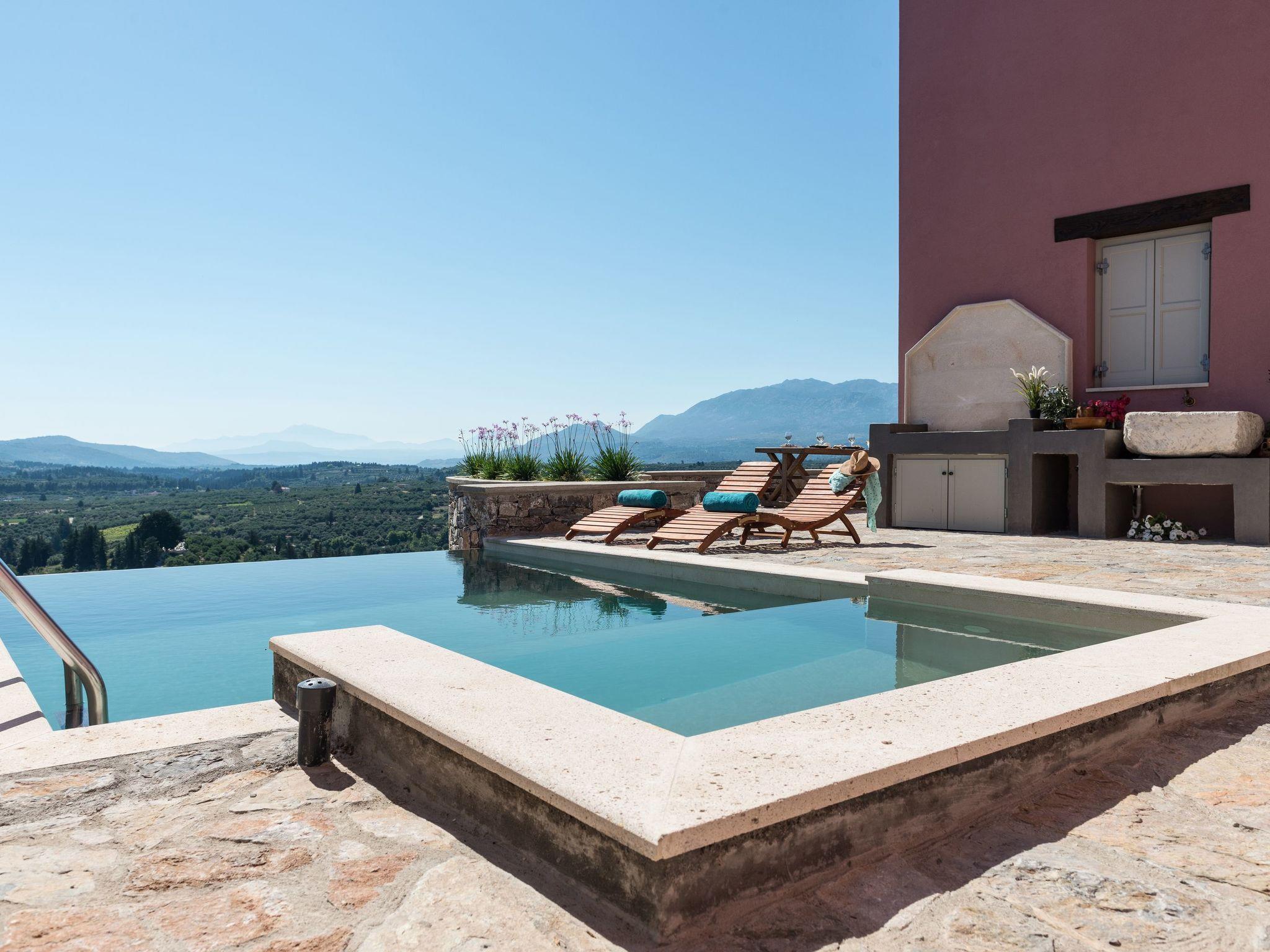 Liodosifis Mansion is a fully renovated, traditional villa located in the village of Paidohori, in the area of Apokoronas. It has been built amphitheatrically at the foot of the White Mountains of Crete, at an altitude of 270 meters and this allows visitors to have 360-degree panoramic views.To capitalize on the favorable amphitheatrical position of Liondosifis Mansion, great attention has been paid to shaping the exterior space. It consists of three verandas, one on the ground floor, the other on the top of the open-plan lounge building and the third is very high above the first building. The ground floor terrace offers BBQ facilities, a large monastery table, a swimming pool. The pool is equipped with sun loungers while there is a stylish fountain, offering moments of relaxation under the sound of running water. It can be heated at an additional cost.The veranda is equipped with chairs and a table and you can enjoy your drink or your meal with the White Mountains in the background. It is located above the first building and it is taller than the other two and is equipped with a sofa to savor the endless Cretan sunshine, giving you absolute moments of relaxation with a view from the mountains up to Akrotiri Stavros. Liodosifis Mansion's traditional residence consists of three buildings that can accommodate up to 8 people. The two buildings at the edges of the complex are two-storied and have four bedrooms, while in the middle building, there is a single room and a kitchen. A 24-hour telephone contact service is provided, and for your safety there are magnetic locks. Upon arrival at Liodosifis Mansion, we welcome you with a homemade meal. Furthermore, there will be water in your room while tap water is drinkable. Important Notice:-This property is not suitable for children under 10 years old pool is available.