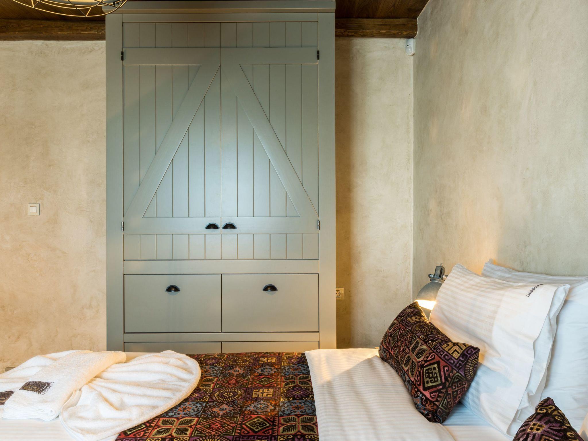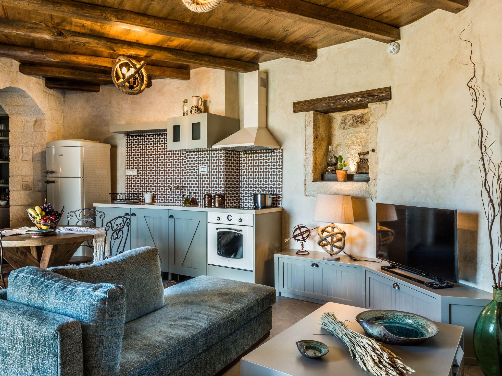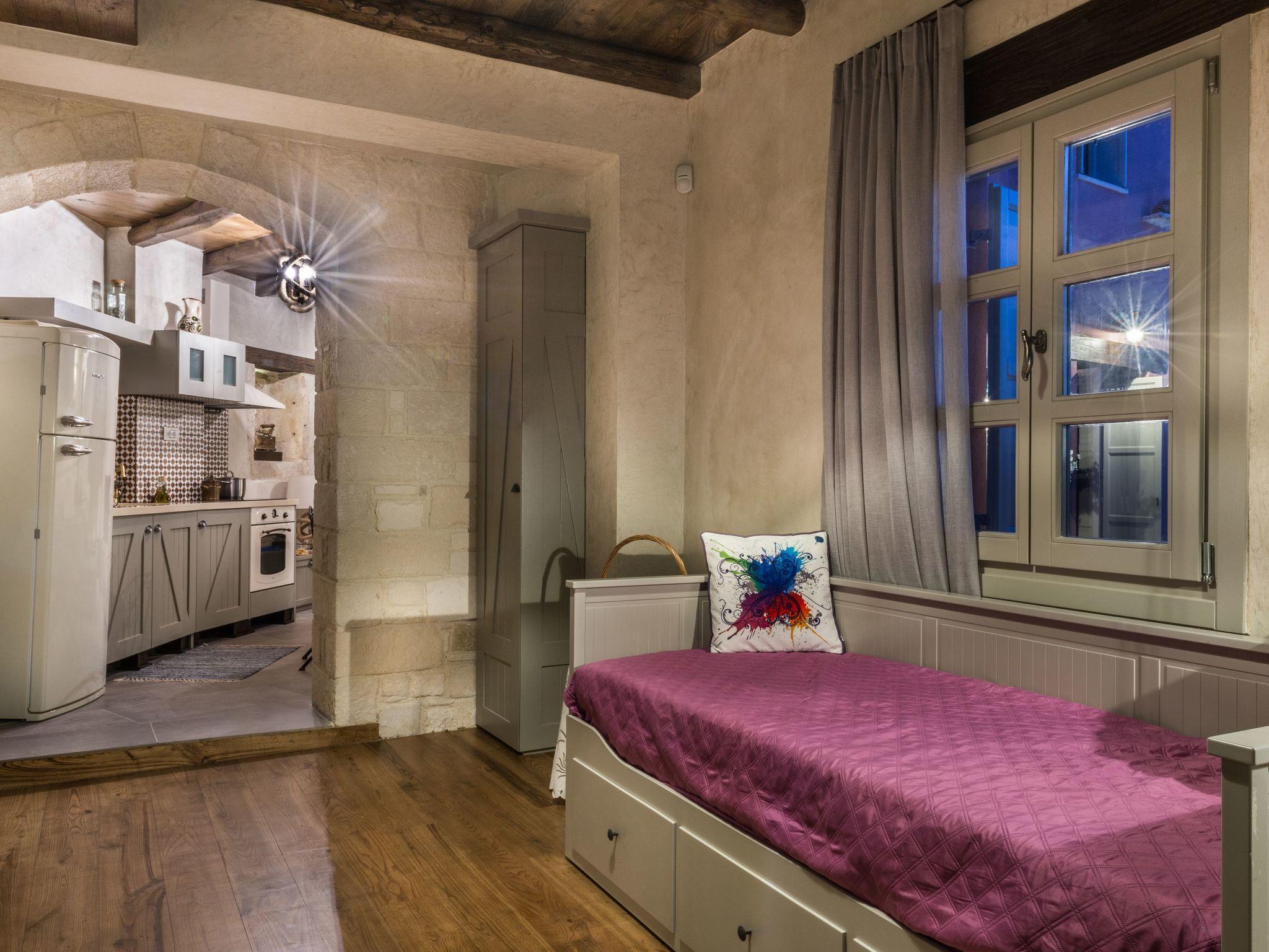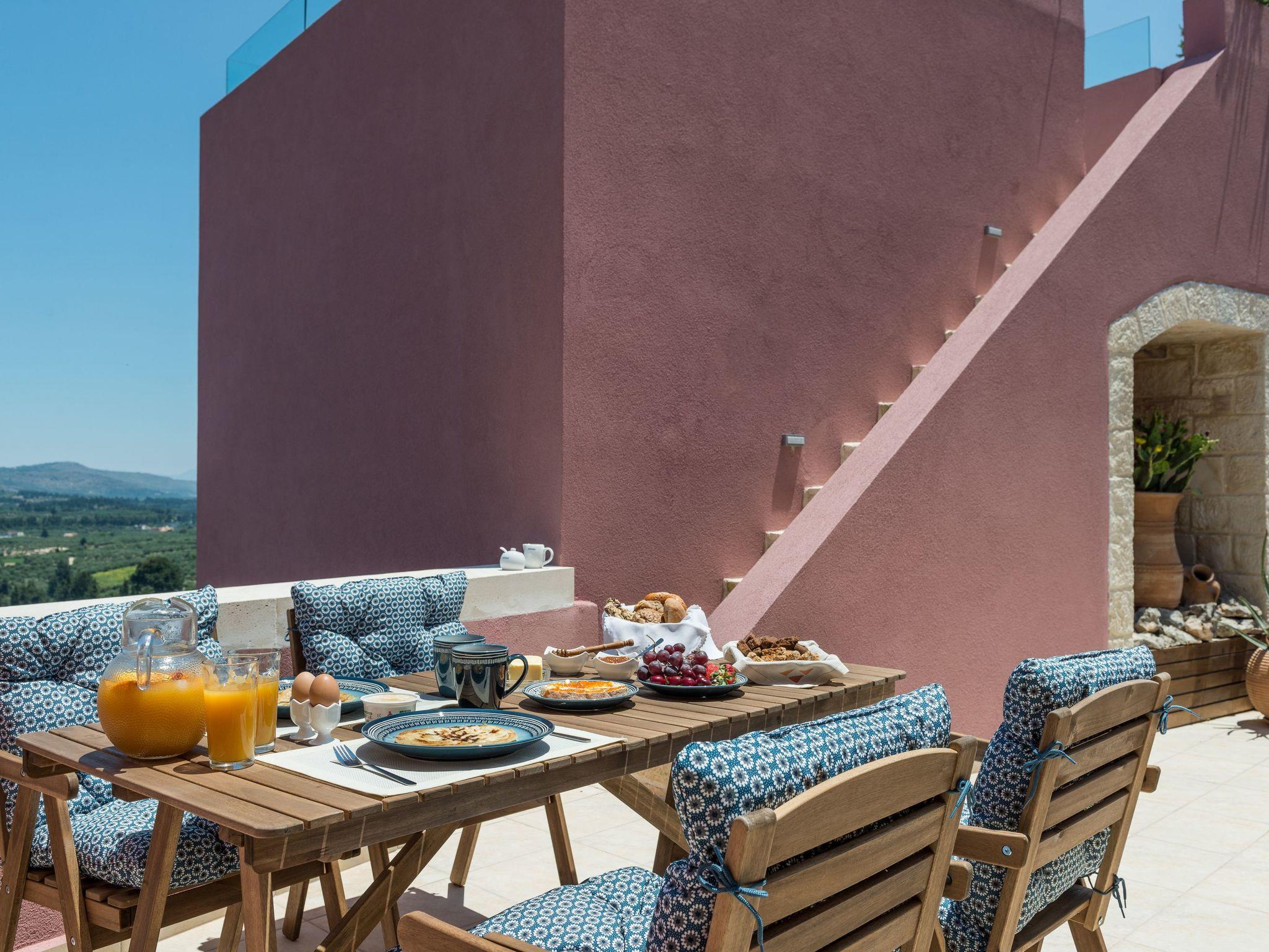 Liodosifis Mansion is a fully renovated, traditional villa located in the village of Paidohori, in the area of Apokoronas. It has been built amphitheatrically at the foot of the White Mountains of Crete, at an altitude of 270 meters and this allows visitors to have 360-degree panoramic views.To capitalize on the favorable amphitheatrical position of Liondosifis Mansion, great attention has been paid to shaping the exterior space. It consists of three verandas, one on the ground floor, the other on the top of the open-plan lounge building and the third is very high above the first building. The ground floor terrace offers BBQ facilities, a large monastery table, a swimming pool. The pool is equipped with sun loungers while there is a stylish fountain, offering moments of relaxation under the sound of running water. It can be heated at an additional cost.The veranda is equipped with chairs and a table and you can enjoy your drink or your meal with the White Mountains in the background. It is located above the first building and it is taller than the other two and is equipped with a sofa to savor the endless Cretan sunshine, giving you absolute moments of relaxation with a view from the mountains up to Akrotiri Stavros. Liodosifis Mansion's traditional residence consists of three buildings that can accommodate up to 8 people. The two buildings at the edges of the complex are two-storied and have four bedrooms, while in the middle building, there is a single room and a kitchen. A 24-hour telephone contact service is provided, and for your safety there are magnetic locks. Upon arrival at Liodosifis Mansion, we welcome you with a homemade meal. Furthermore, there will be water in your room while tap water is drinkable. Important Notice:-This property is not suitable for children under 10 years old pool is available.