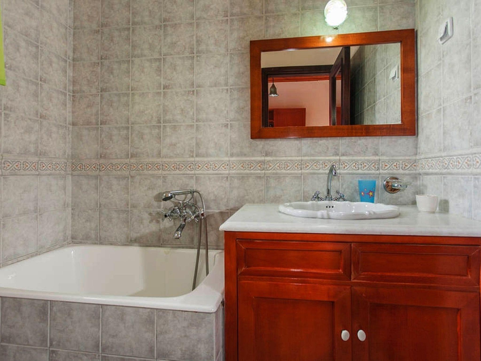 The terrace by the pool area has a table with two chairs. The terrace on the upper floor with a wonderful view provides a table with two chairs and a parasol.