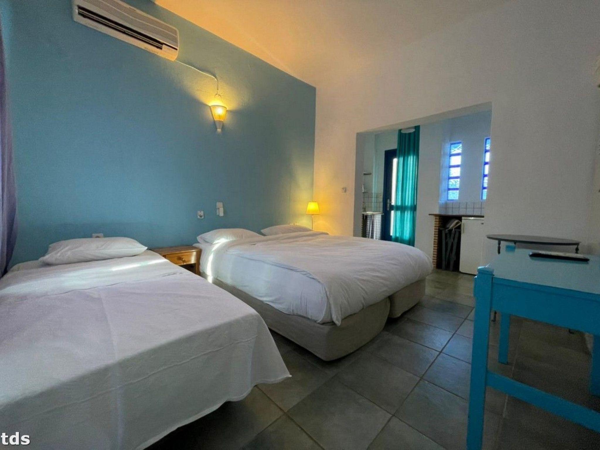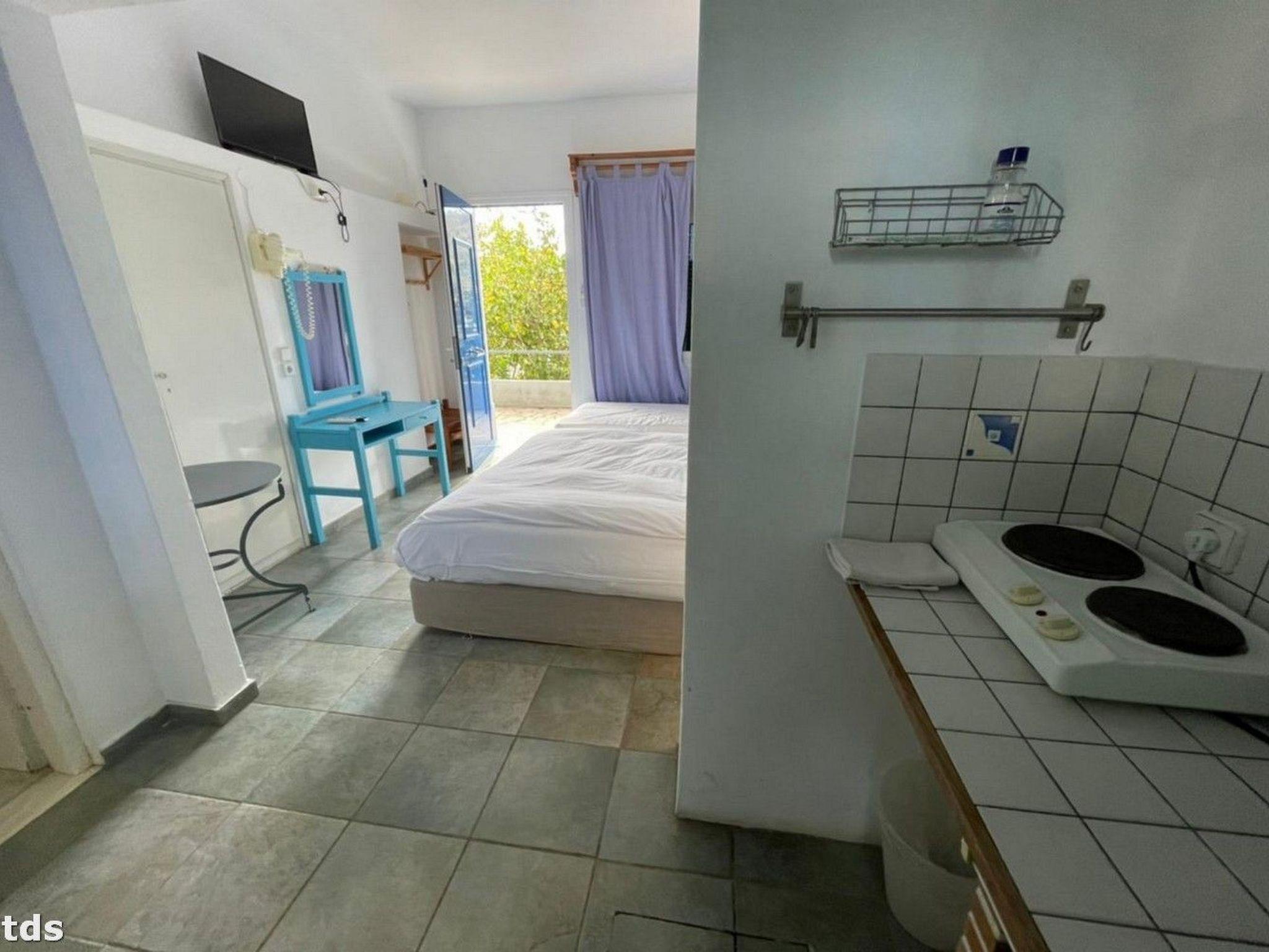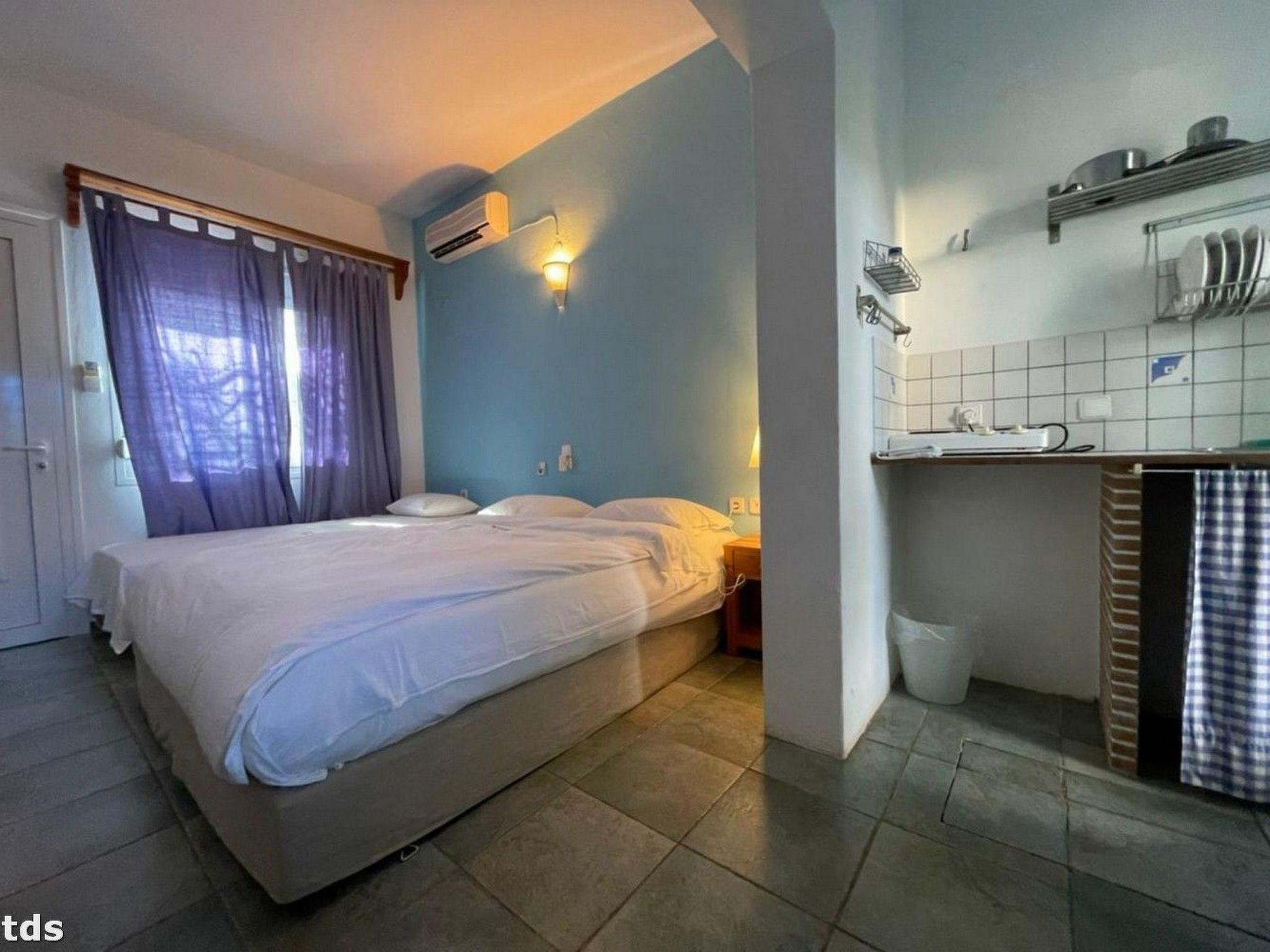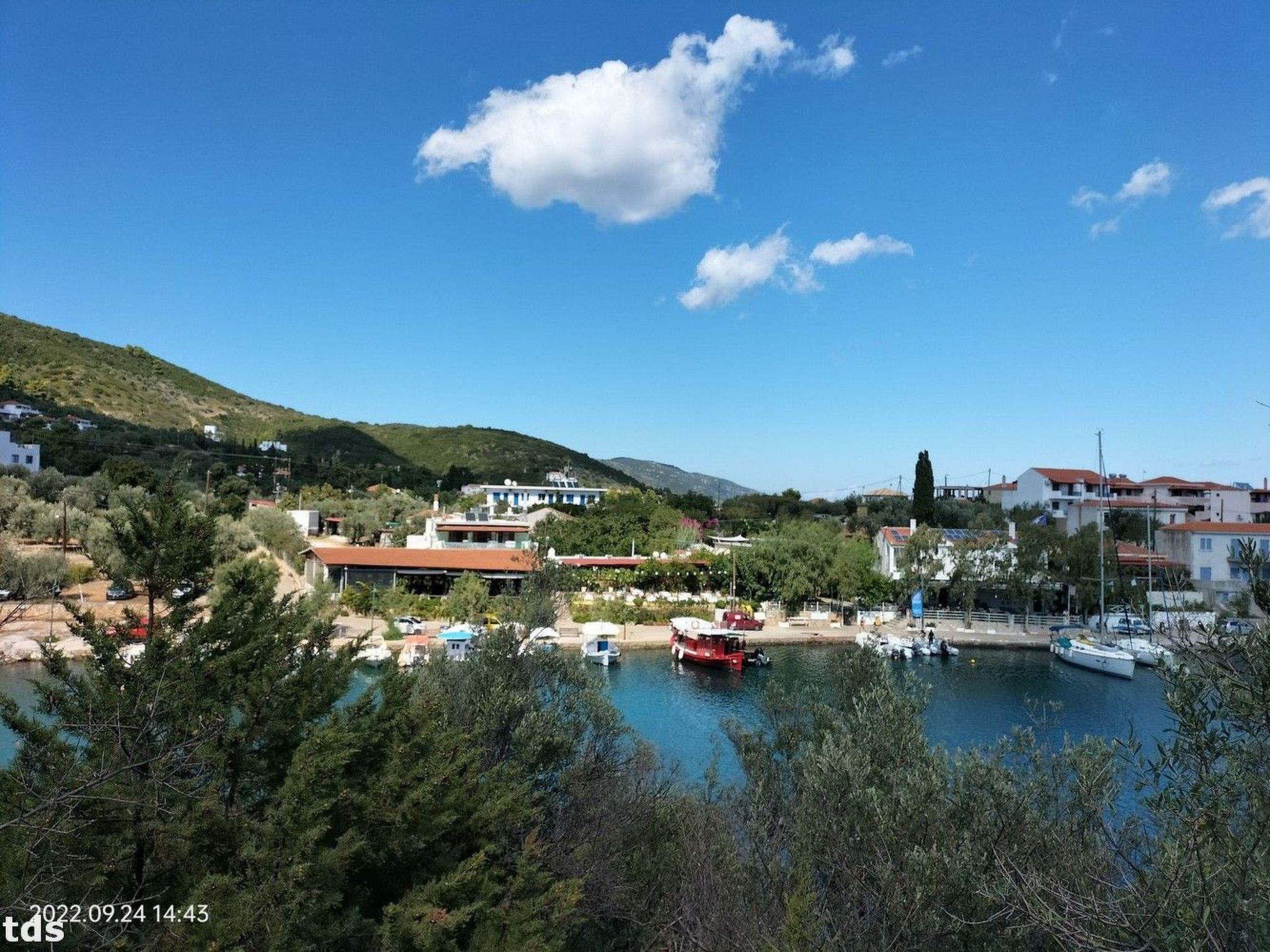 This studio is in an unbeatable location. Just 50 metres separate you from the crystal-clear water, while the nearest beach is only 80 metres away. The nearby water sports school, just 30 metres away, offers a wide range of activities for active holidaymakers. The nearest town centre and shopping facilities are also just a few steps away. This place seamlessly combines quiet country life with proximity to the hustle and bustle and natural beauty of the Sporades.