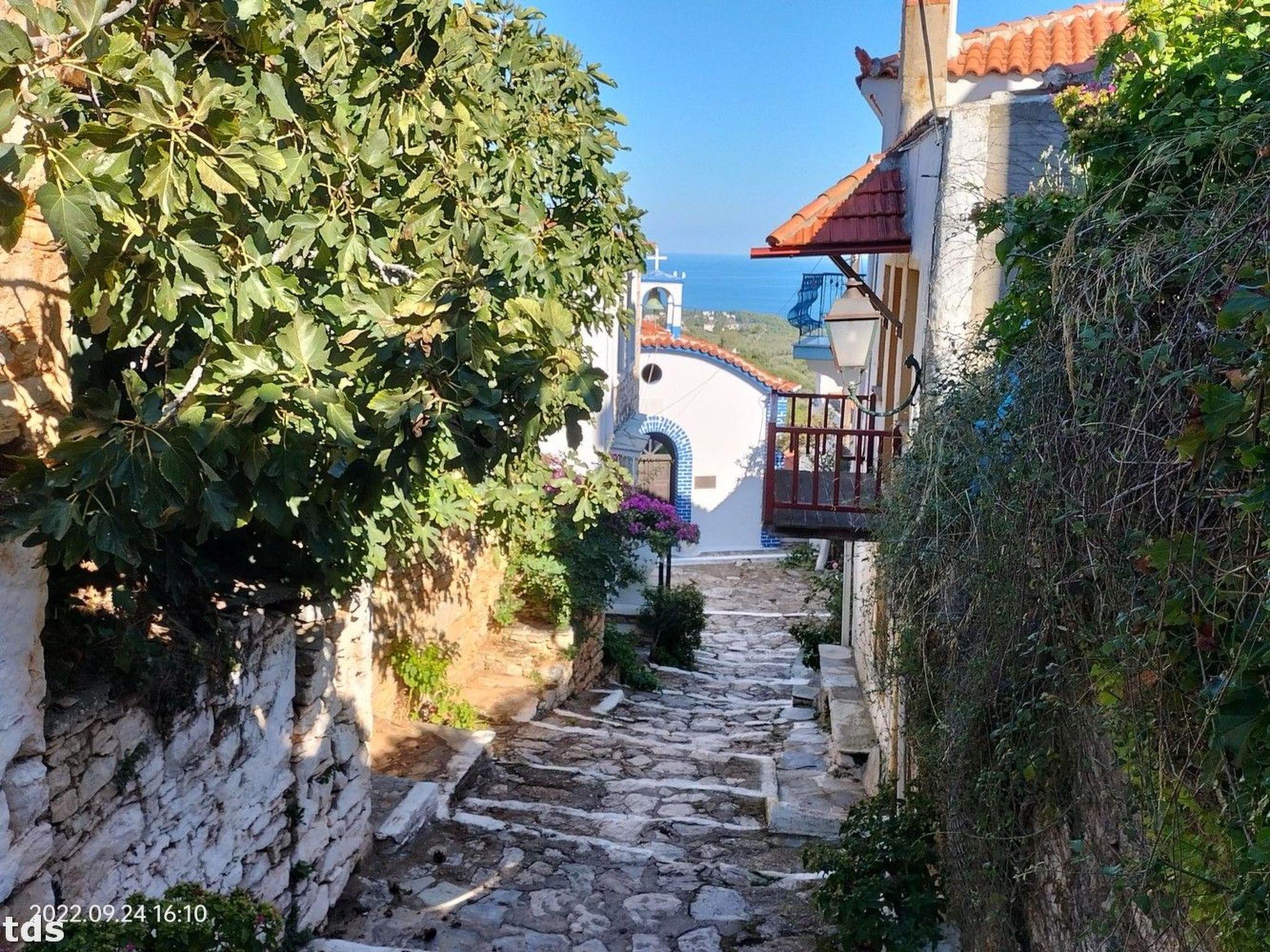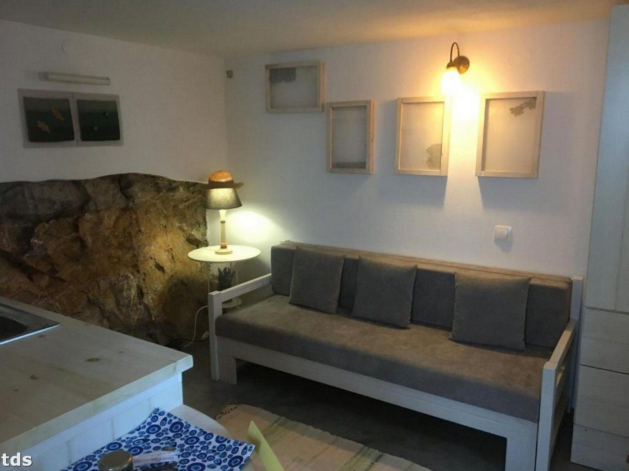 Outside your charming accommodation, the lively hustle and bustle of Alonnisos old town awaits you. Even though the flat does not have its own outdoor area, the surrounding alley invites you to enjoy the authentic island ambience. A short walk will take you to the nearby amenities and to a public car park, only about 200 metres away, which can be used free of charge - a practical solution for guests who want to explore the surrounding beaches and the sea by car.